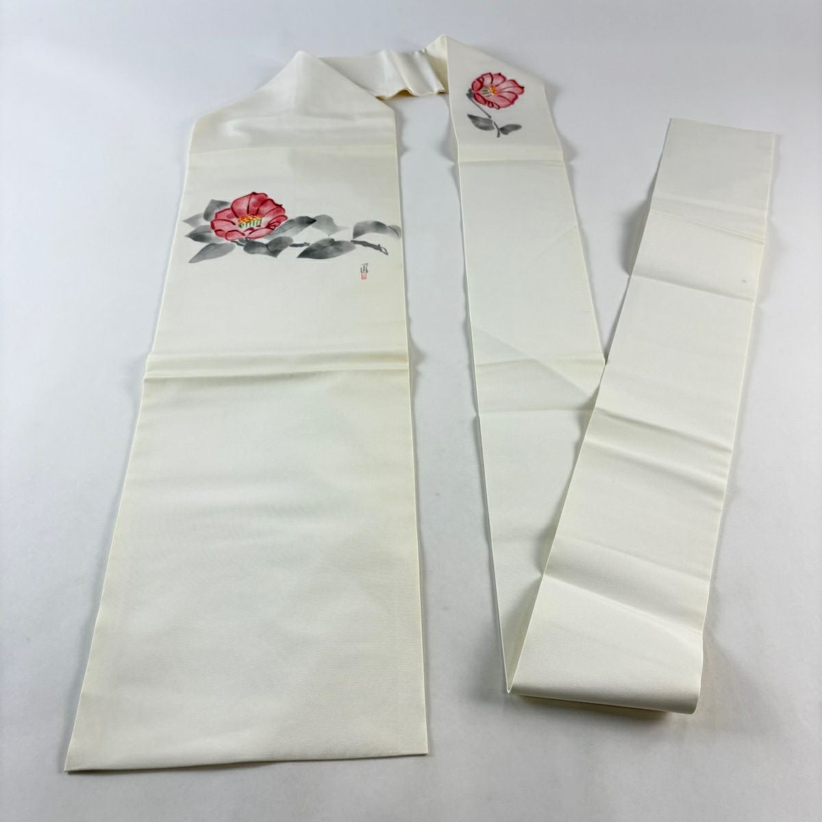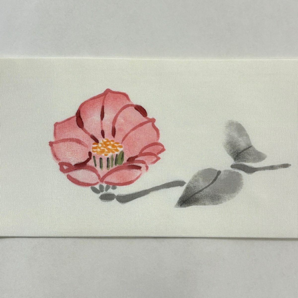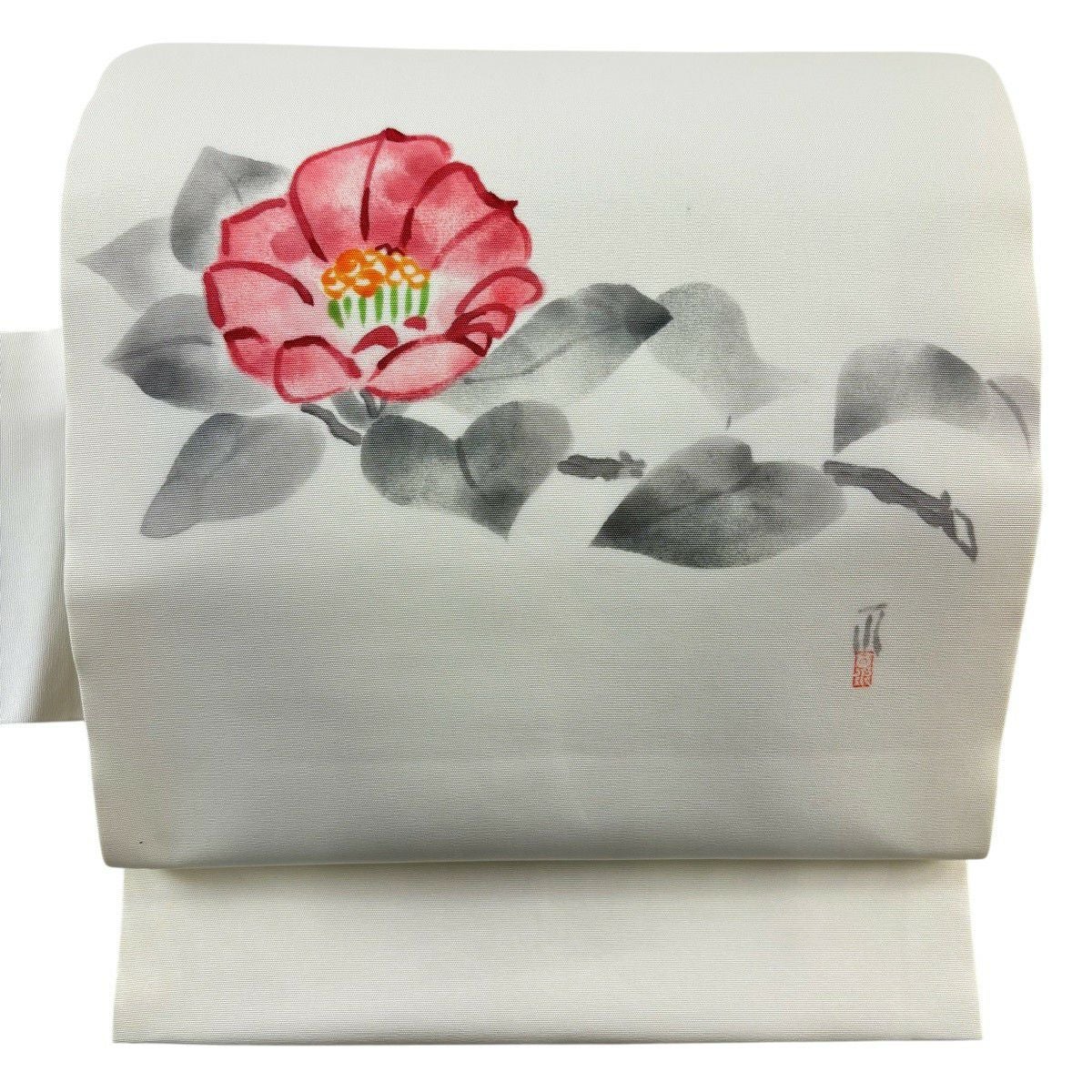 名古屋帯 優品 落款あり 椿 クリーム 正絹