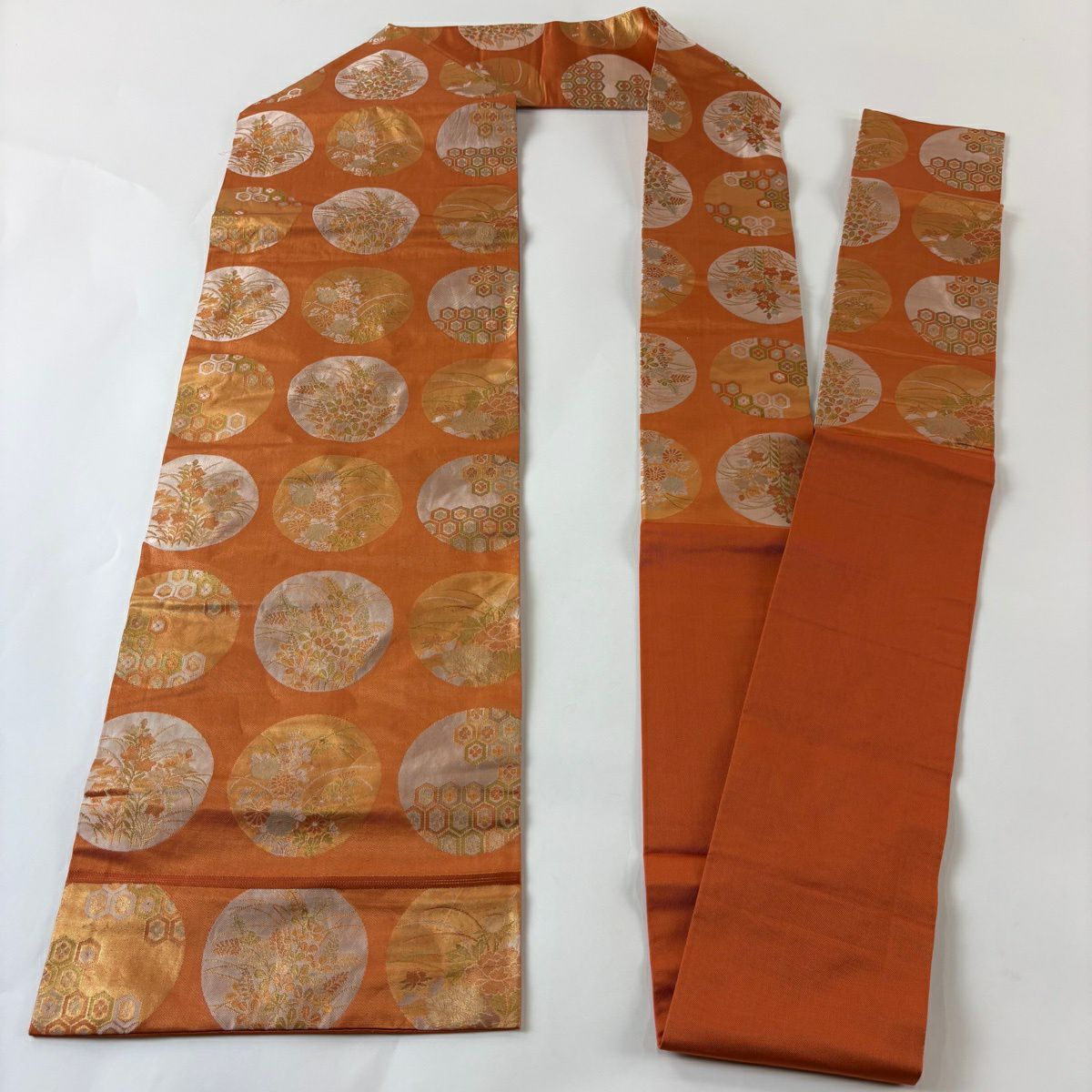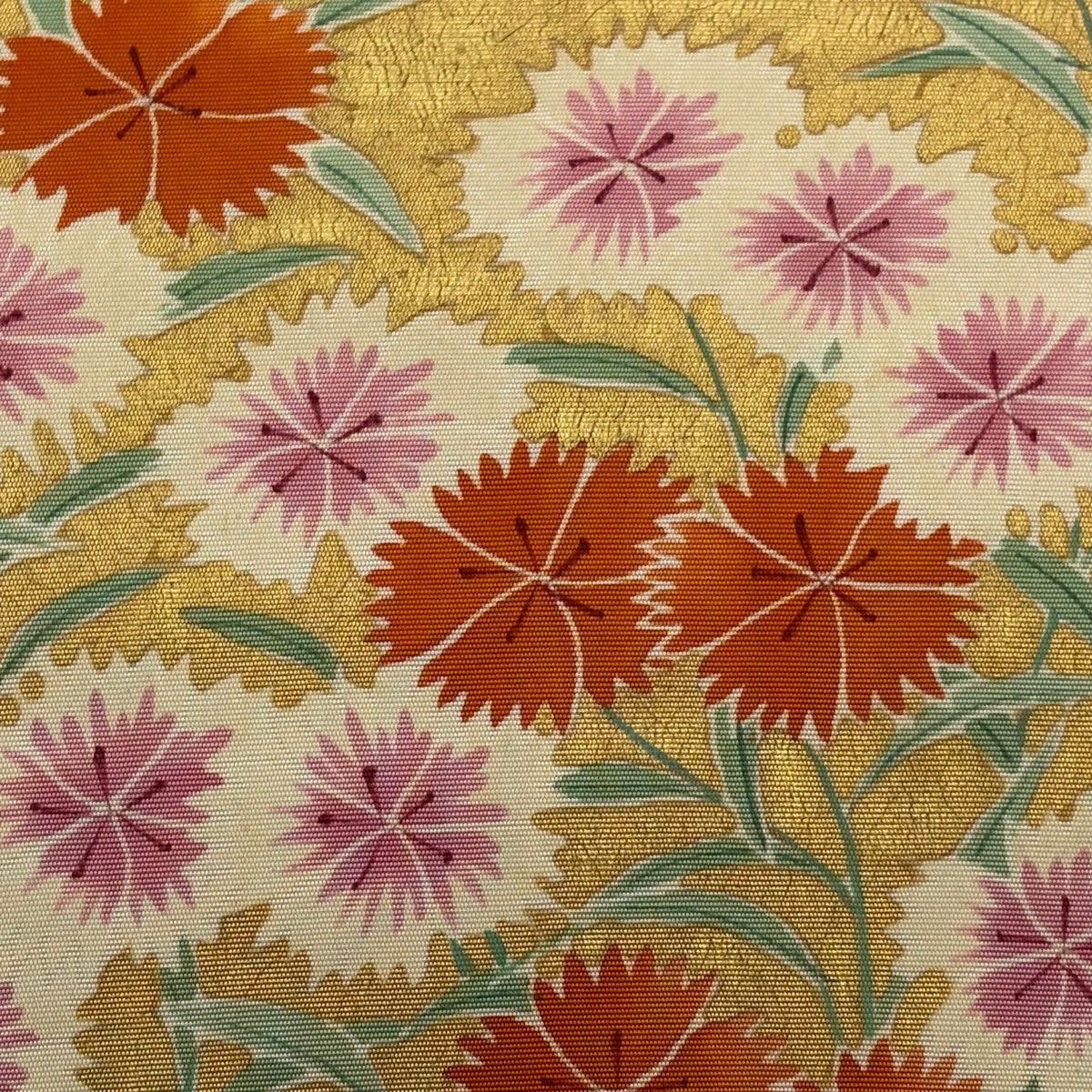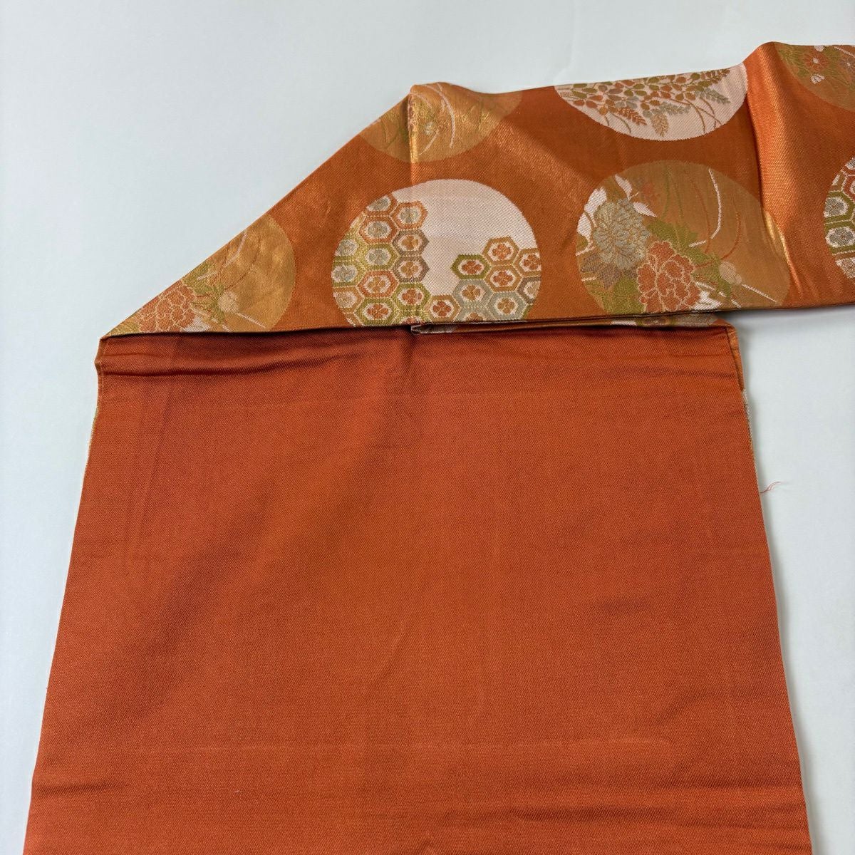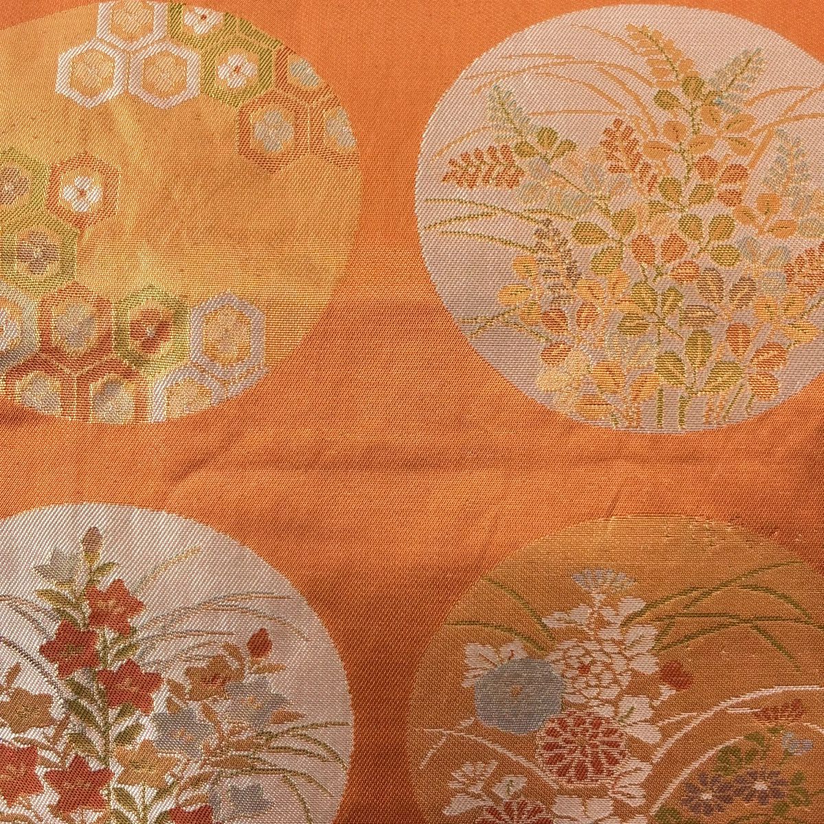 名古屋帯 優品 丸文 草花 オレンジ 正絹