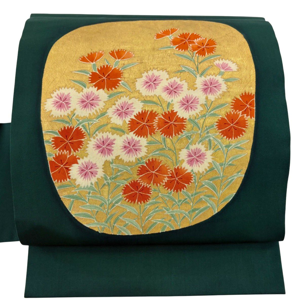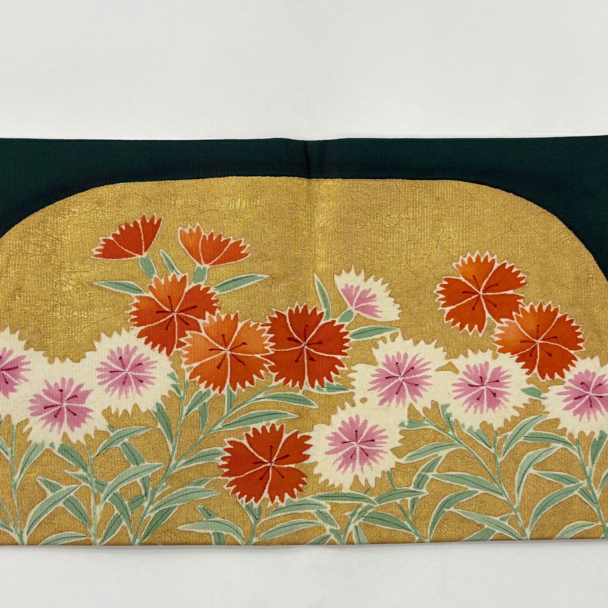 名古屋帯 優品 塩瀬 撫子 金彩 深緑 正絹