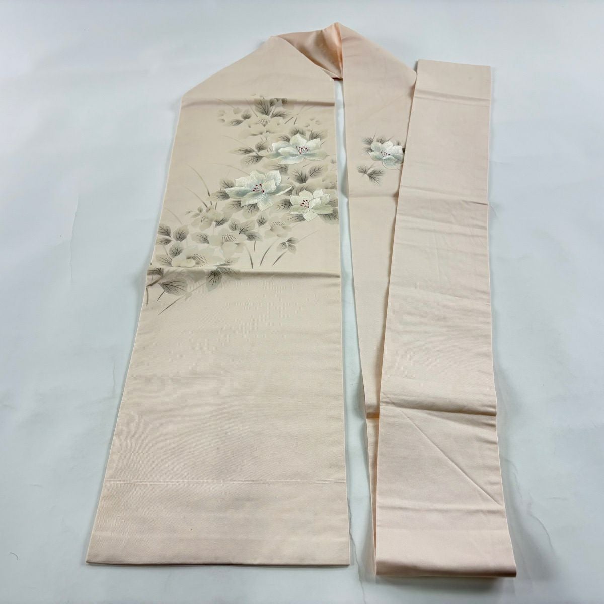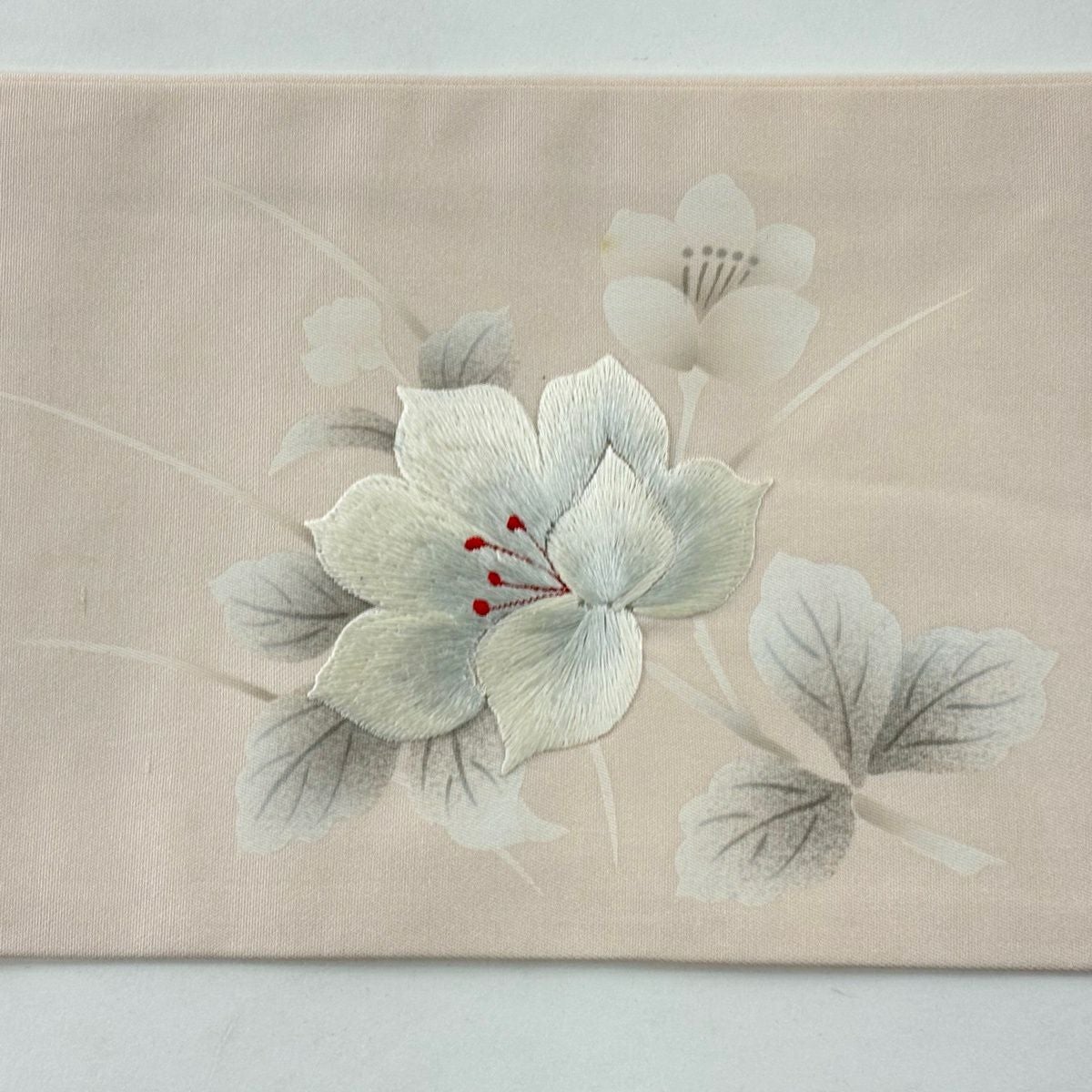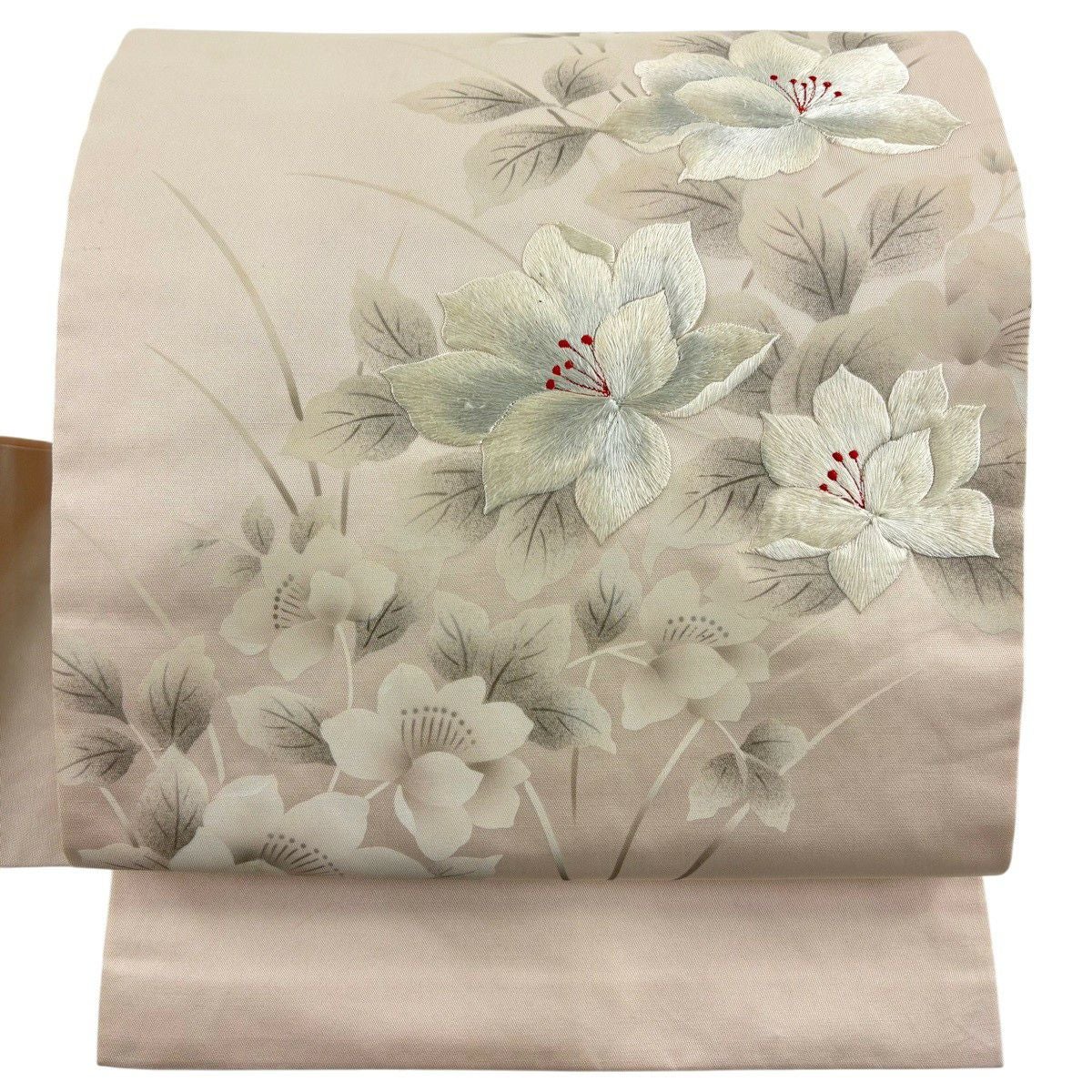 名古屋帯 優品 草花 刺繍 薄ピンク 正絹