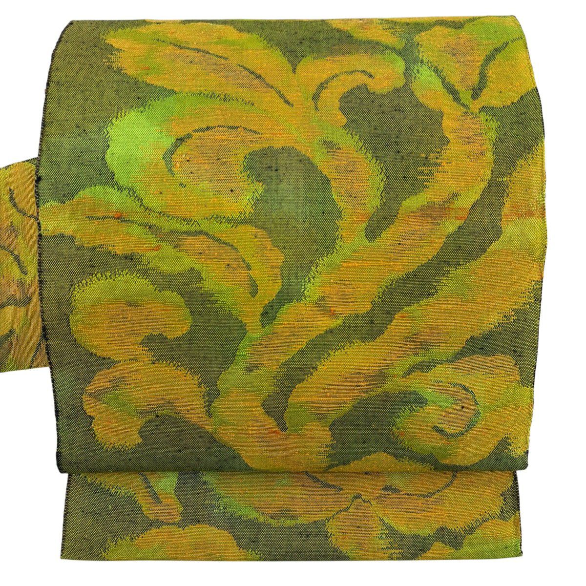 【美品】 名古屋帯 優品 草花 黄緑色 正絹