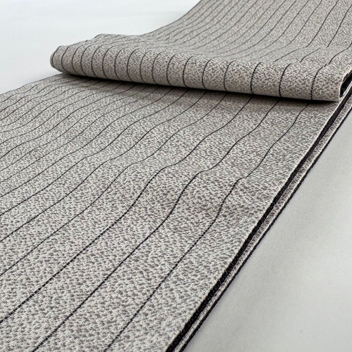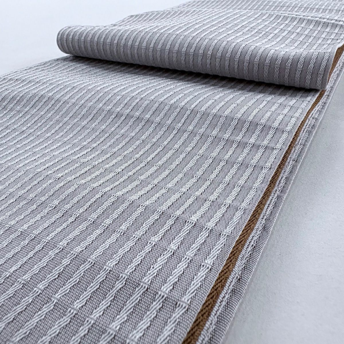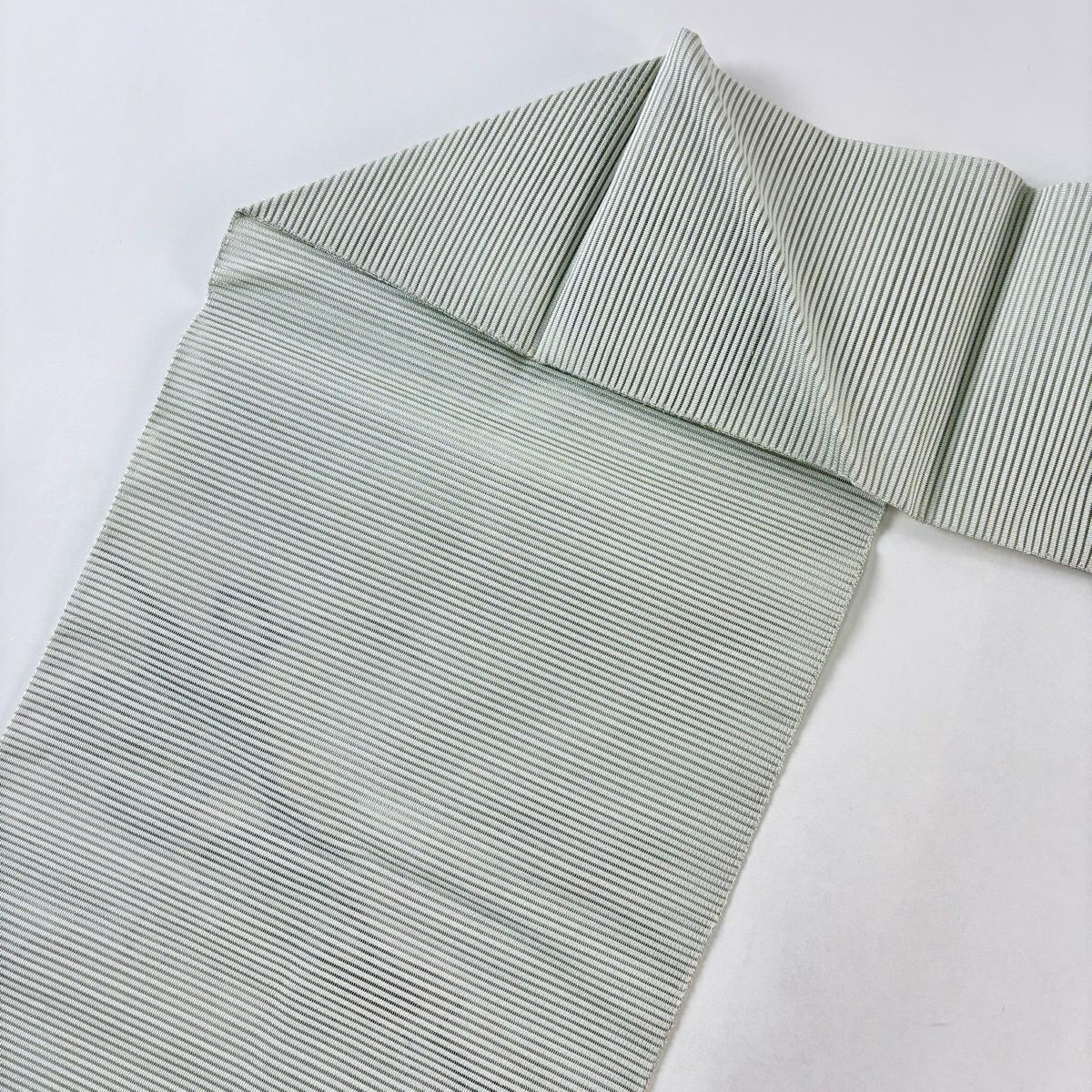 半幅帯 優品 ポケット付 扇 縞 薄茶色 正絹