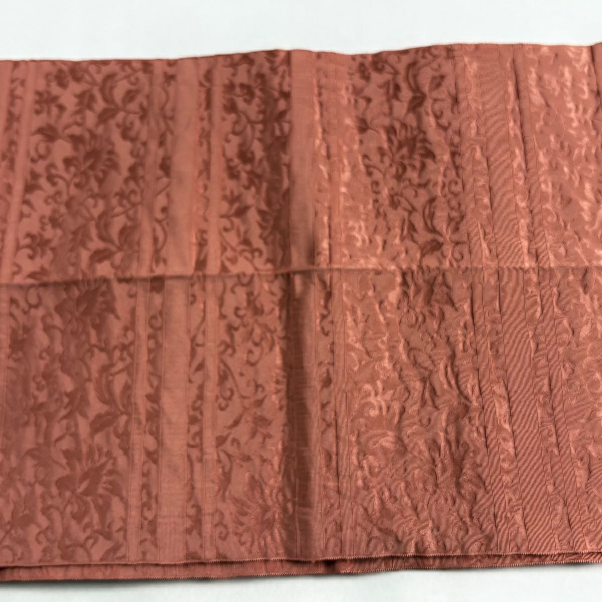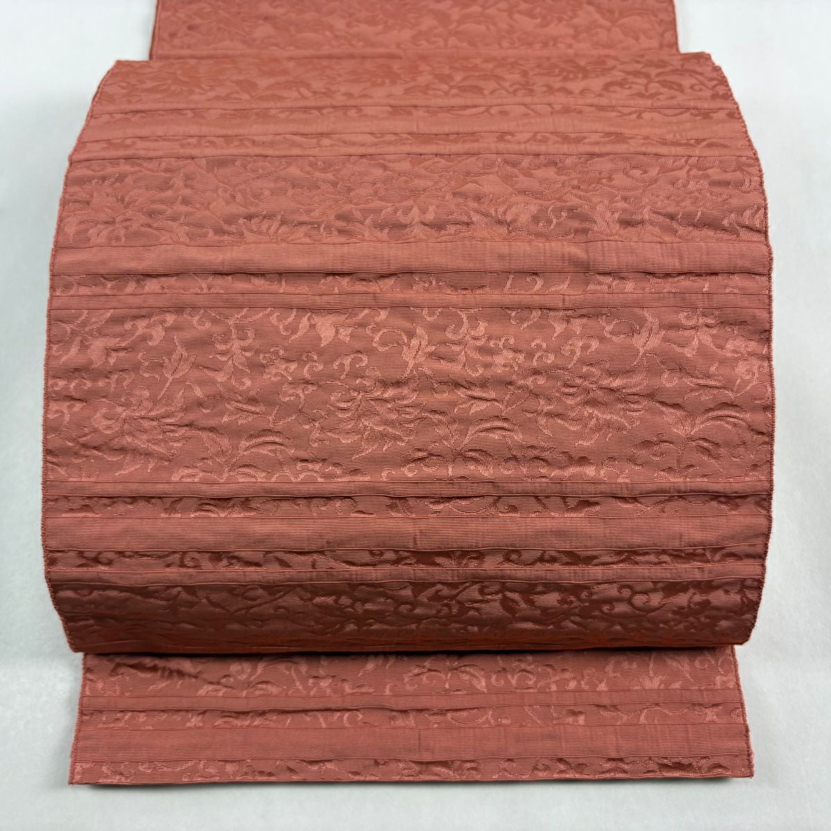 名古屋帯 優品 八寸名古屋帯 草花 縞 ピンク 正絹