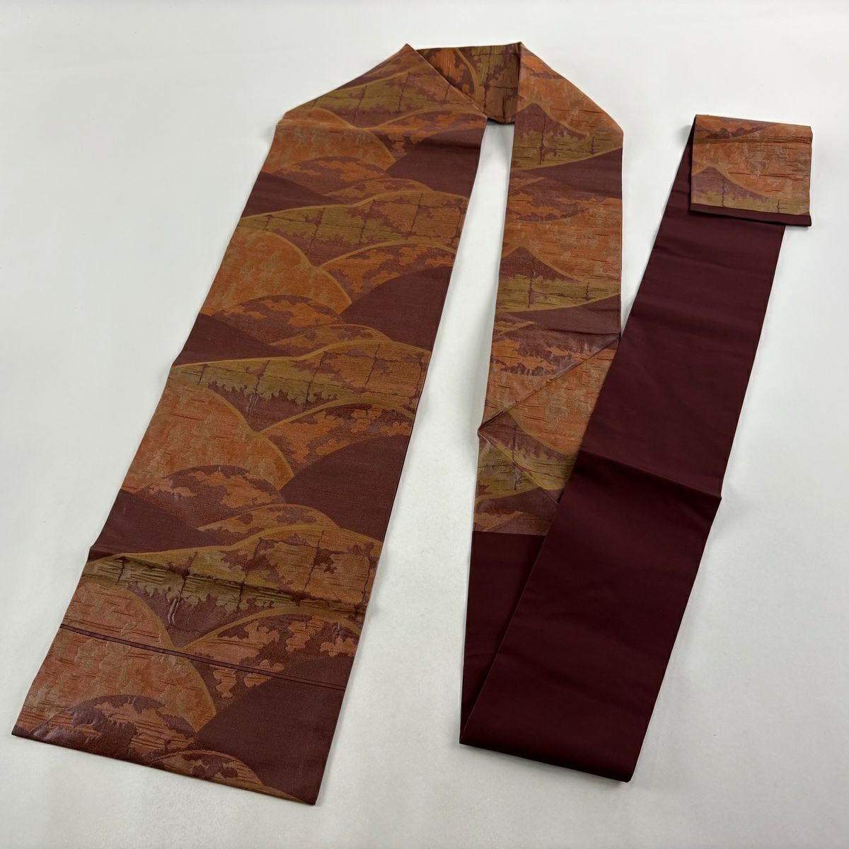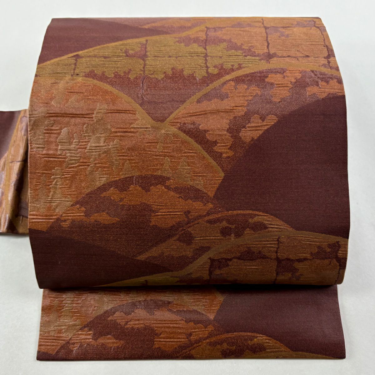 袋名古屋帯 優品 蜀江文 流水 箔 薄小豆 正絹