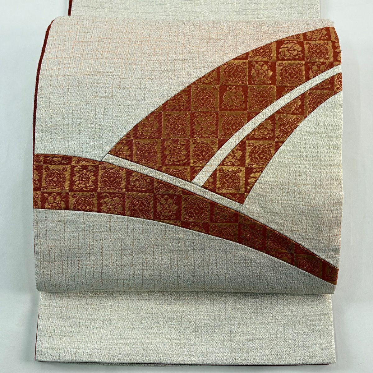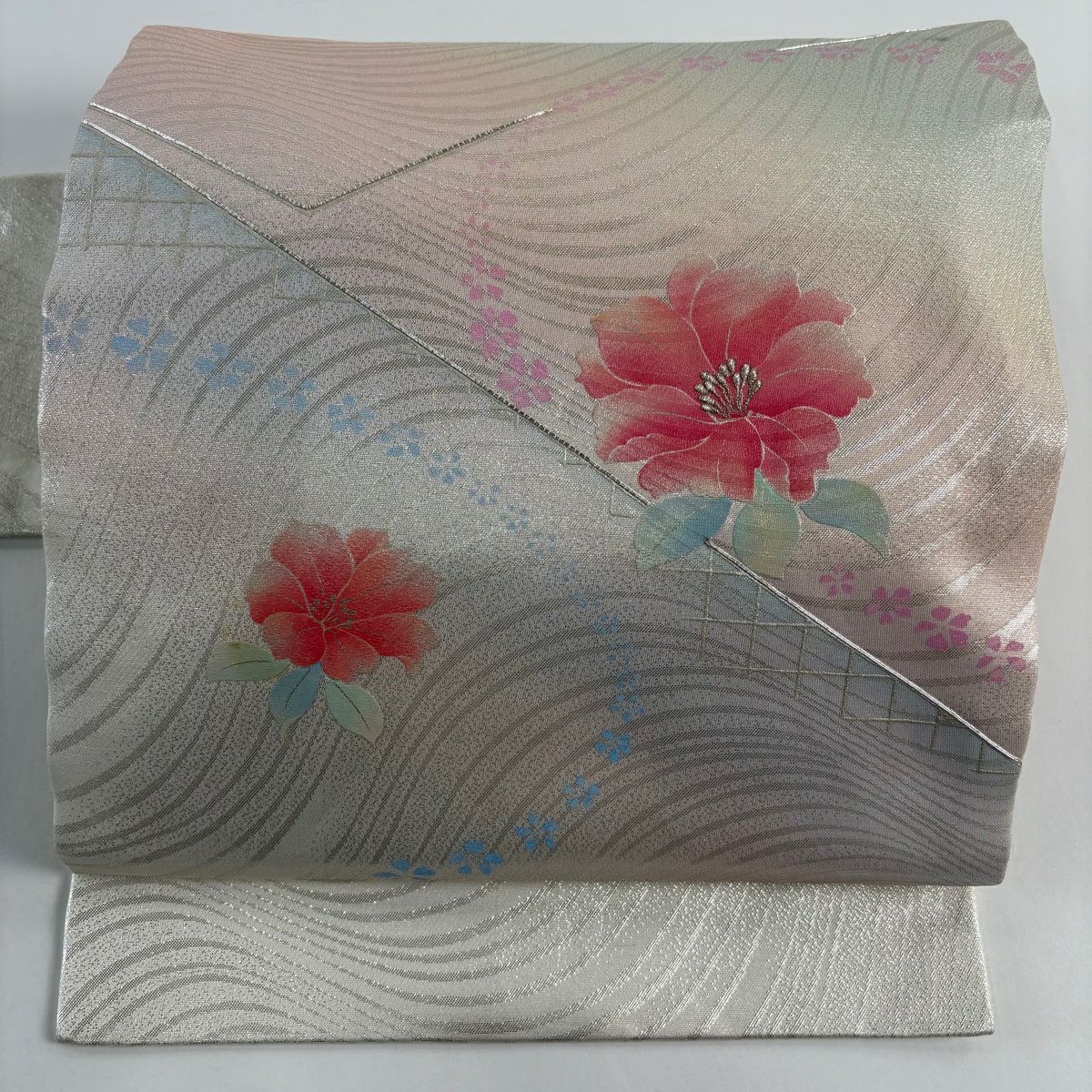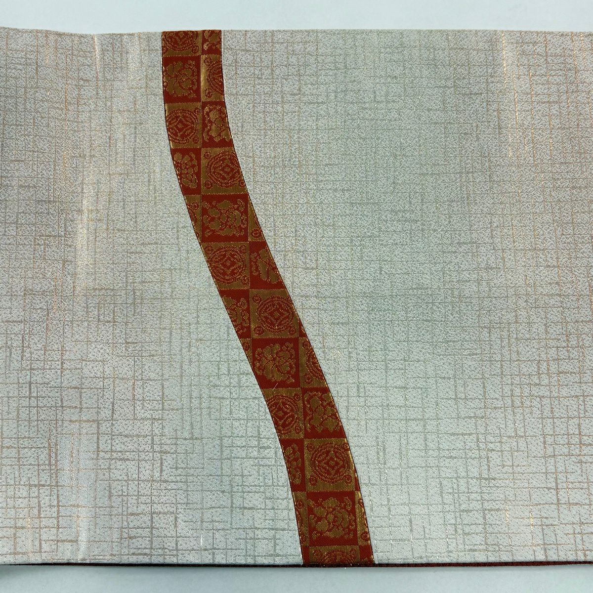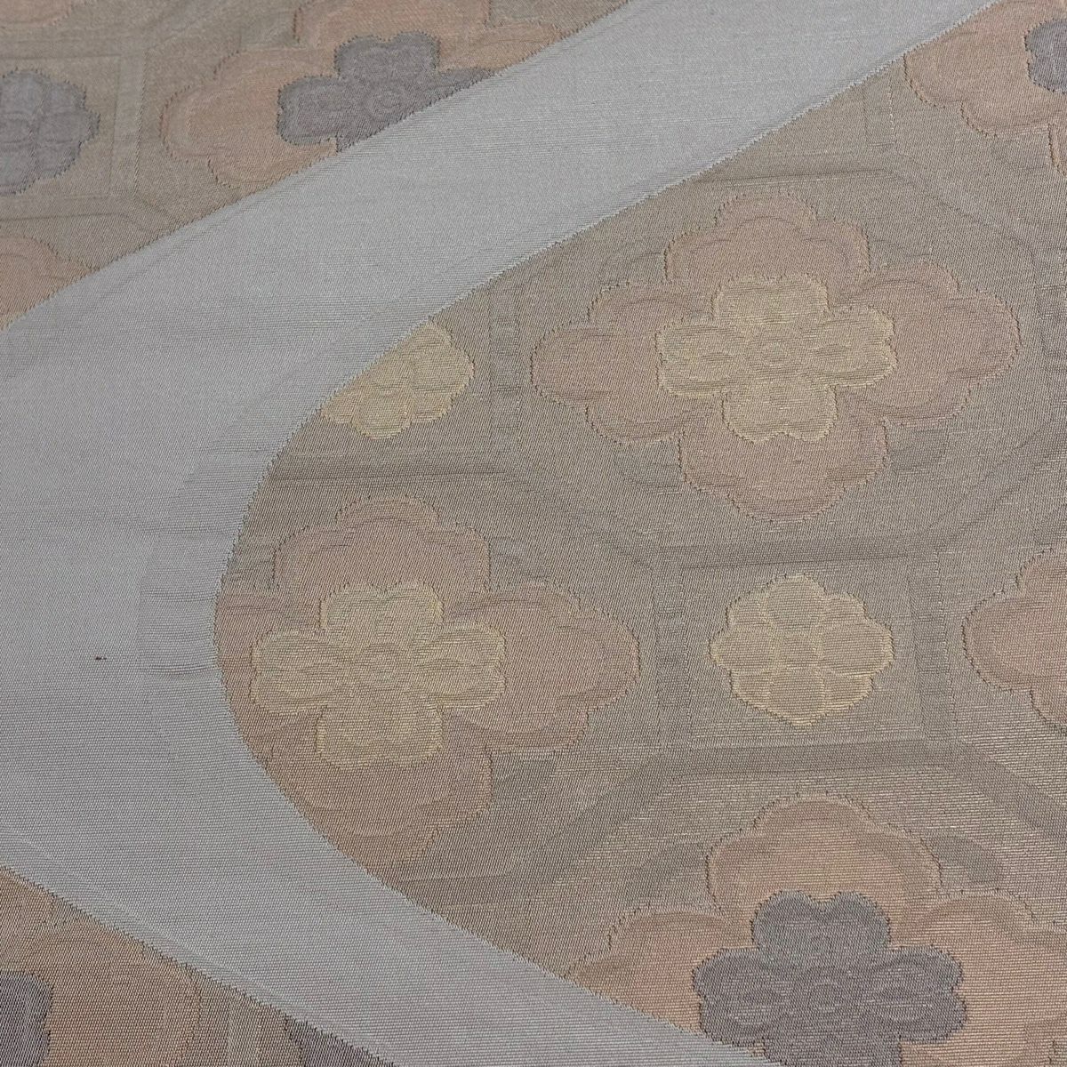 袋名古屋帯 優品 花 幾何学模様 箔 灰白 正絹