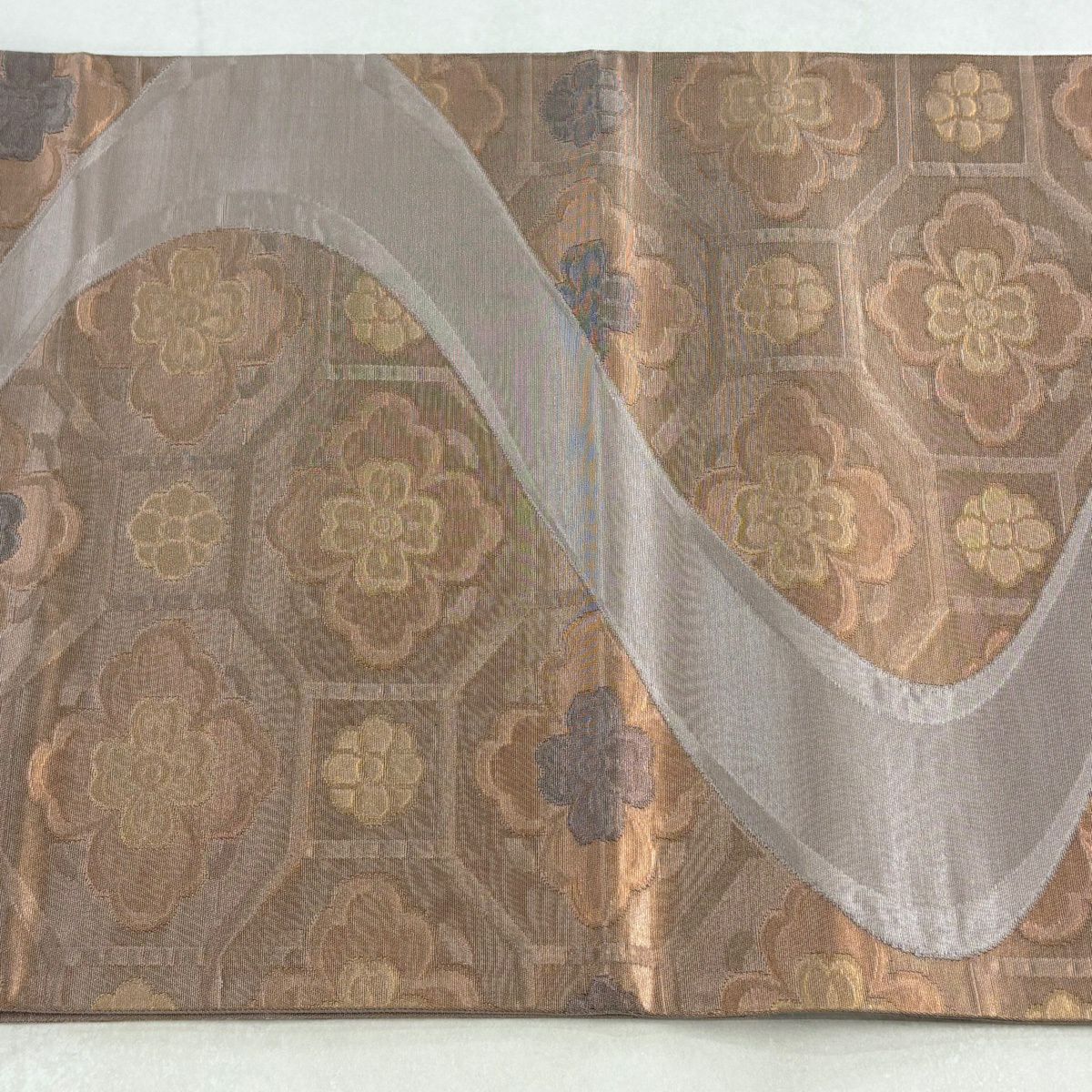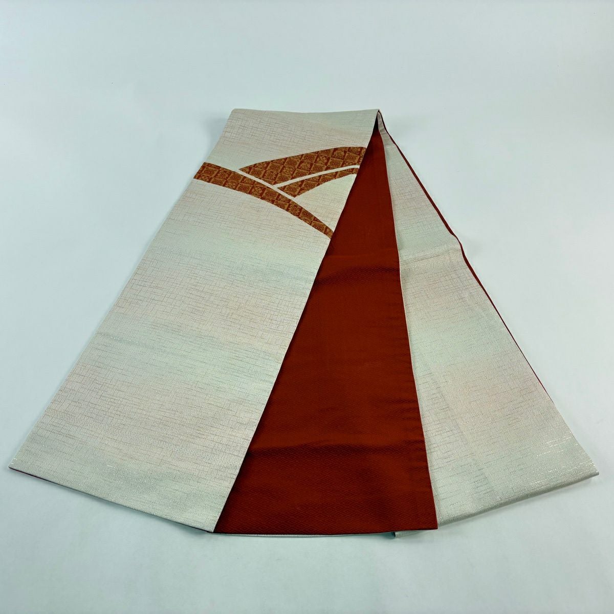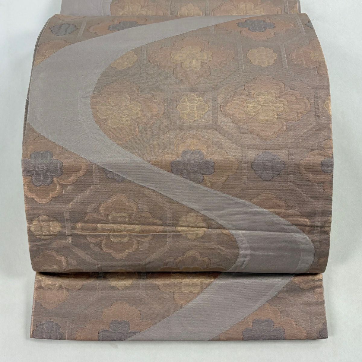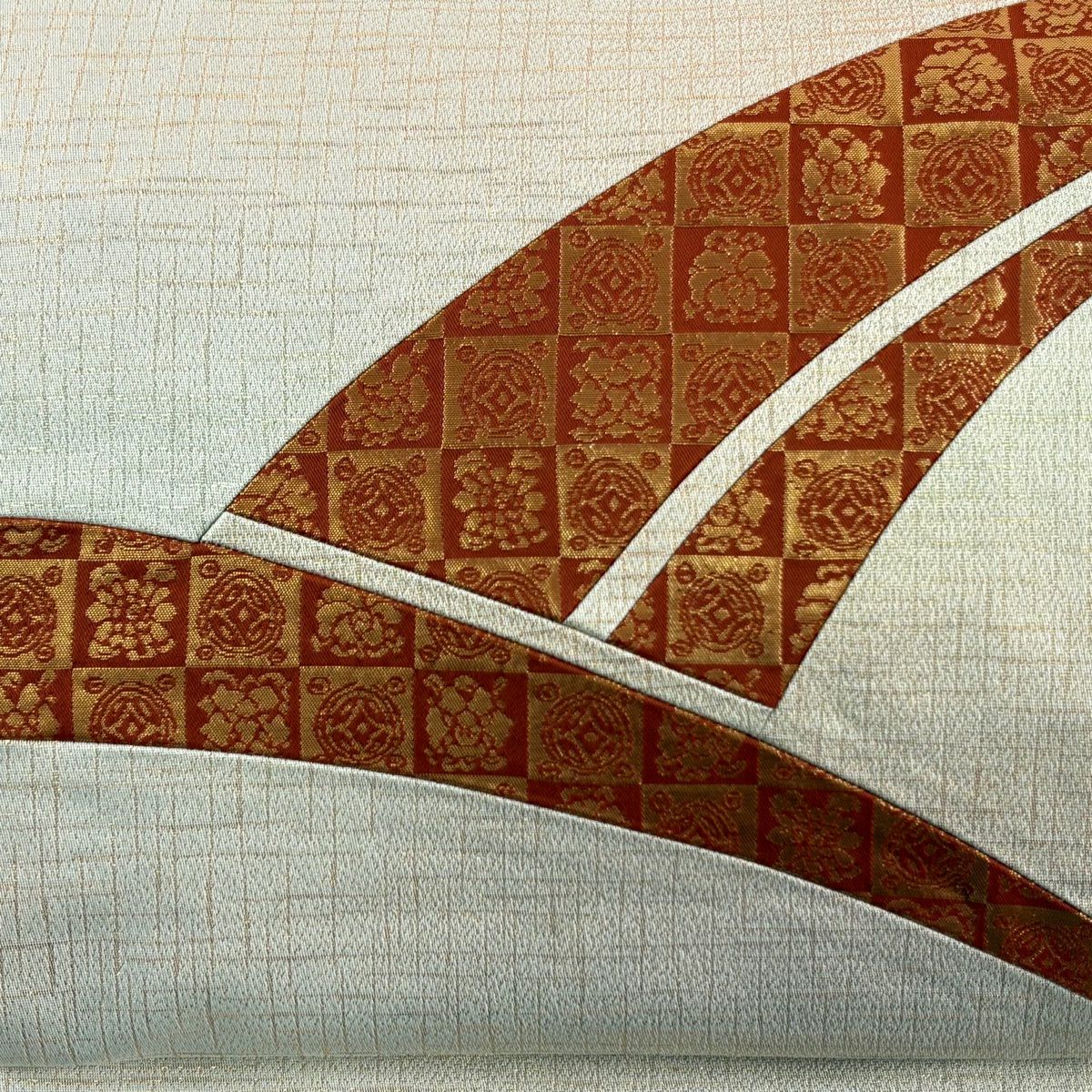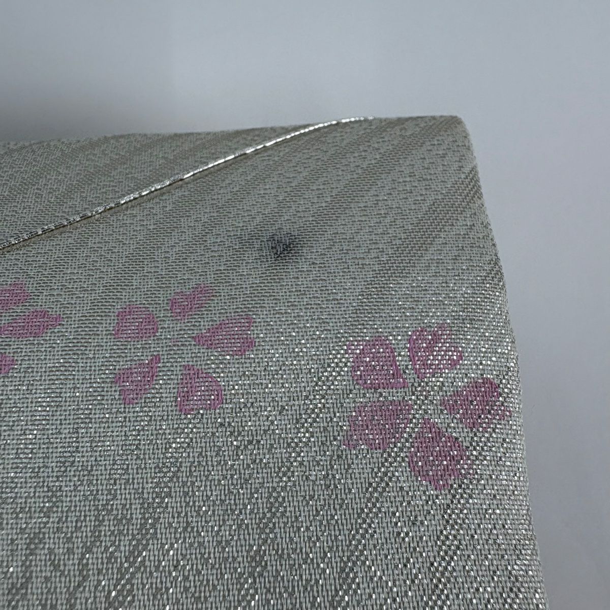袋名古屋帯 優品 花 幾何学模様 箔 灰白 正絹
