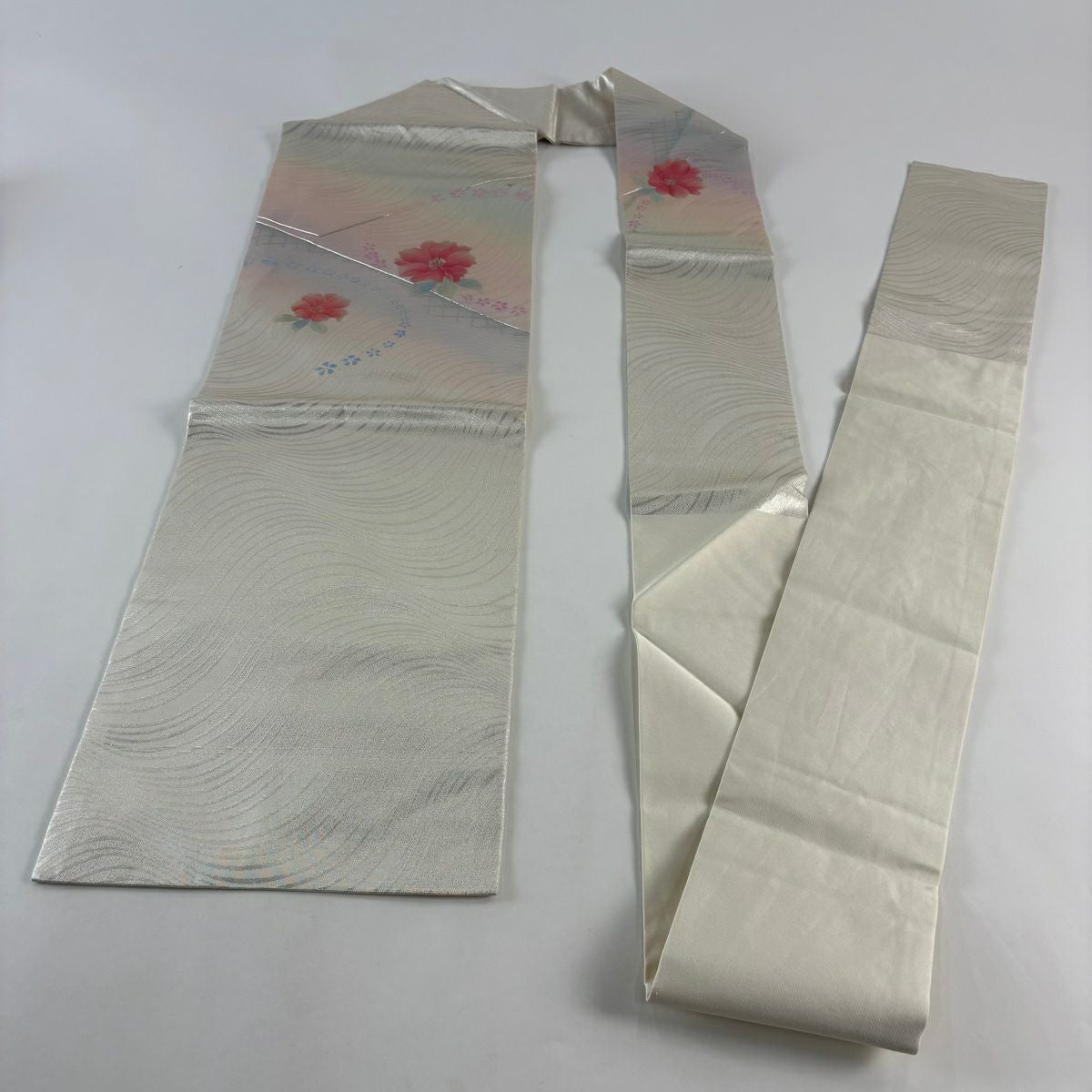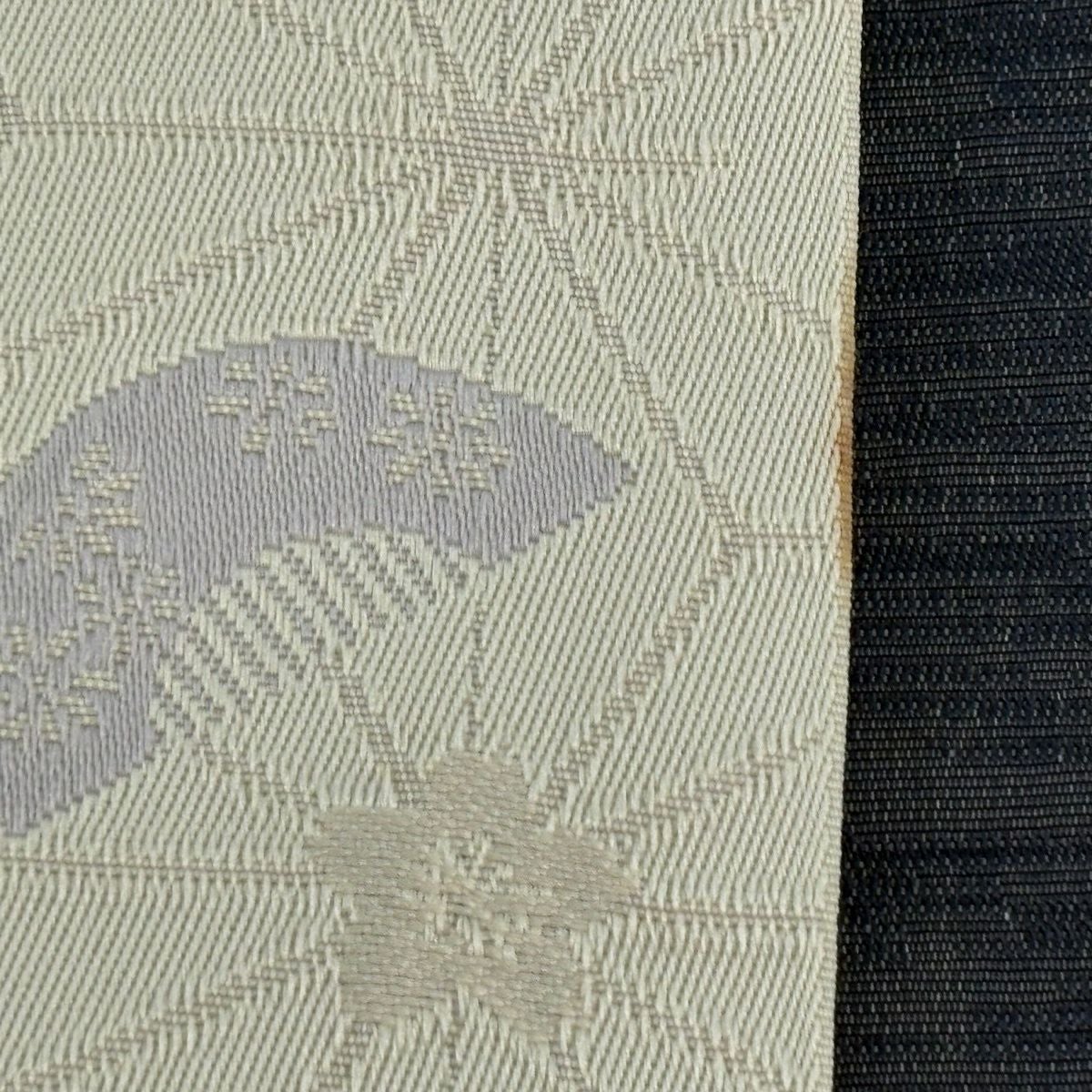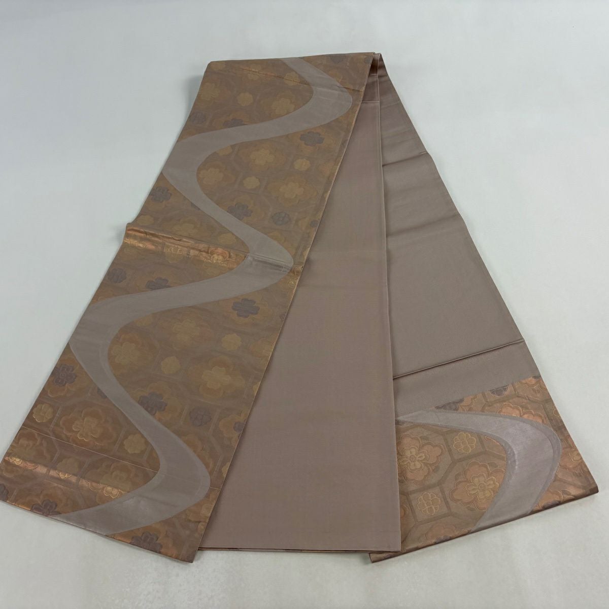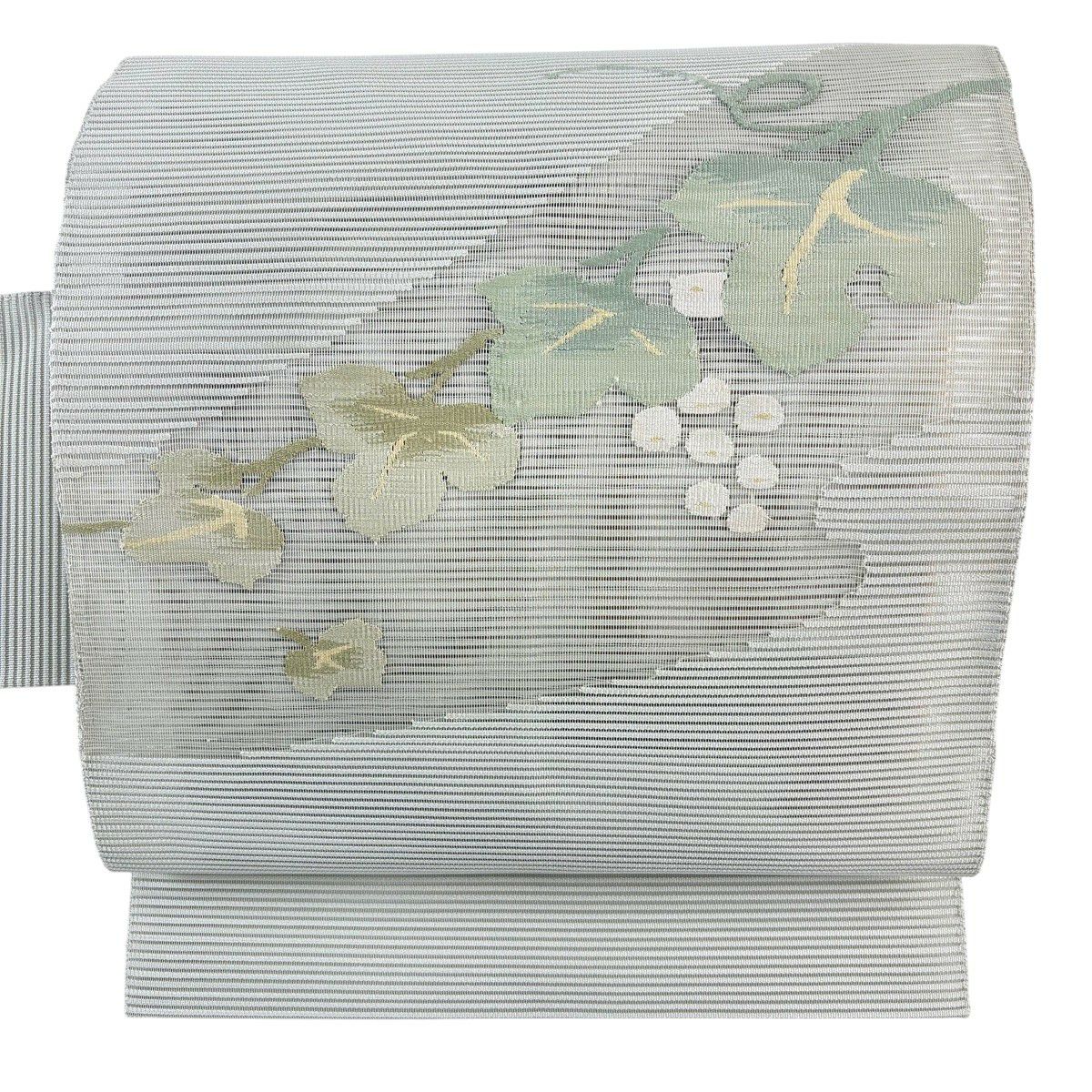袋名古屋帯 優品 花 幾何学模様 箔 灰白 正絹