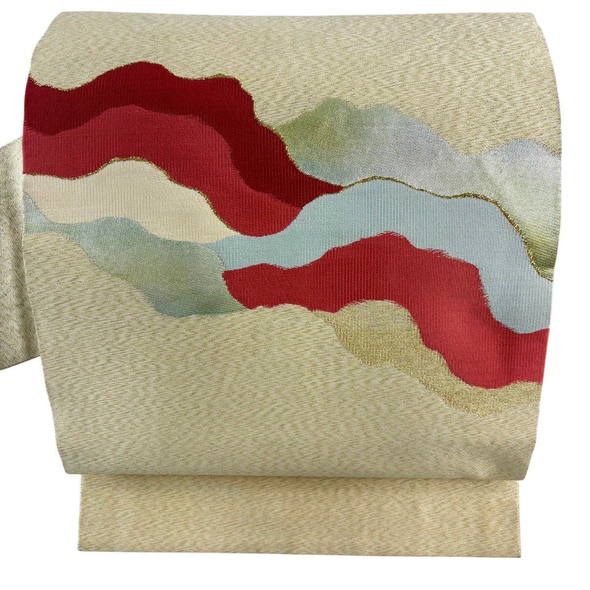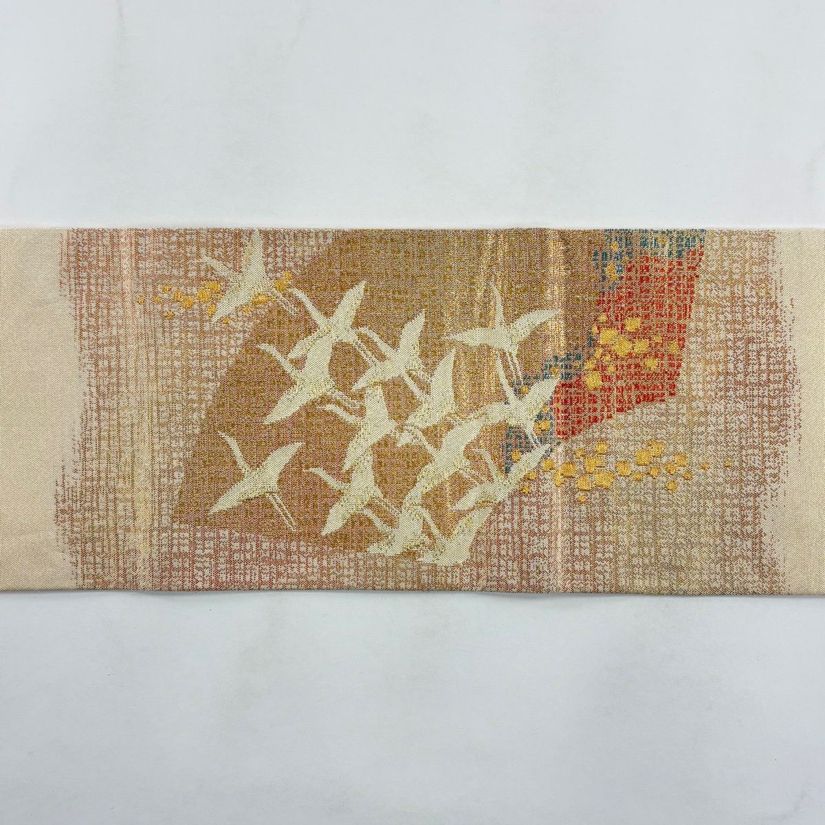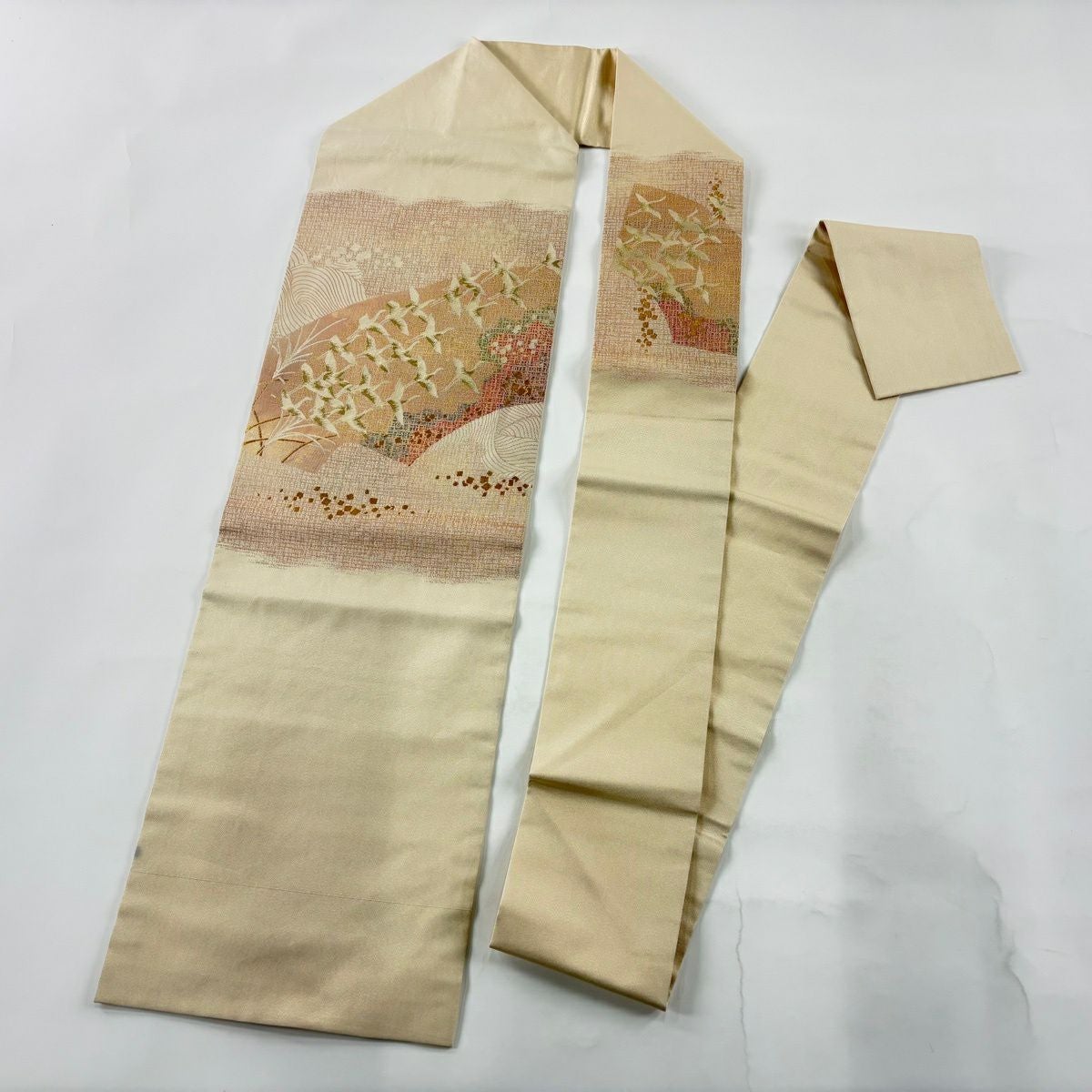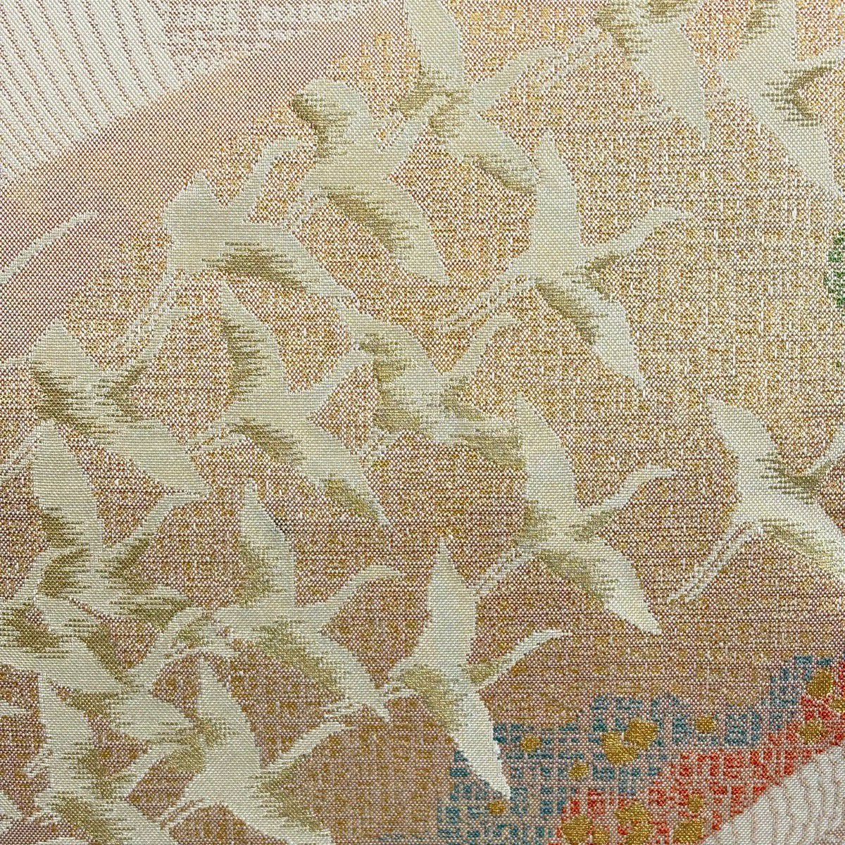 名古屋帯 優品 鶴 波 金糸 箔 クリーム 正絹
