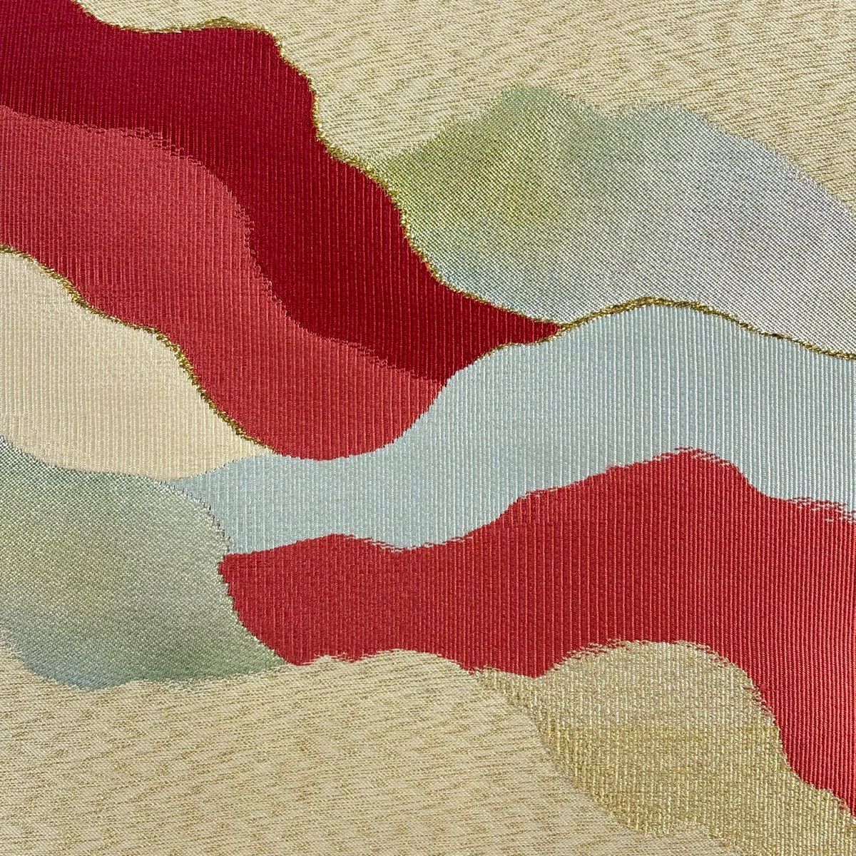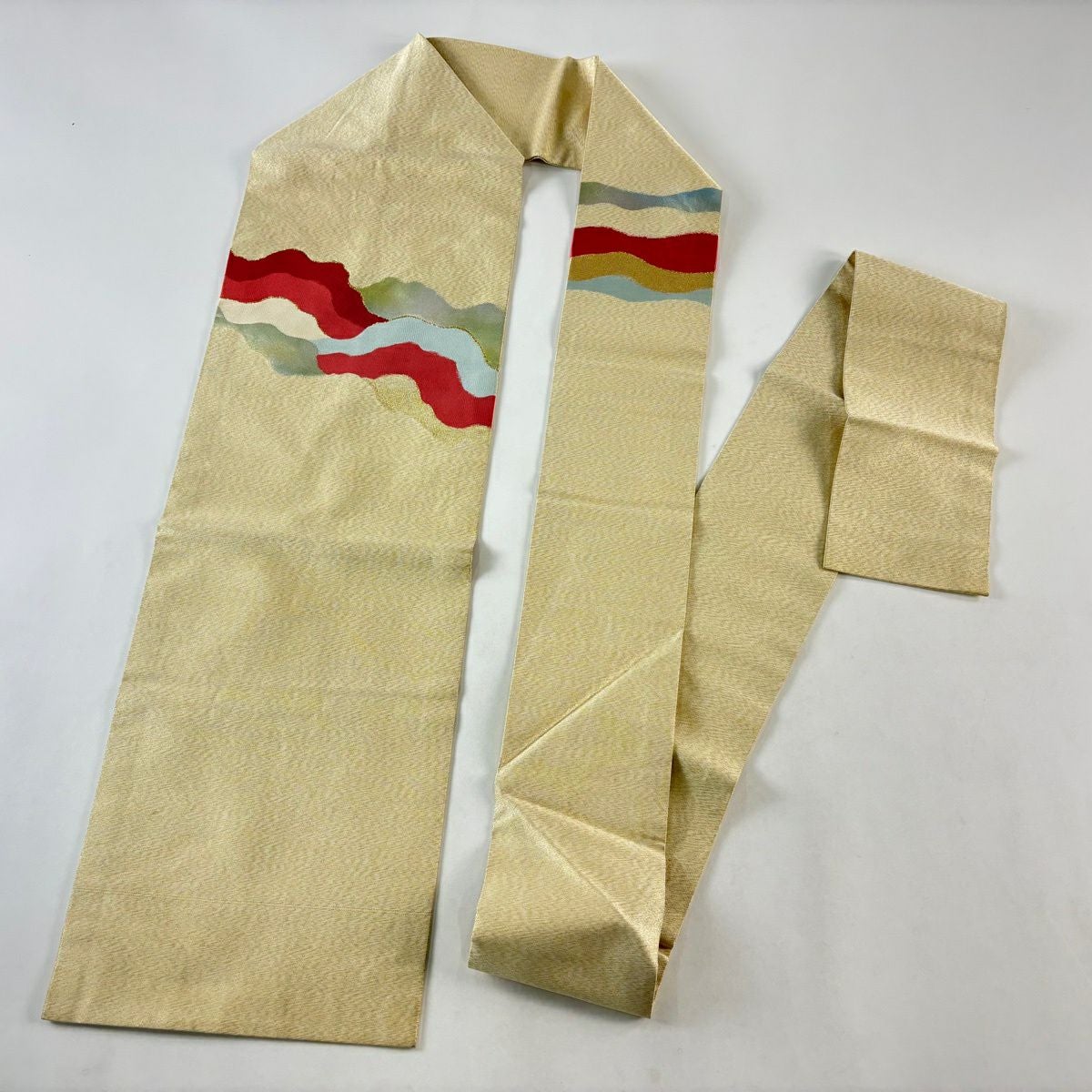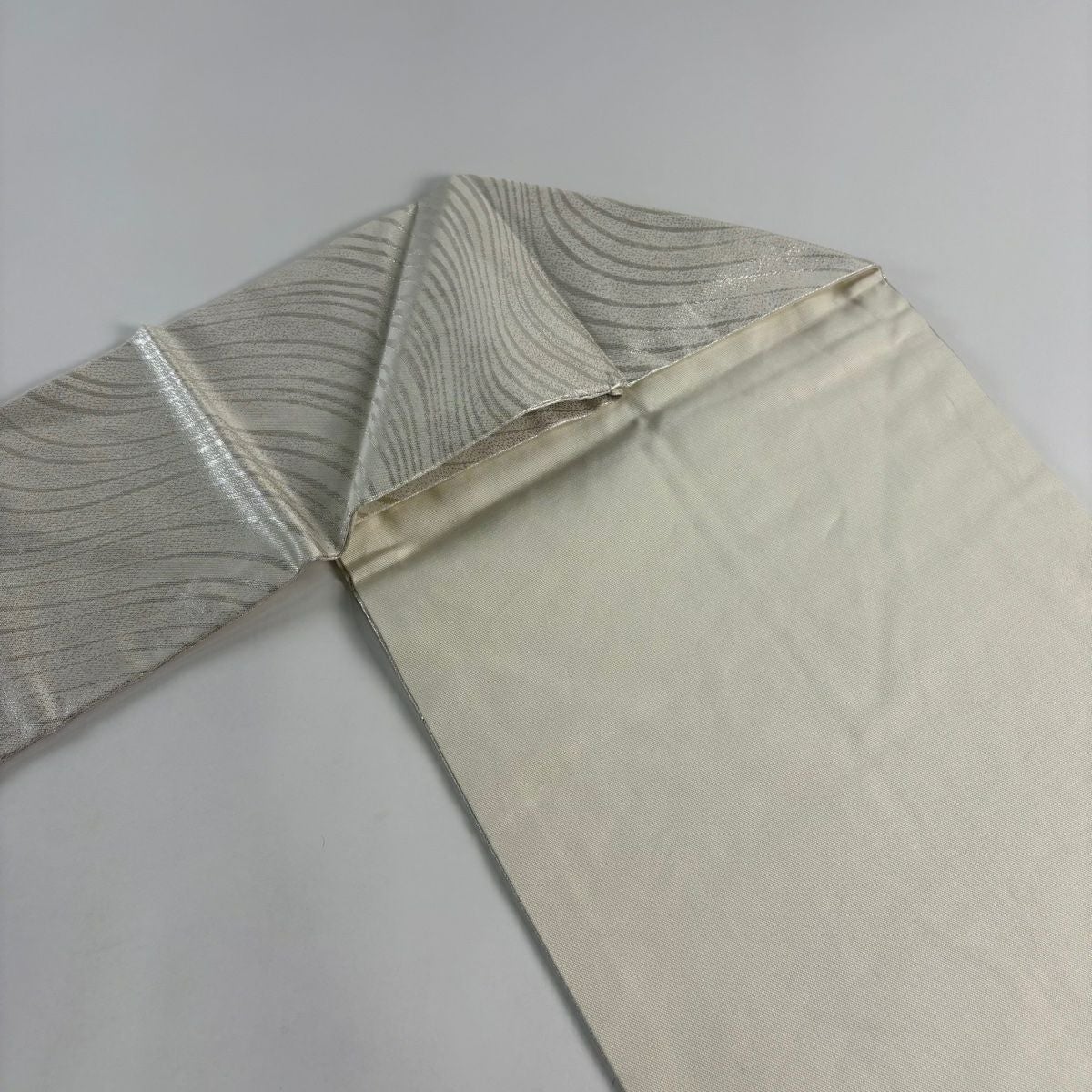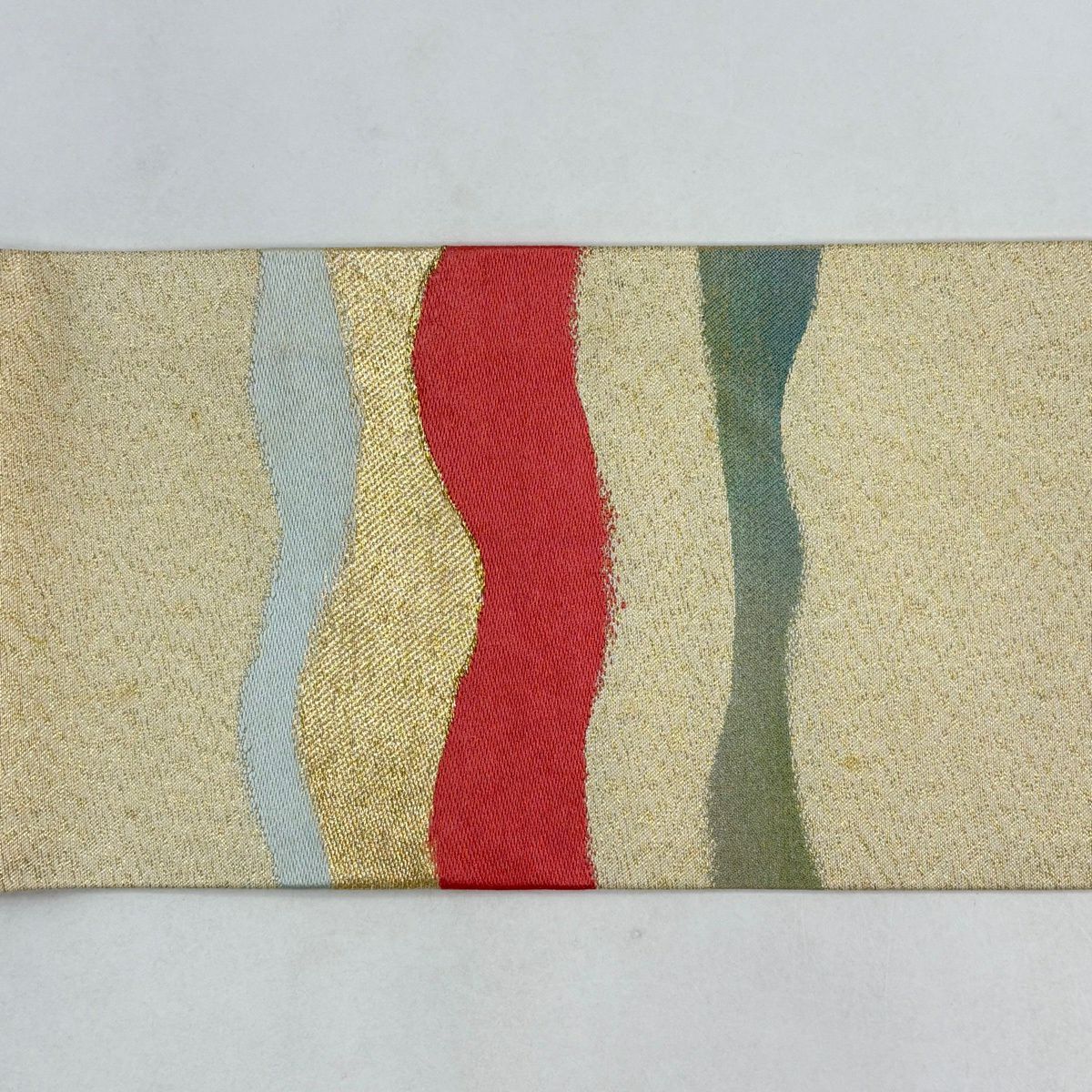 名古屋帯 優品 鶴 波 金糸 箔 クリーム 正絹