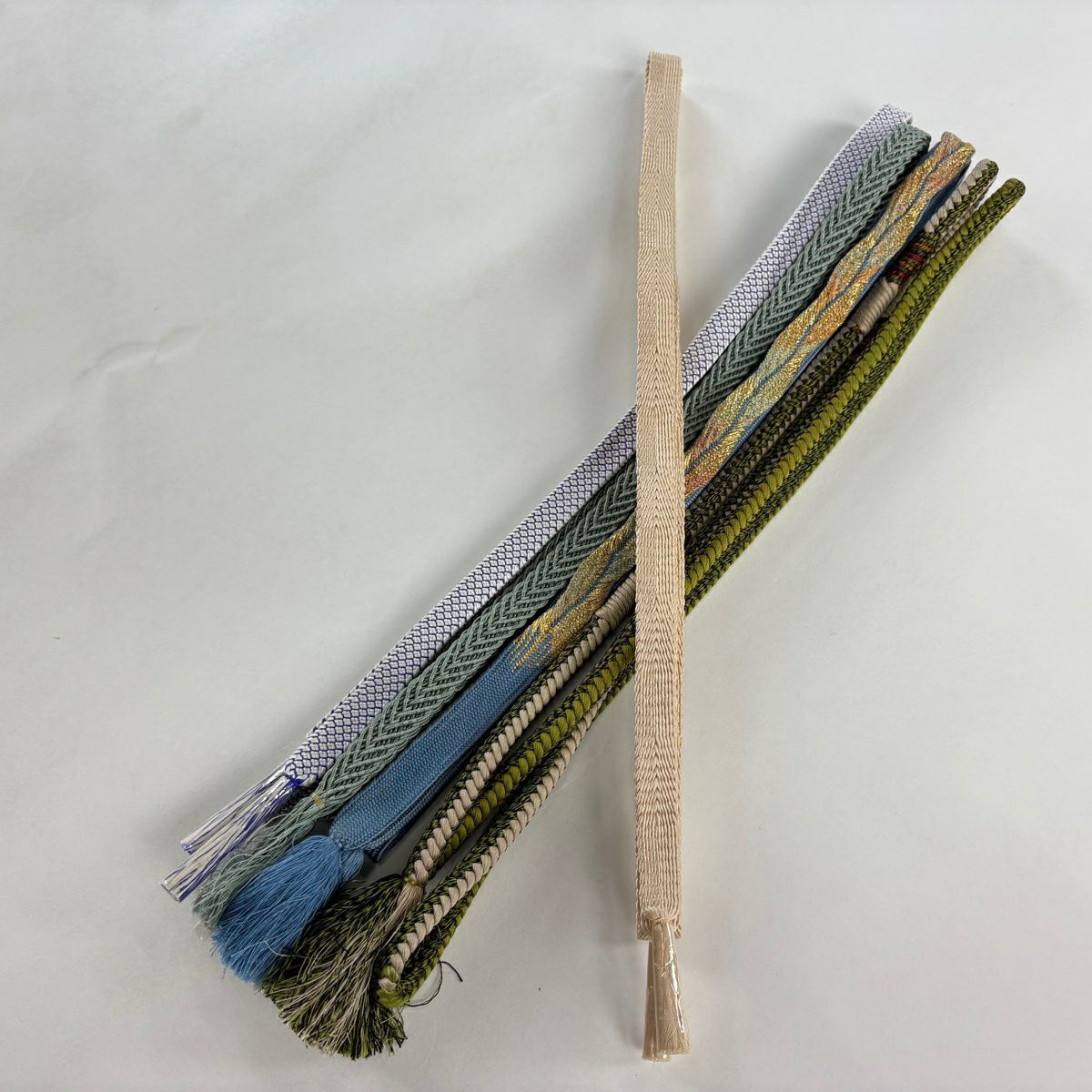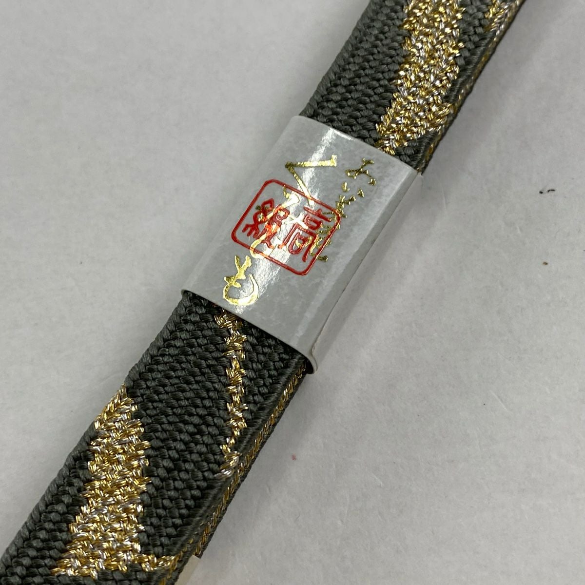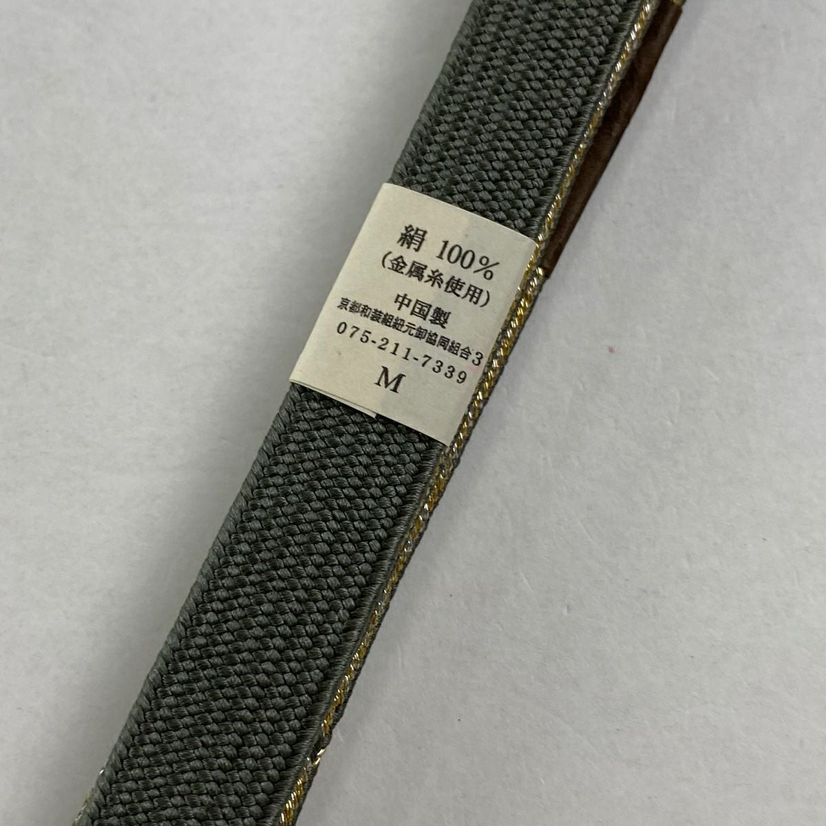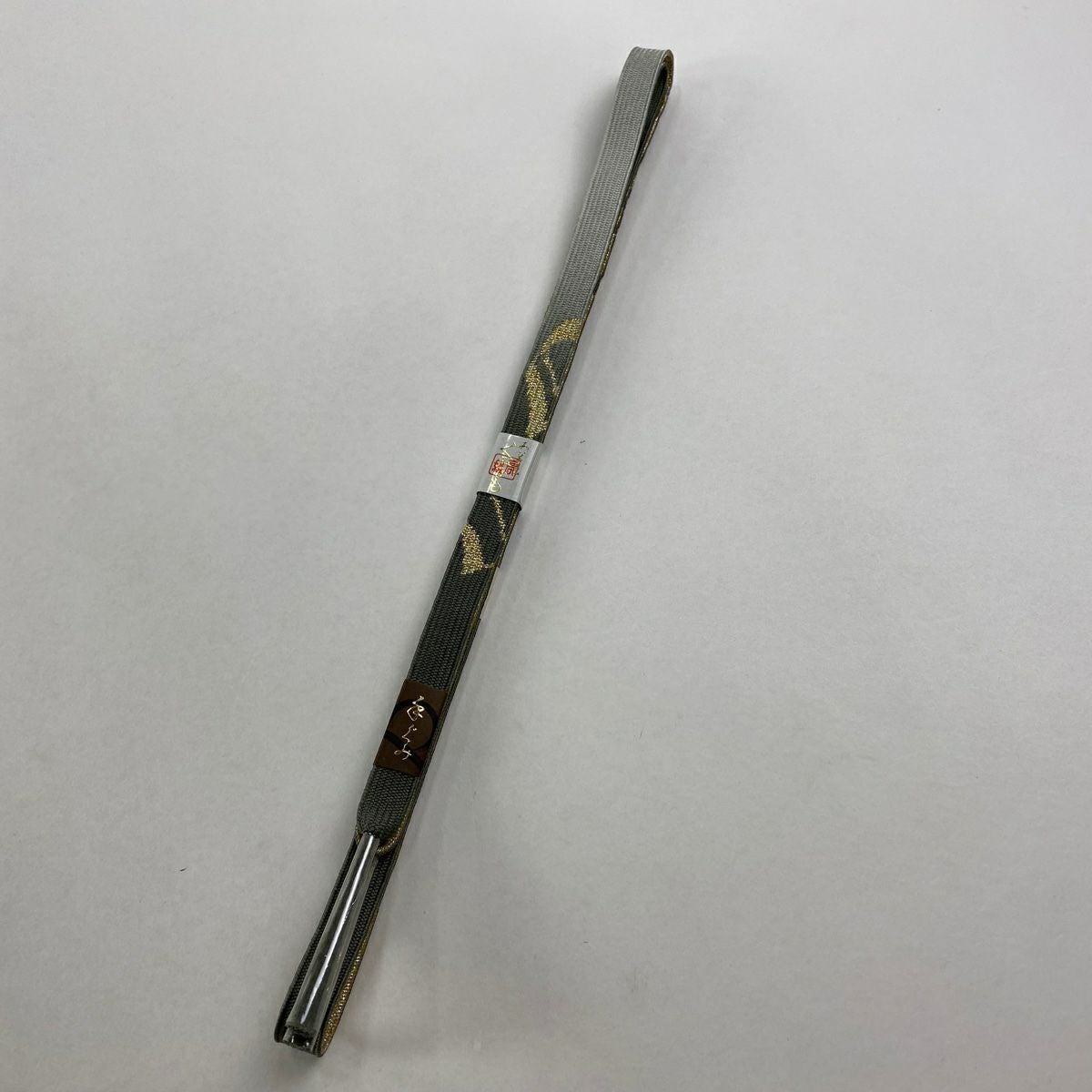 【美品】帯締め 優品 金糸 灰緑 正絹 和装小物