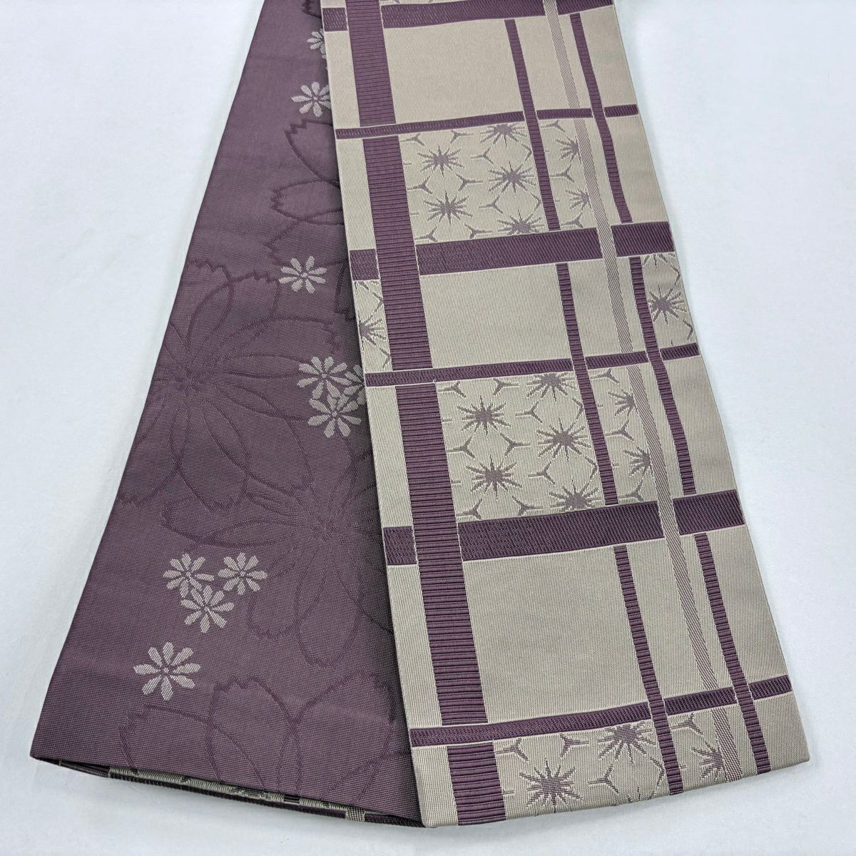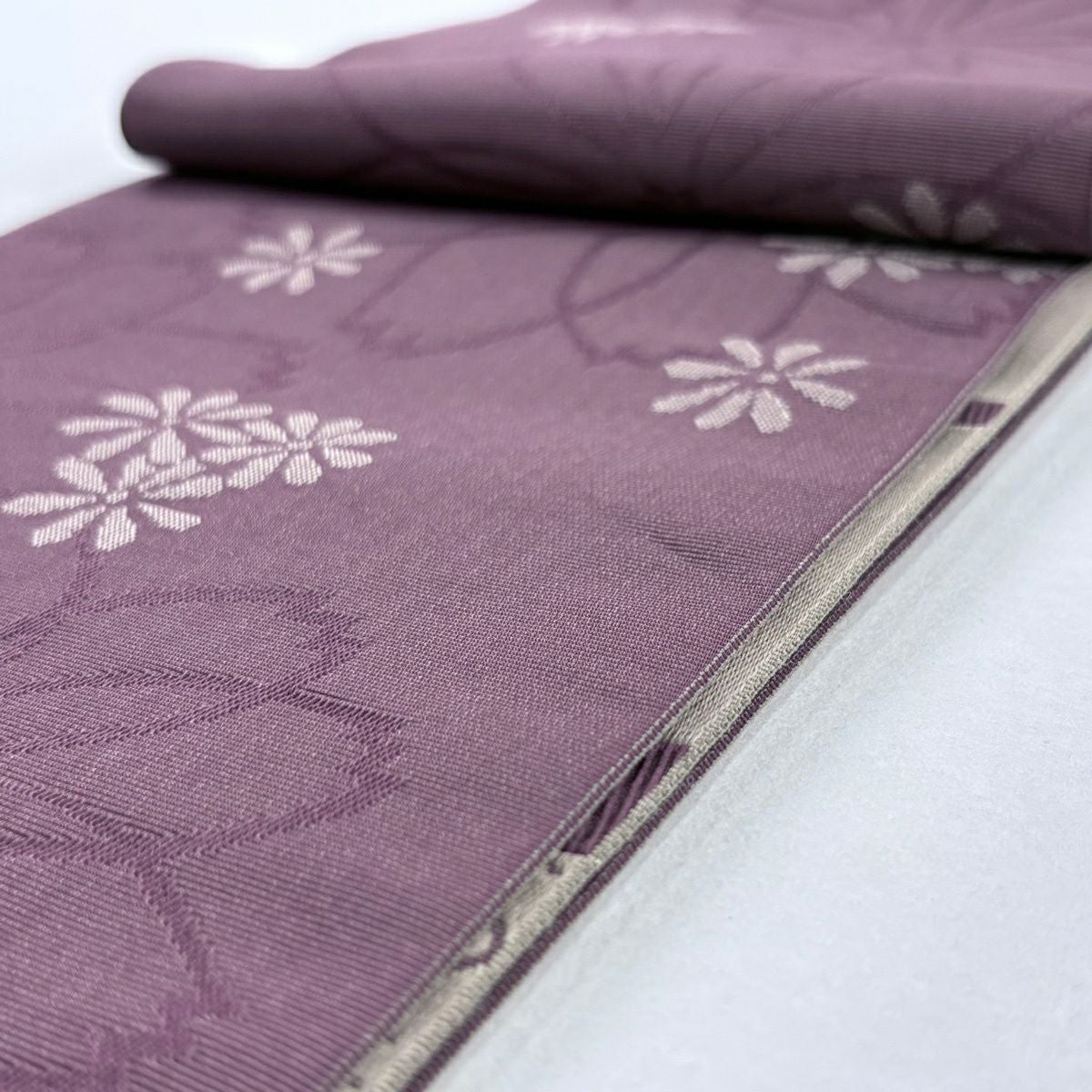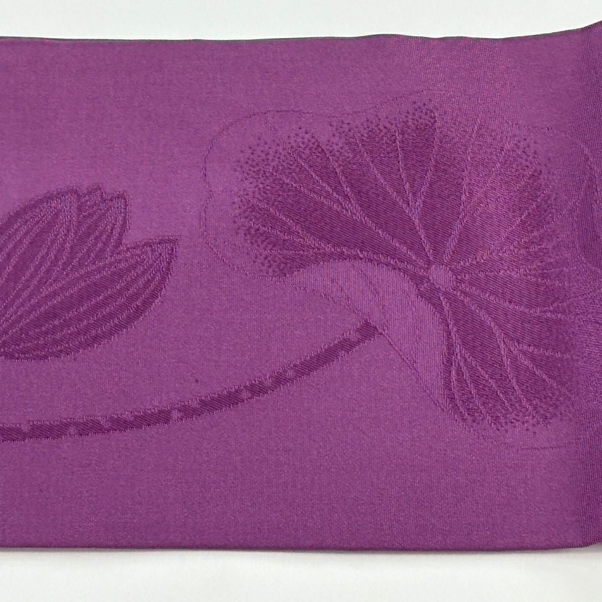 名古屋帯 優品 弔事向き 色喪帯 地紋 紫 正絹