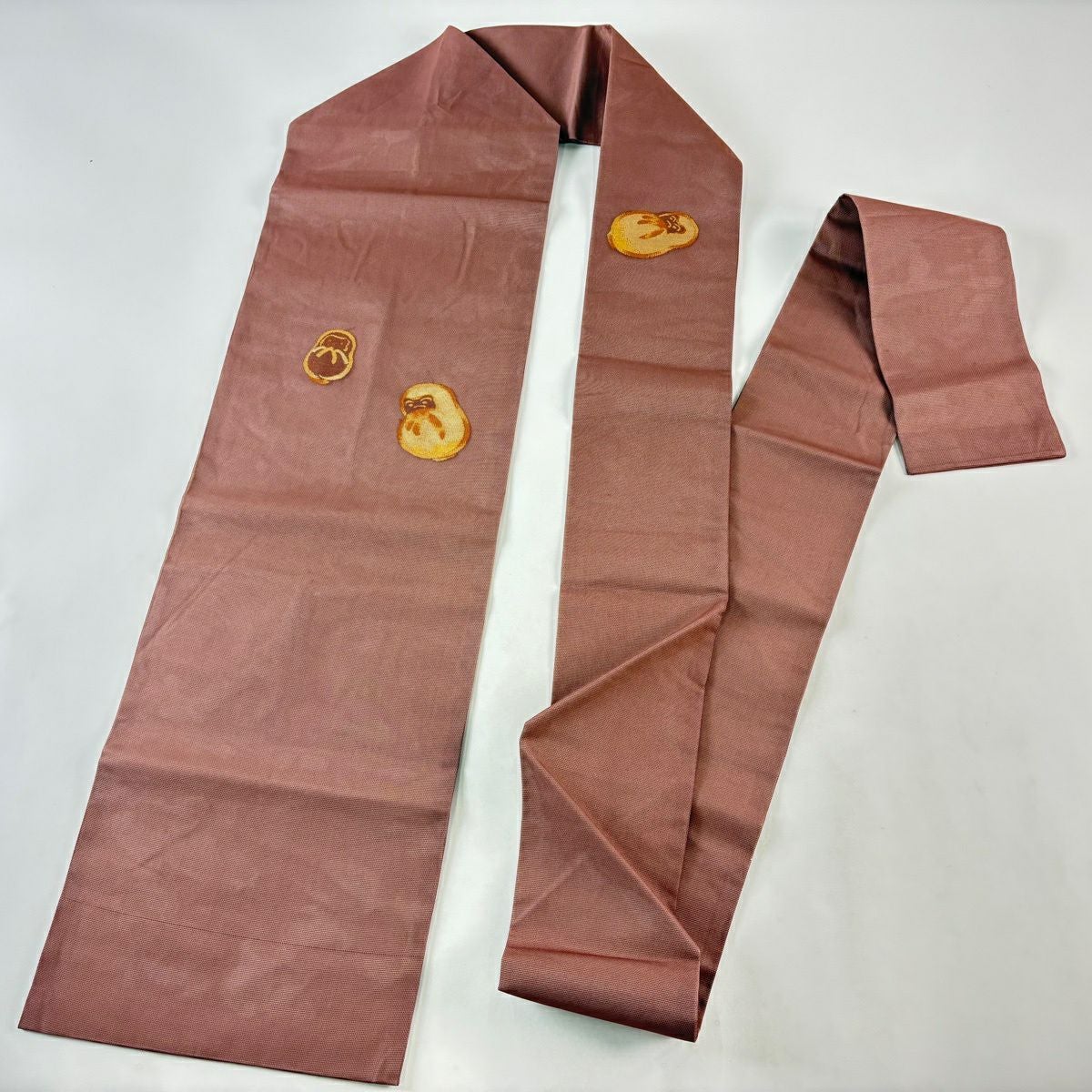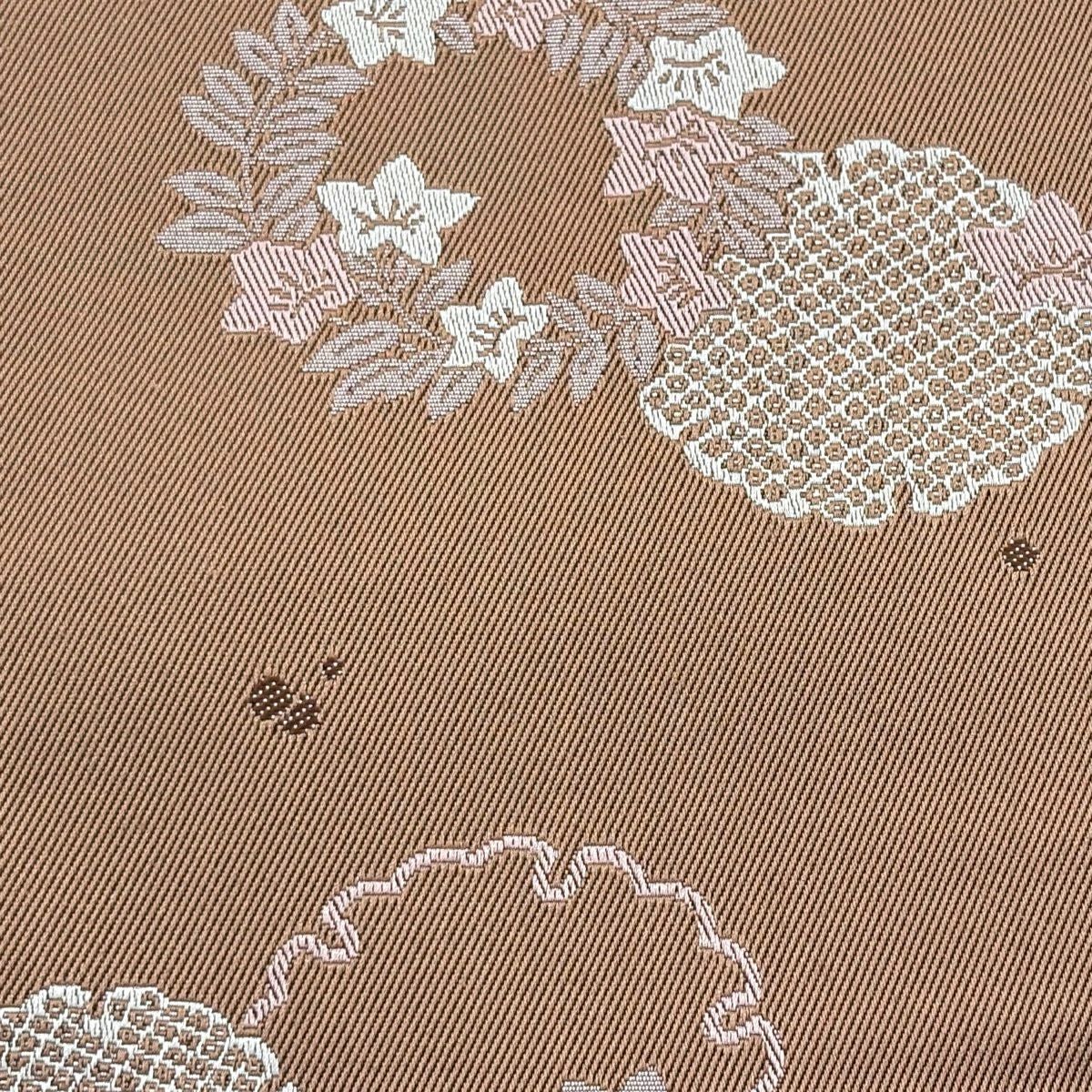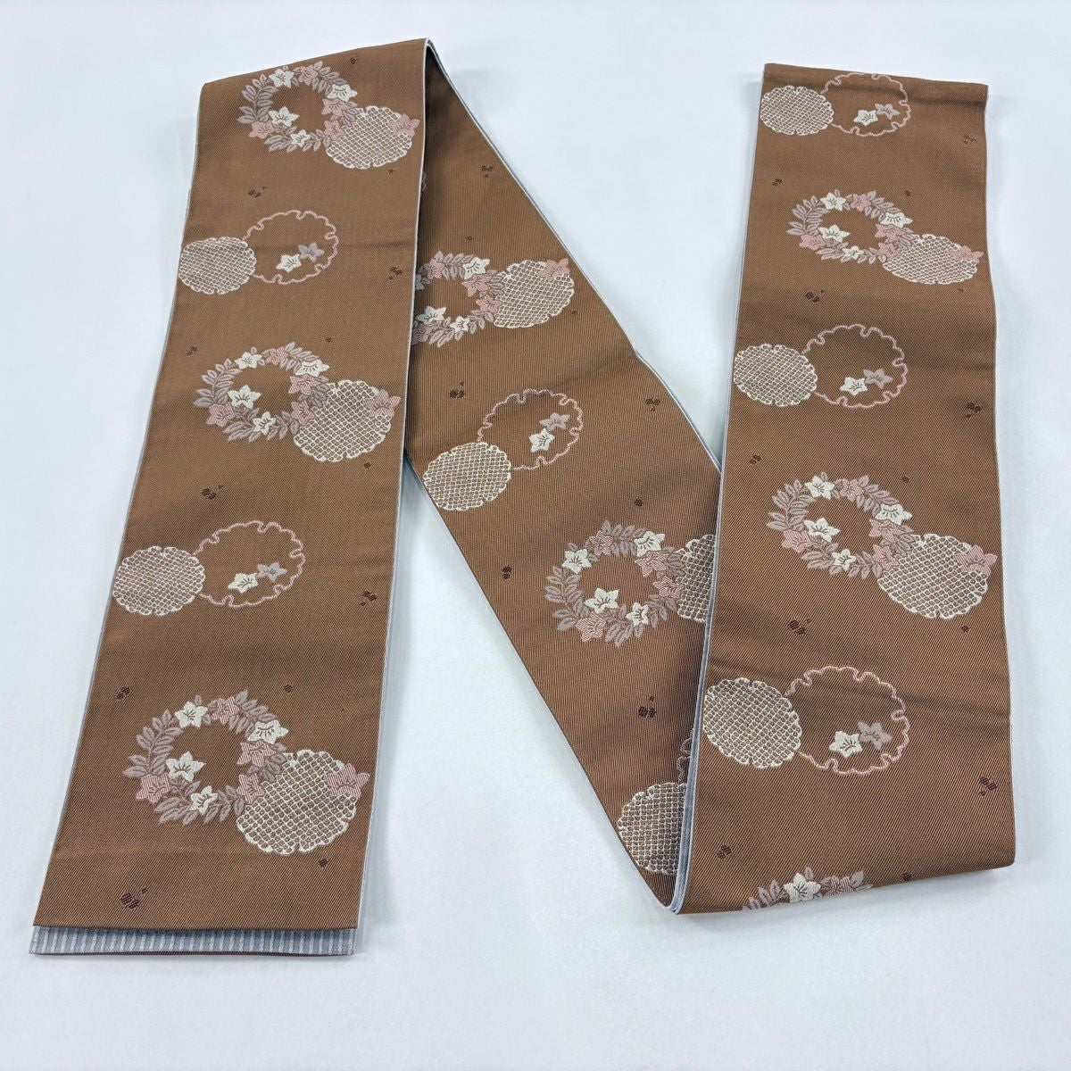 【美品】半幅帯 優品 雪輪 花丸文 薄茶色 化繊