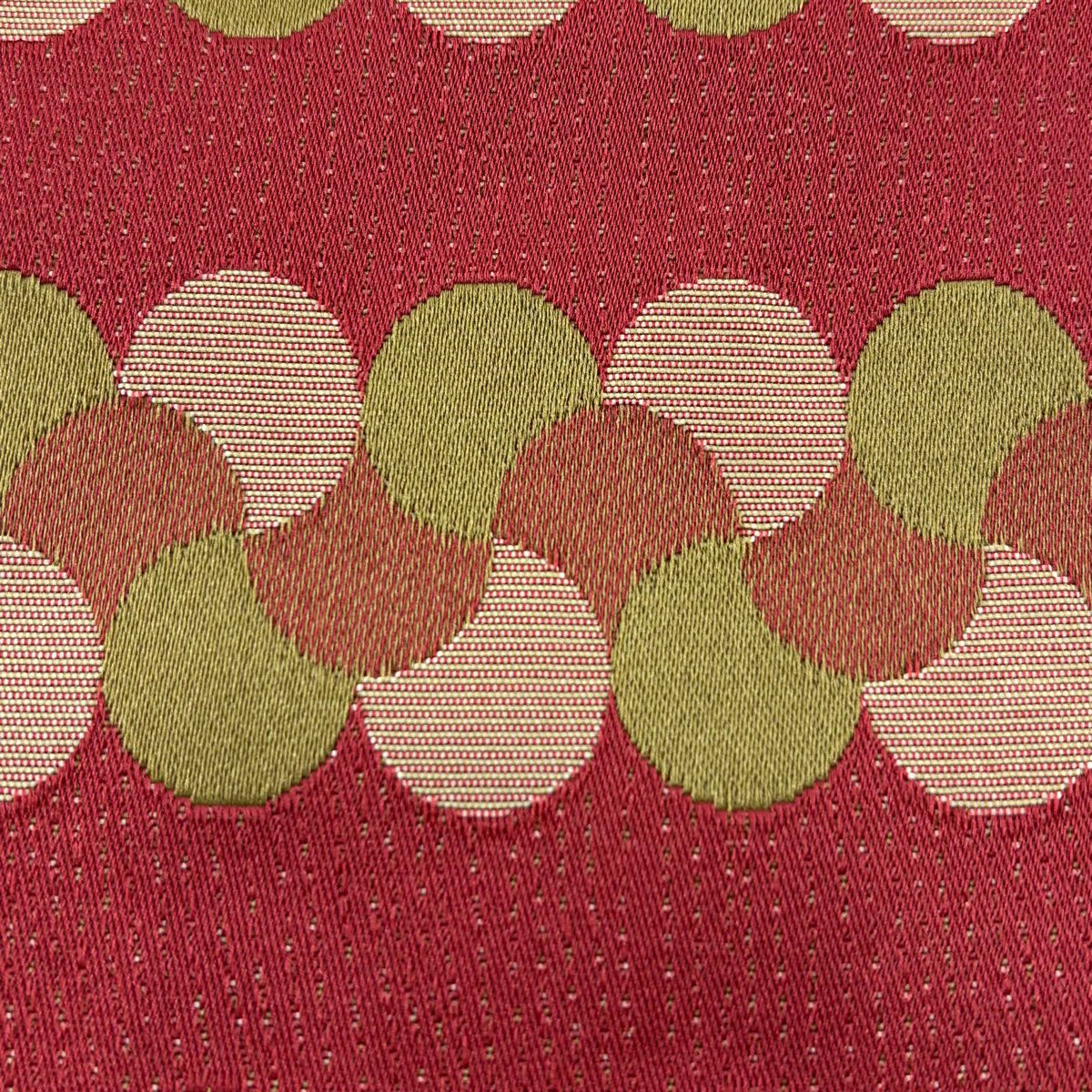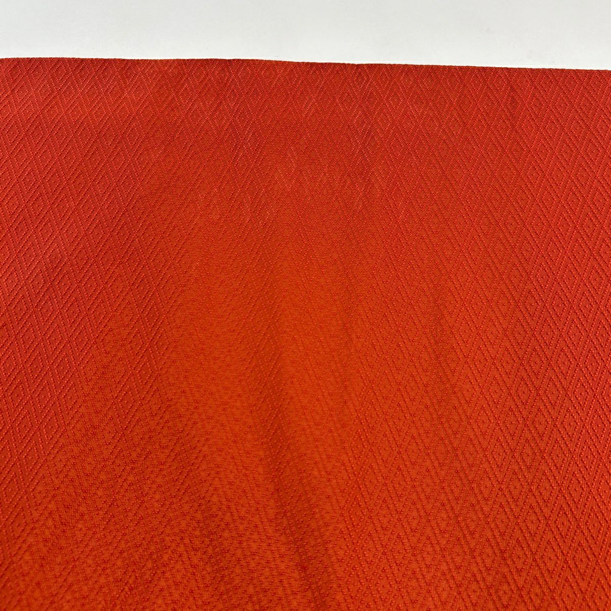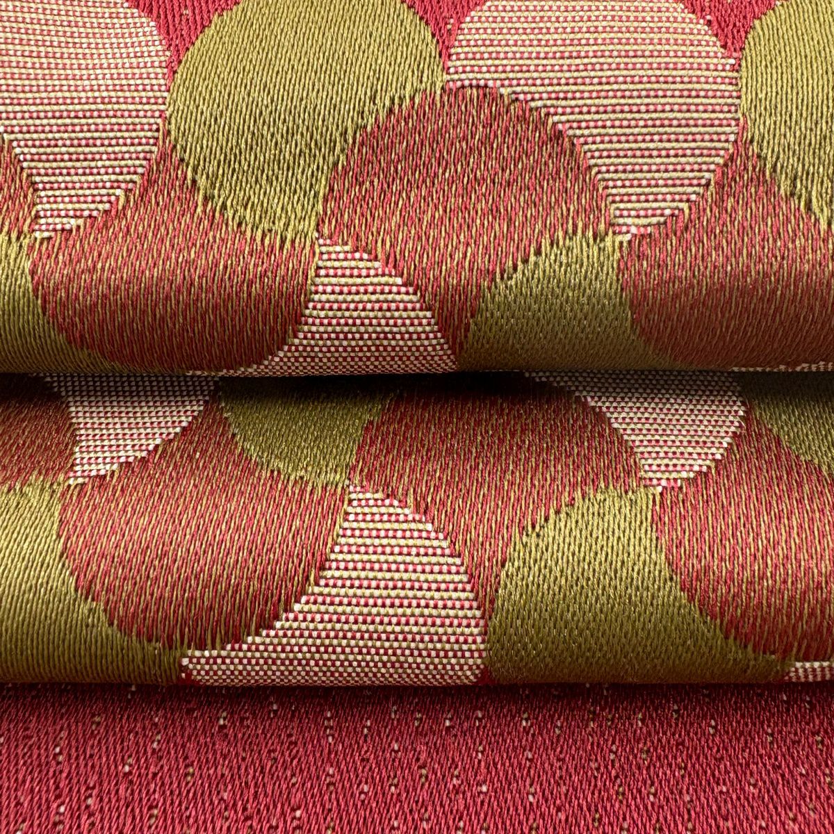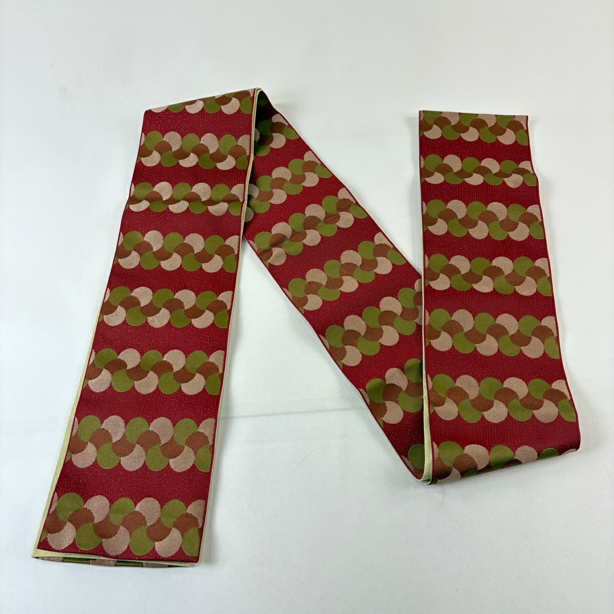 【美品】半幅帯 優品 幾何学模様 えんじ色 化繊