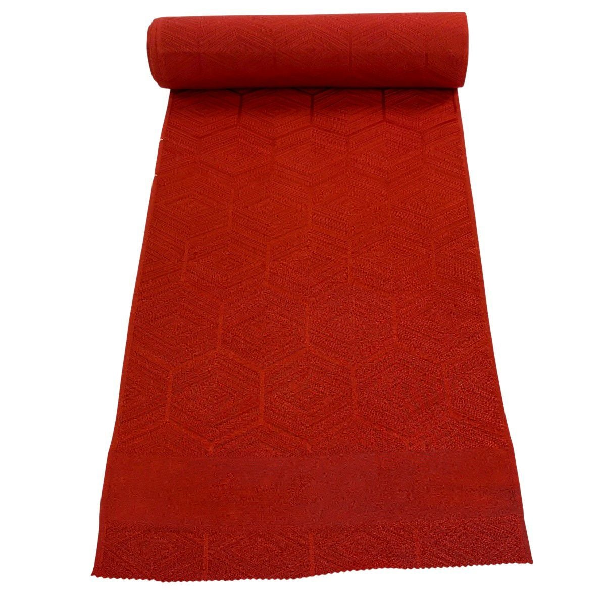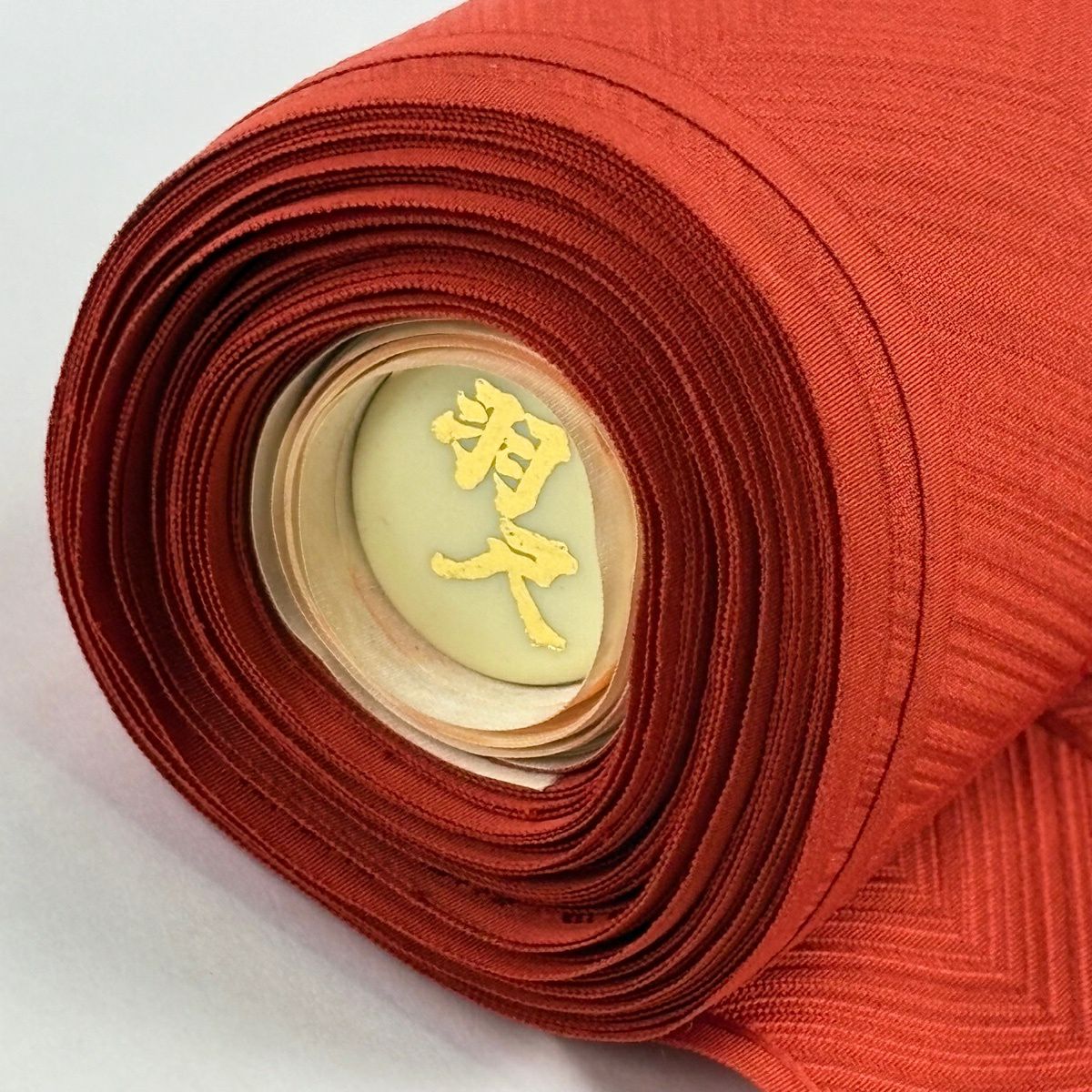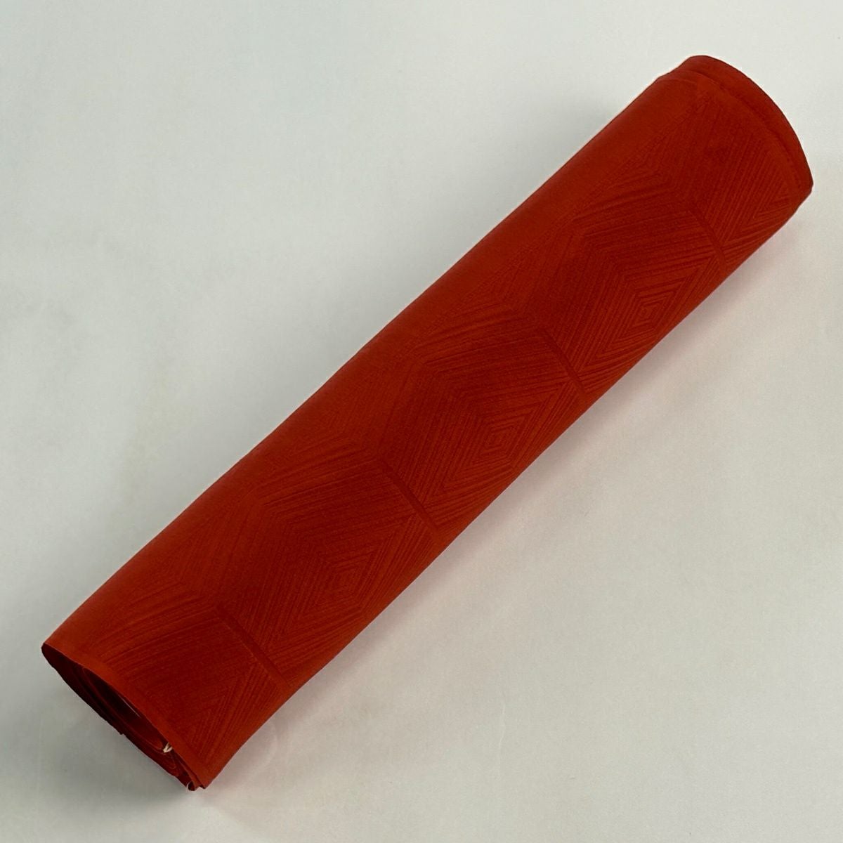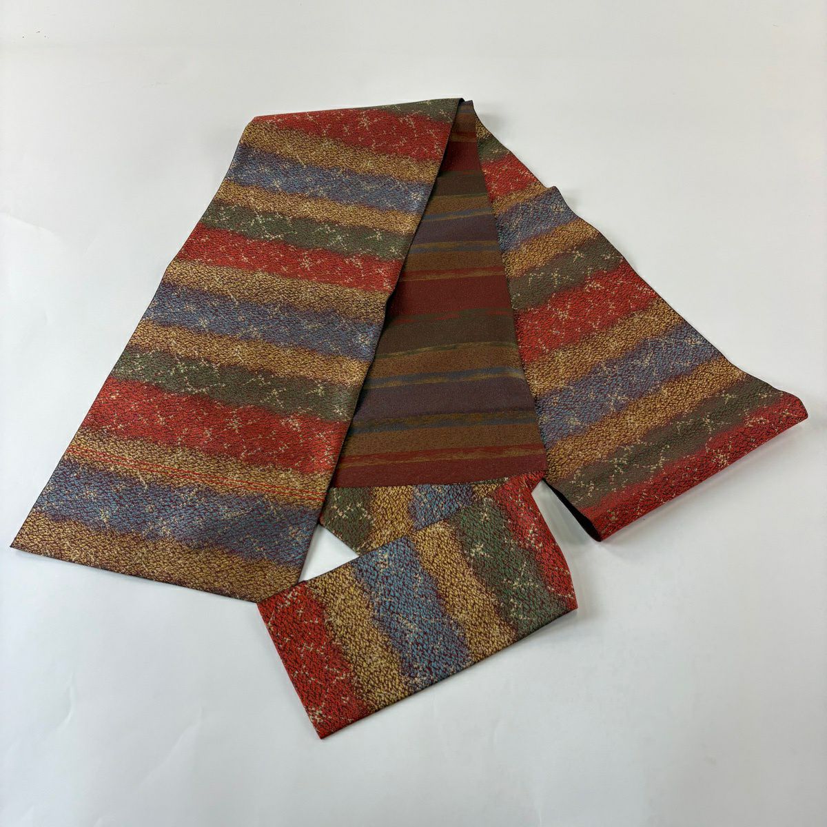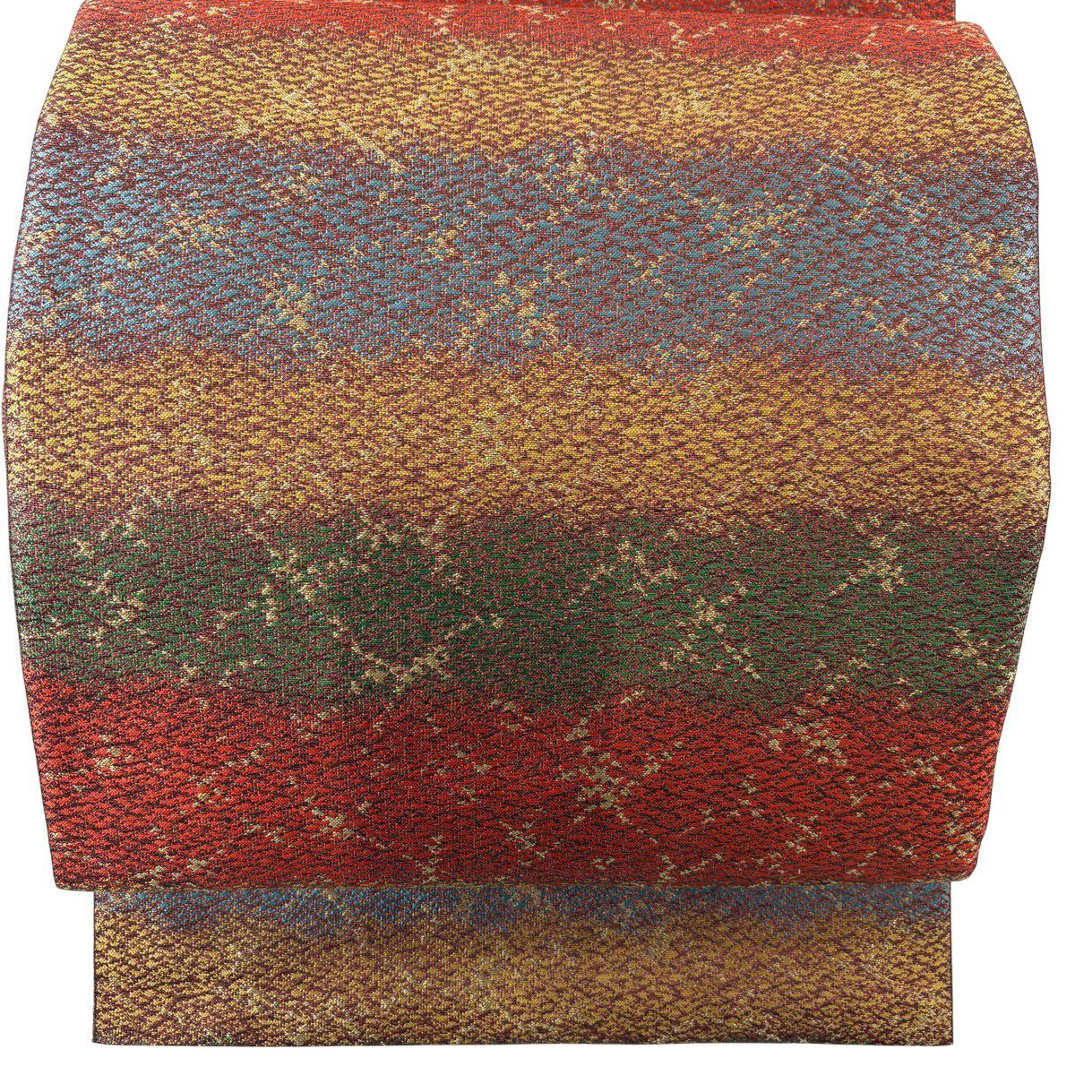 【美品】半幅帯 優品 幾何学模様 えんじ色 化繊