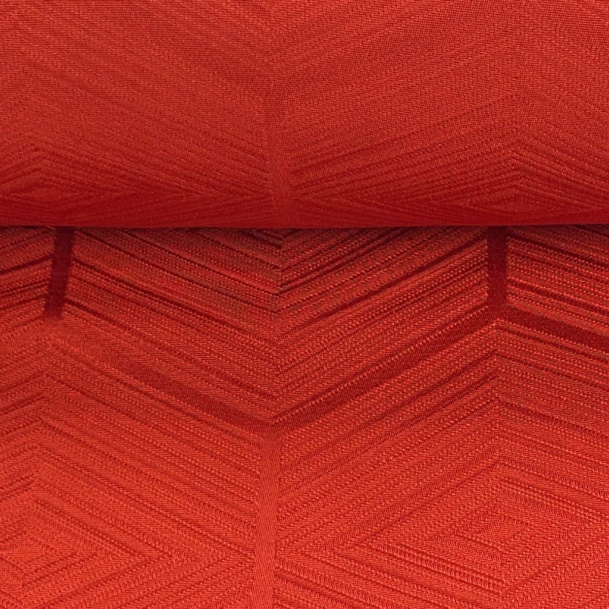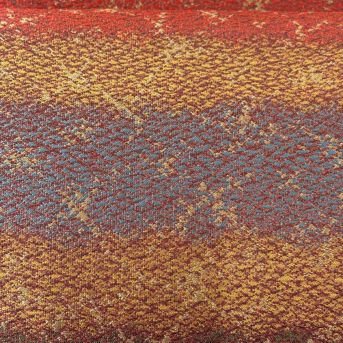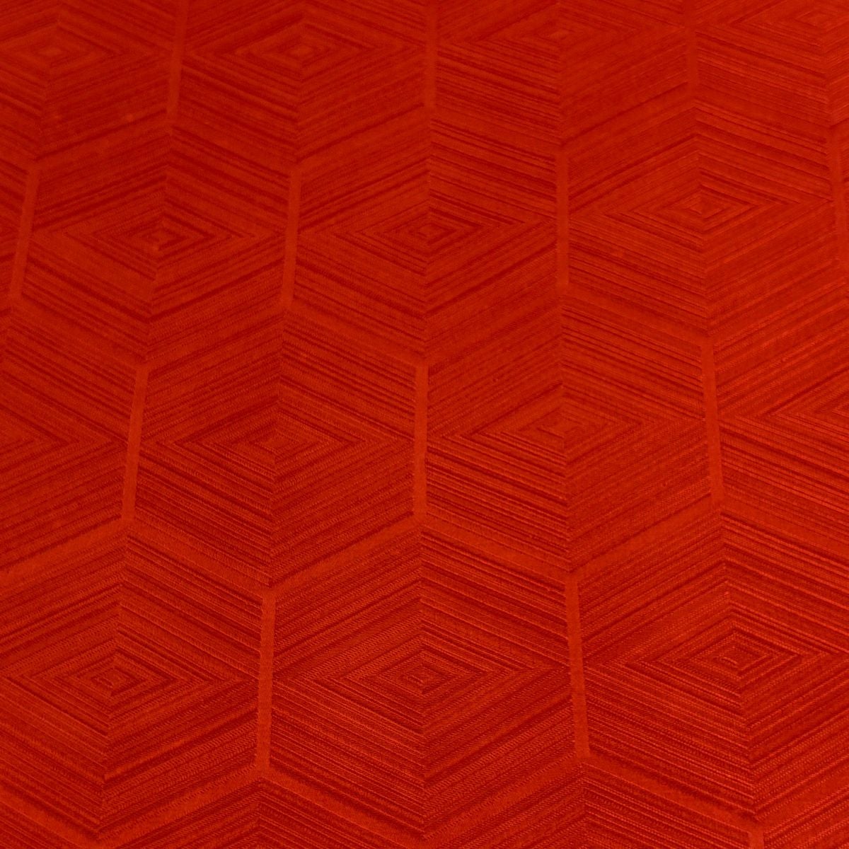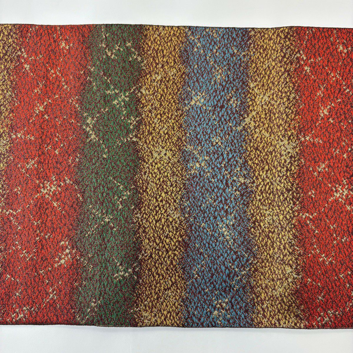 【美品】半幅帯 優品 幾何学模様 えんじ色 化繊