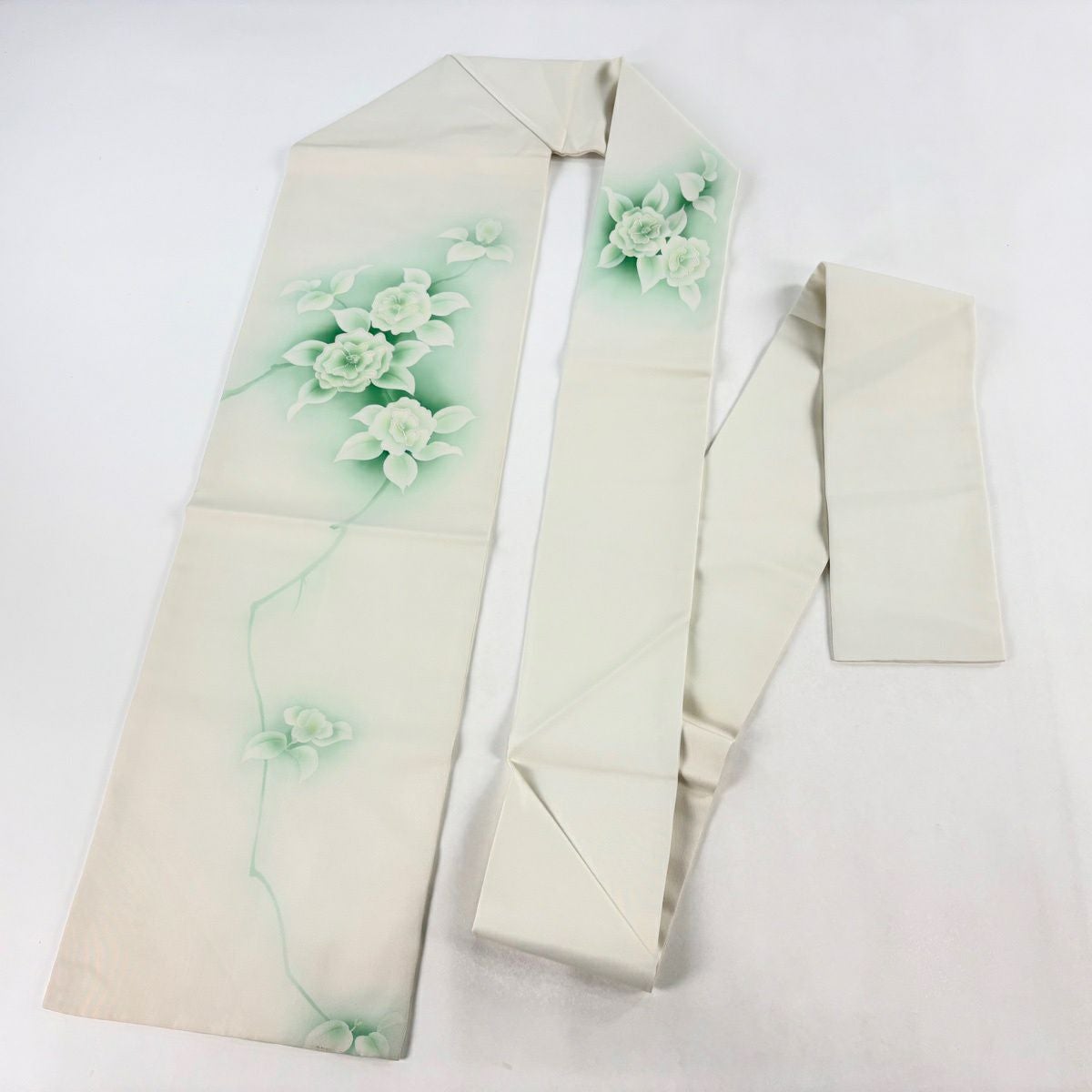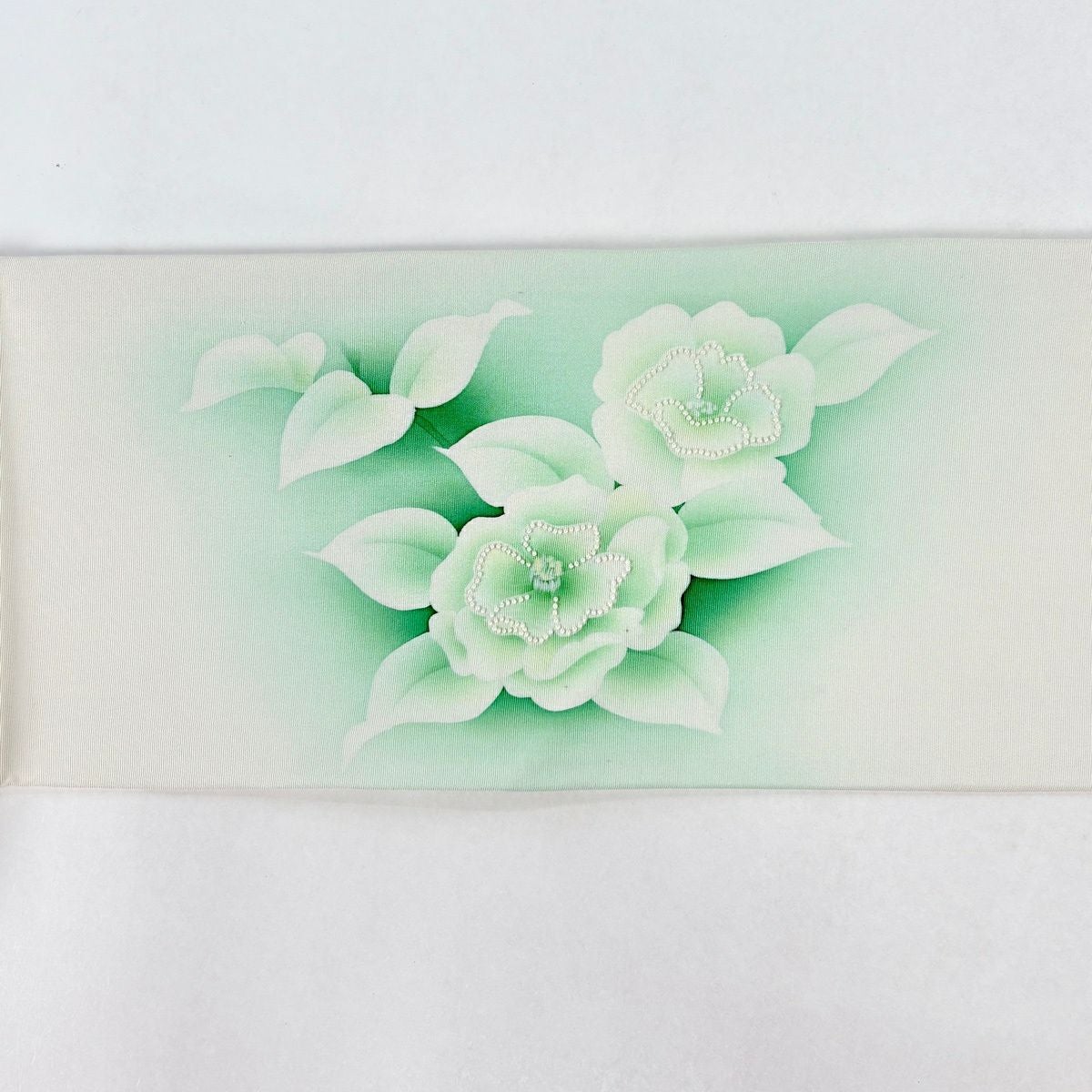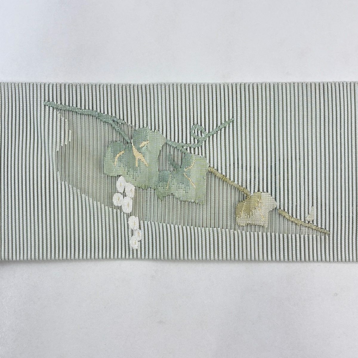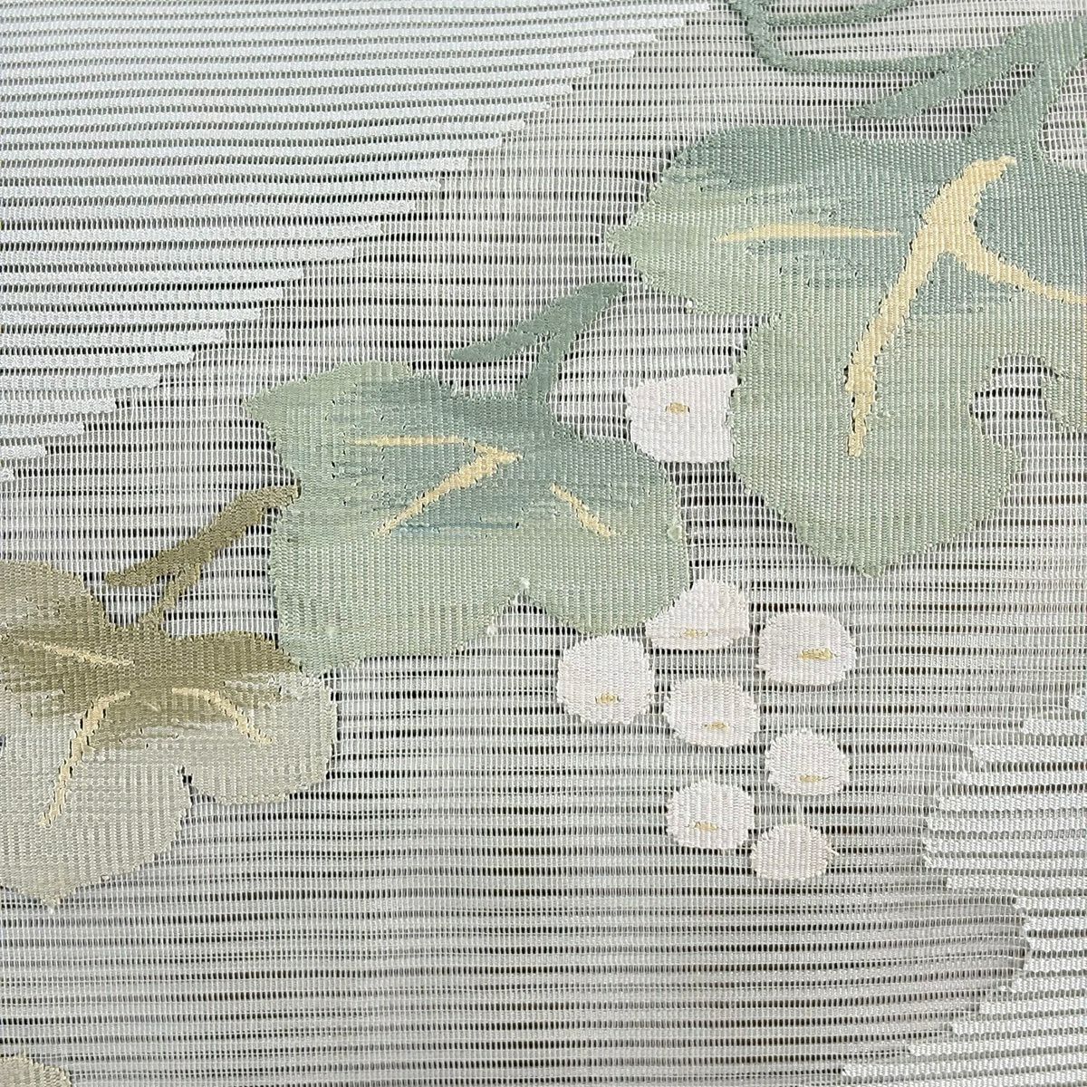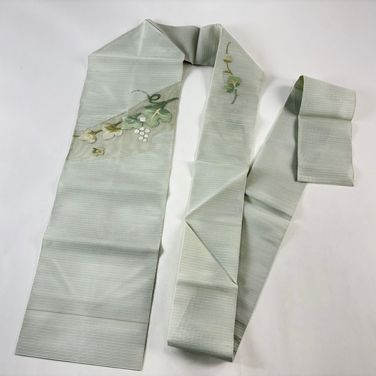 名古屋帯 優品 草花 相良刺繍 ぼかし 緑 正絹