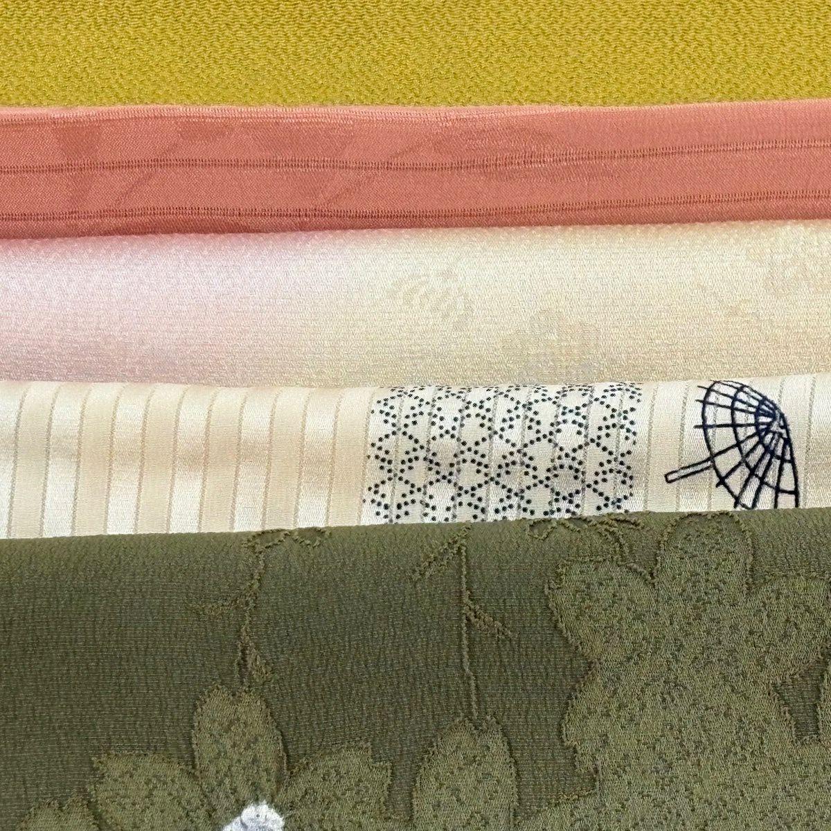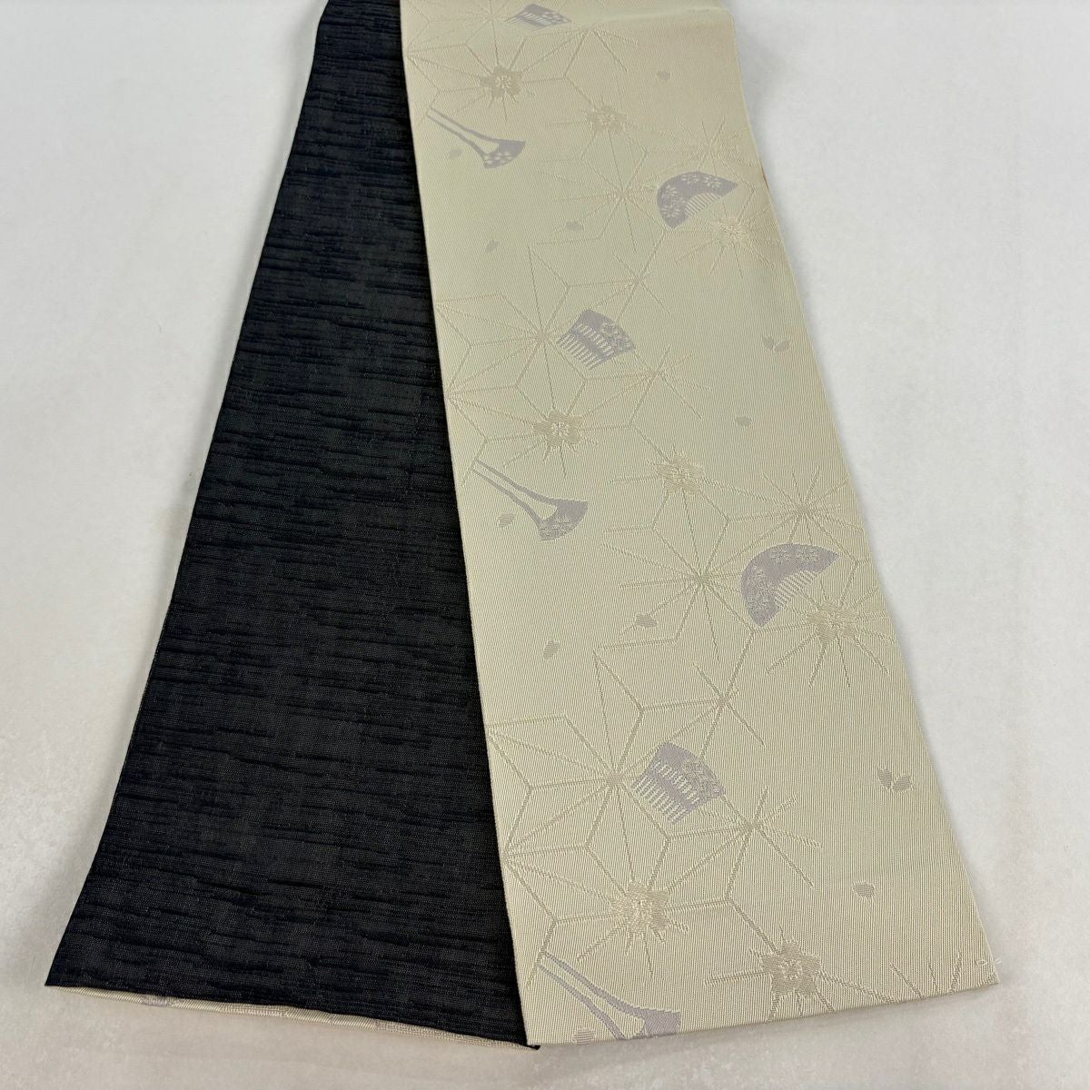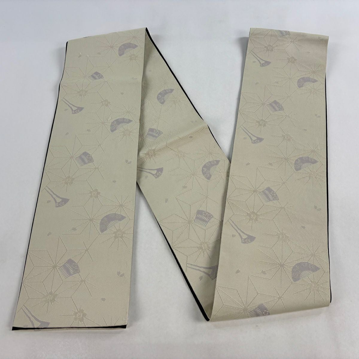 【美品】半幅帯 優品 櫛 簪 ベージュ 化繊