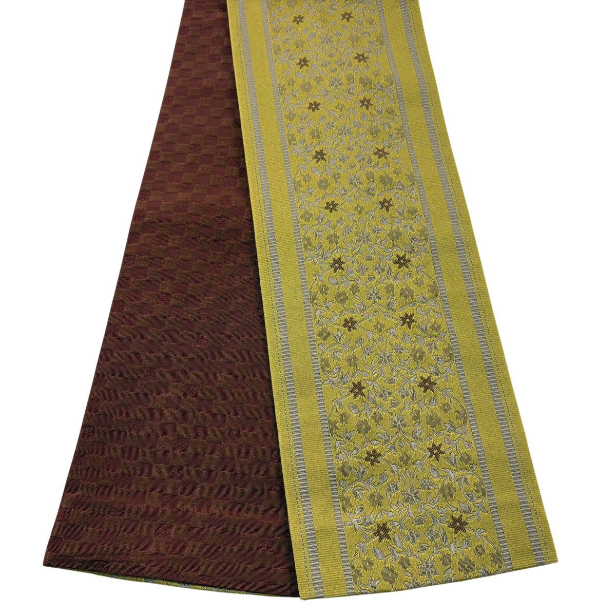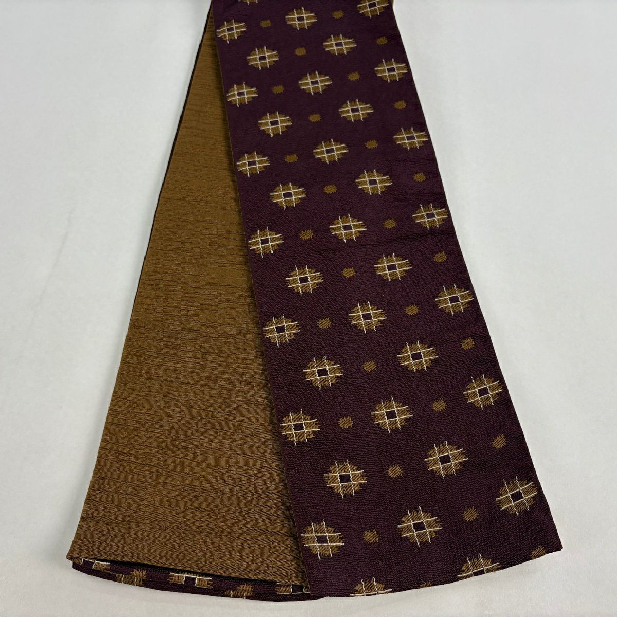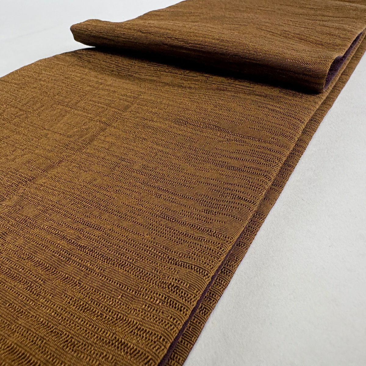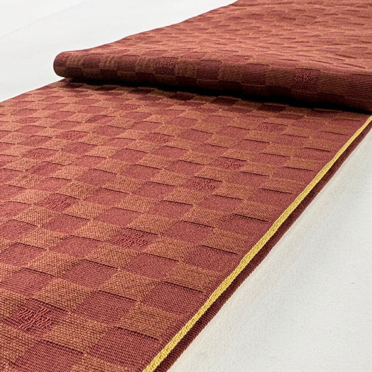 【美品】半幅帯 優品 井桁 幾何学 小豆色 化繊