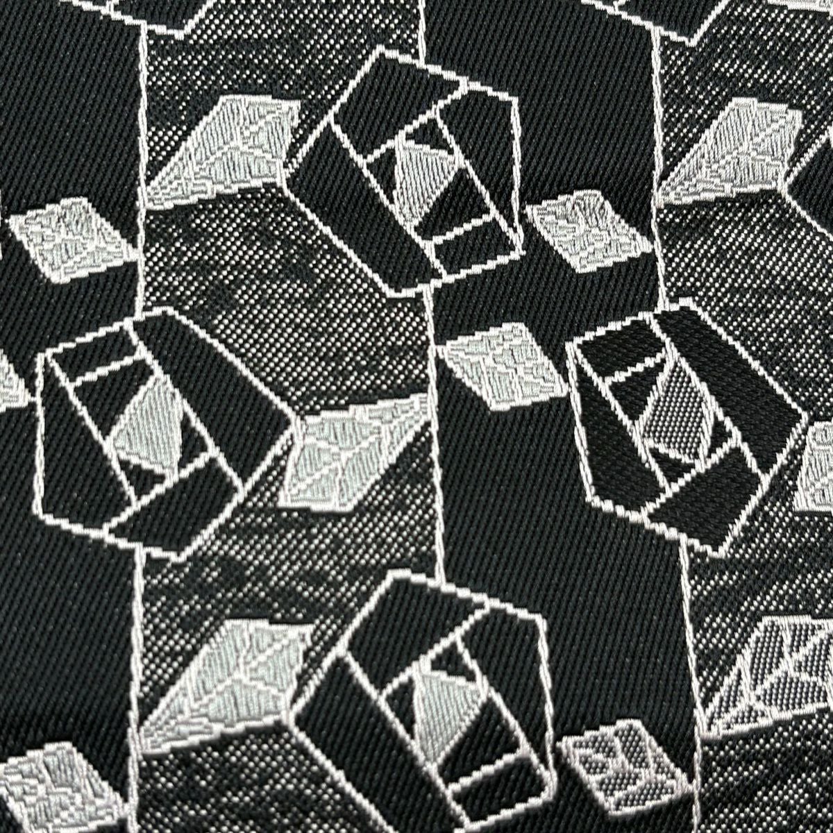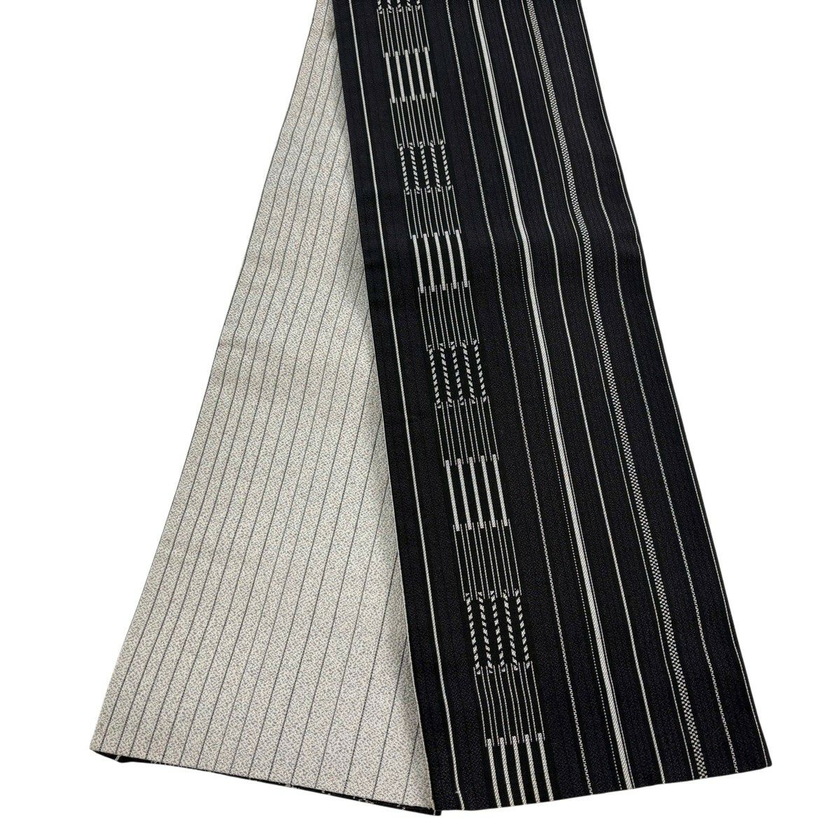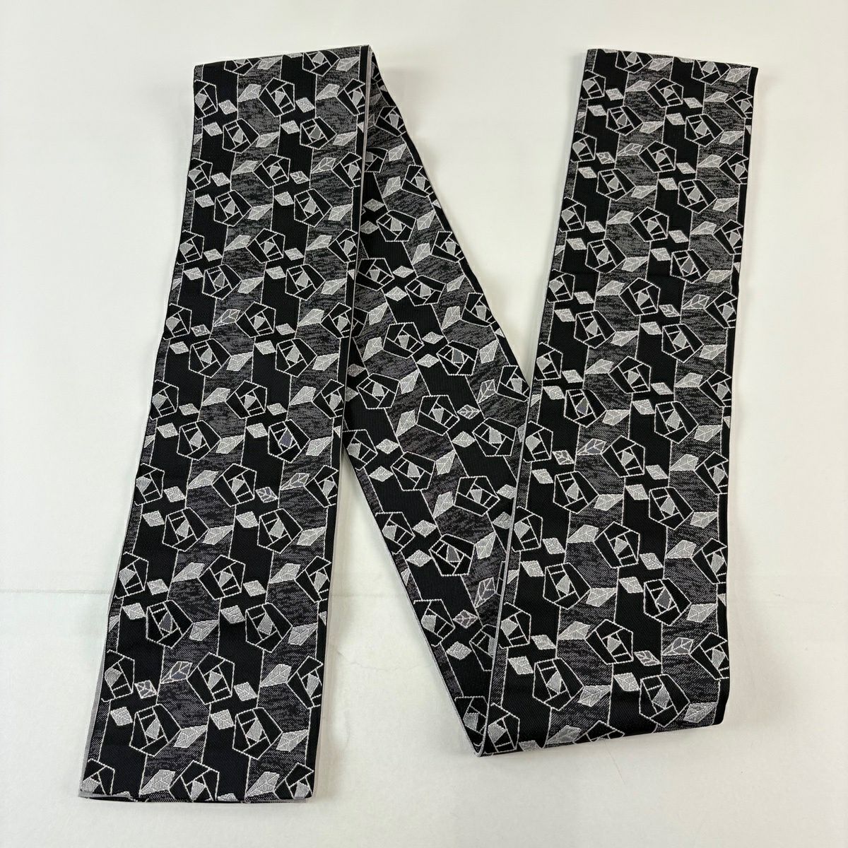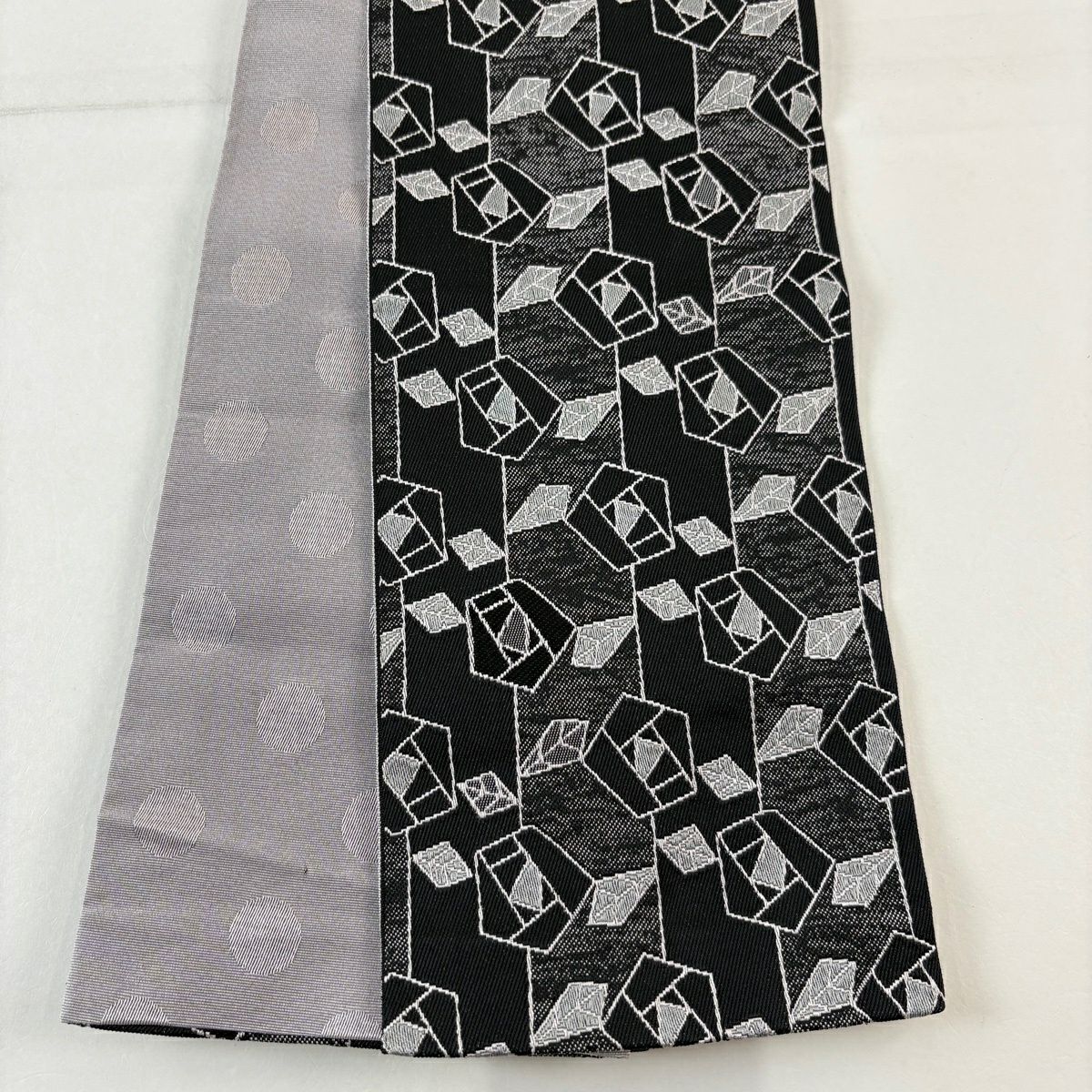 【美品】半幅帯 優品 薔薇 幾何学模様 黒 化繊