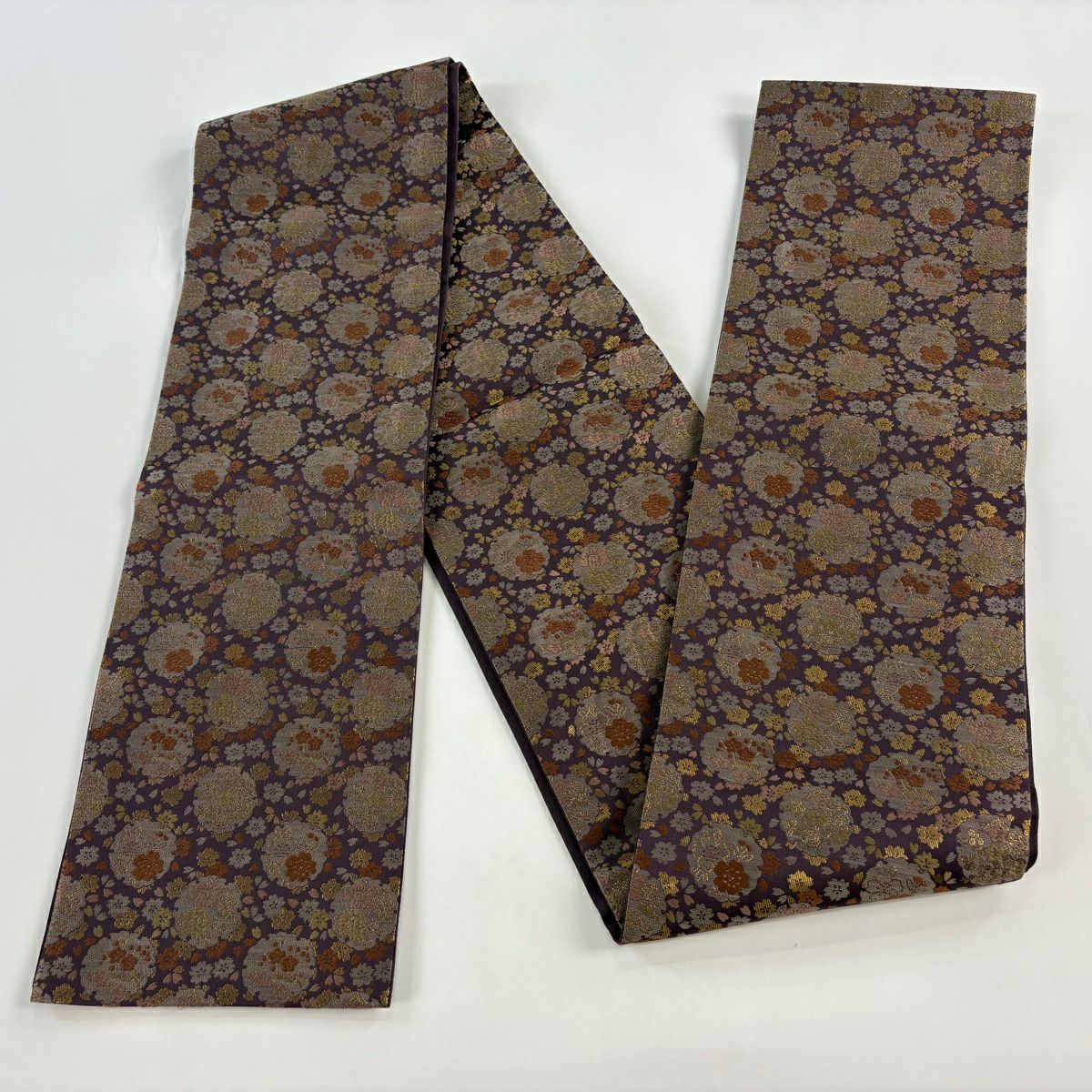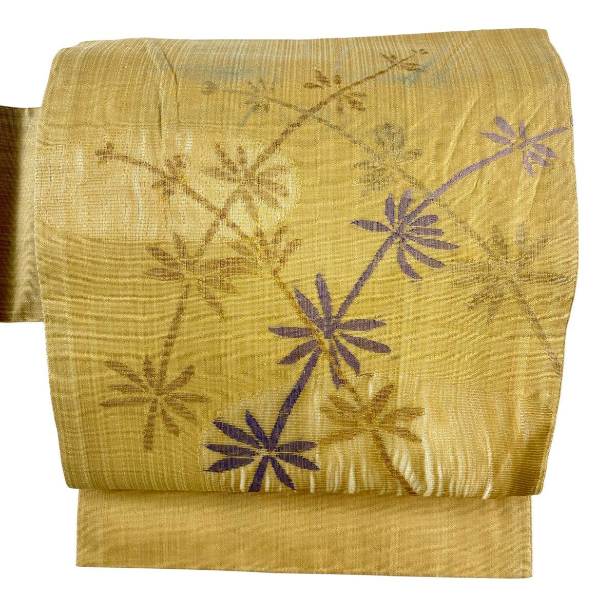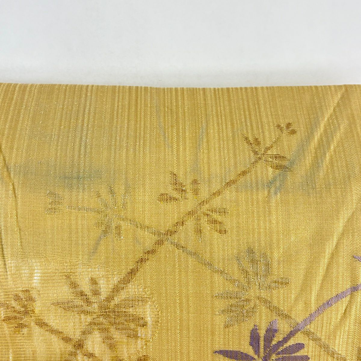 【美品】半幅帯 優品 雪輪 草花 箔 灰紫 正絹