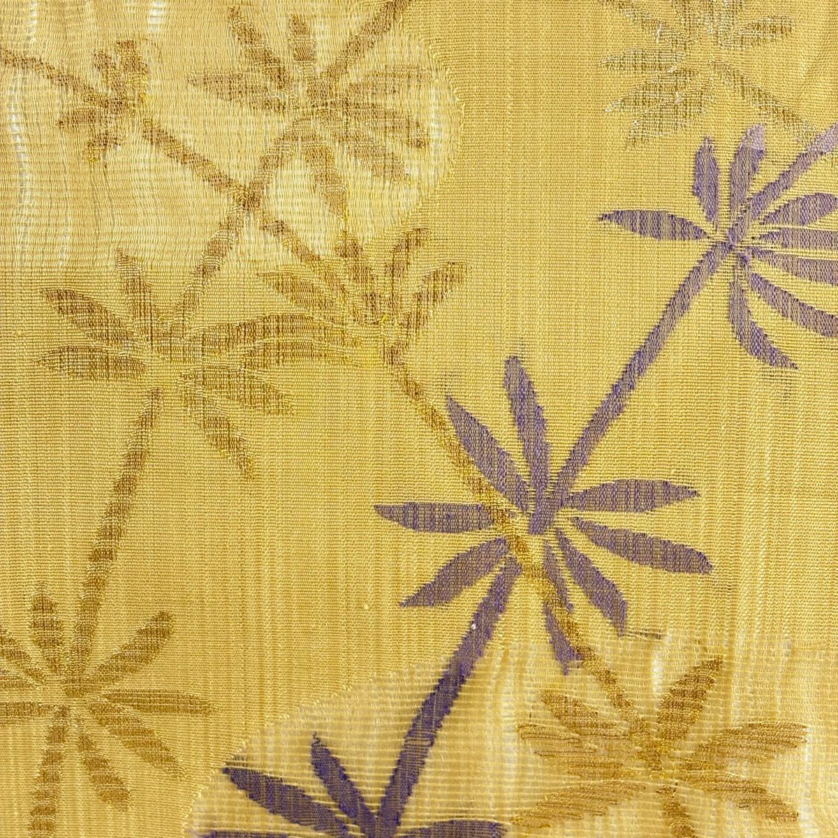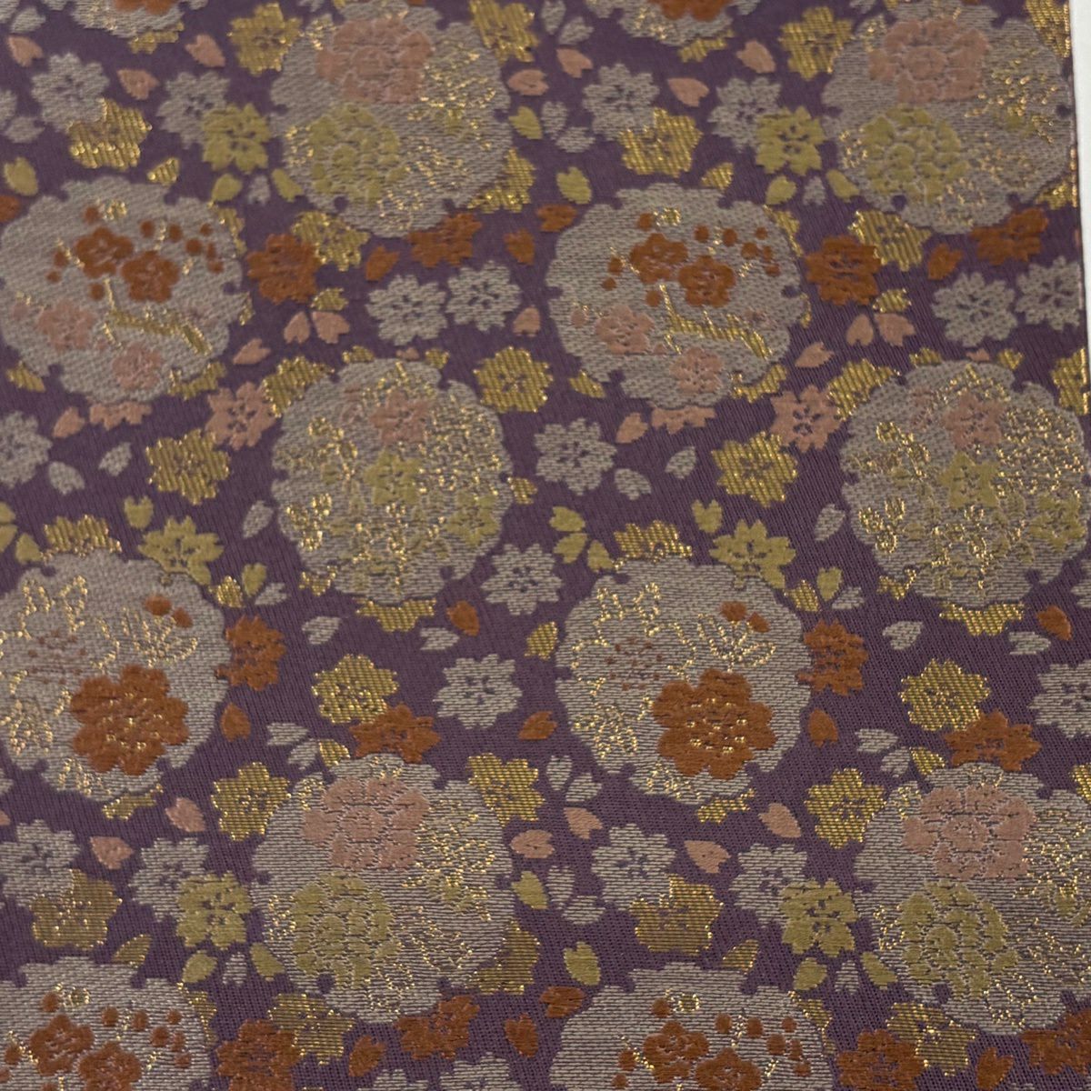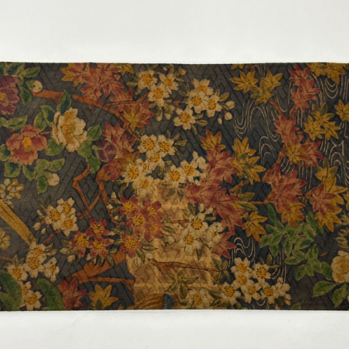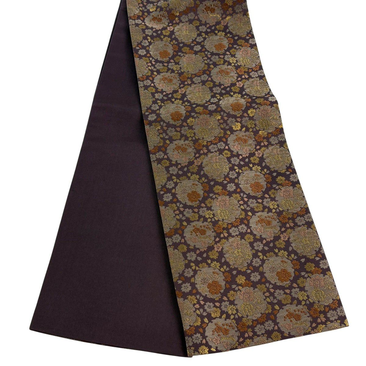 【美品】半幅帯 優品 雪輪 草花 箔 灰紫 正絹
