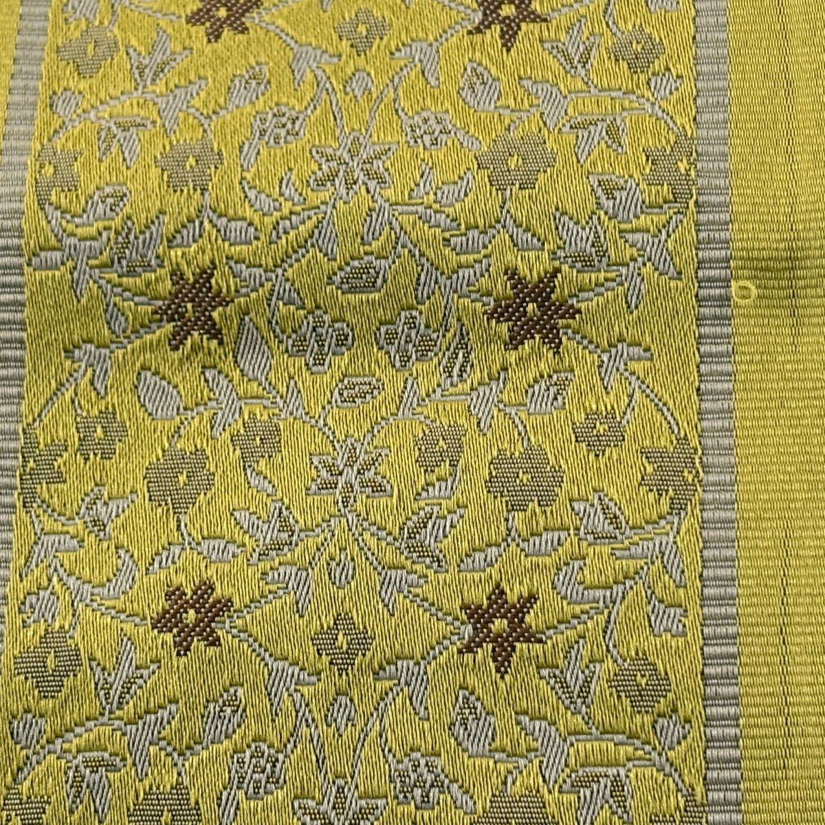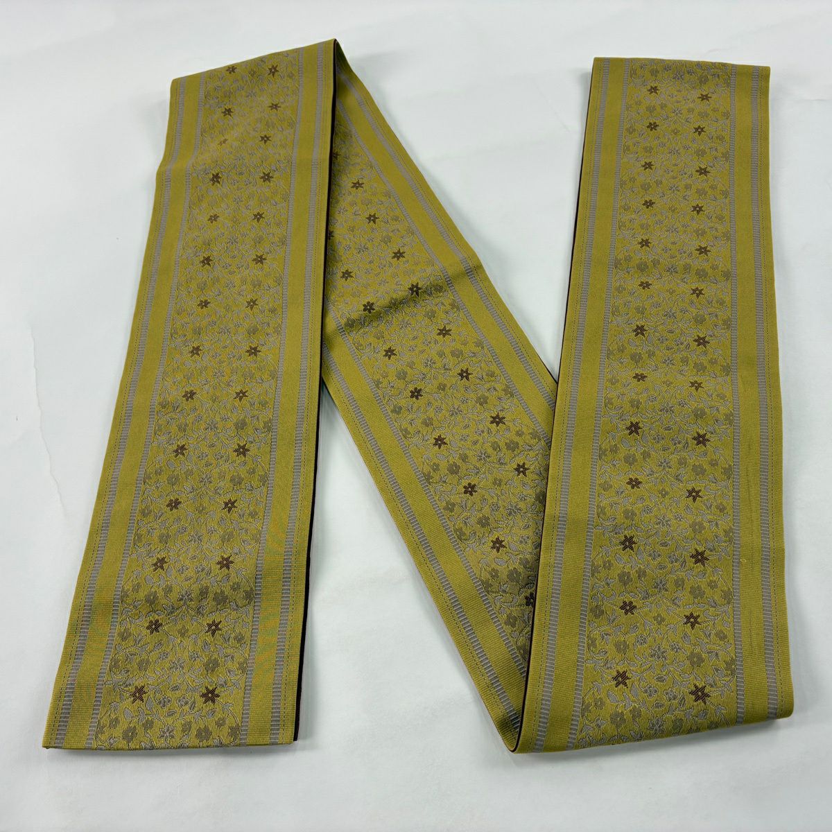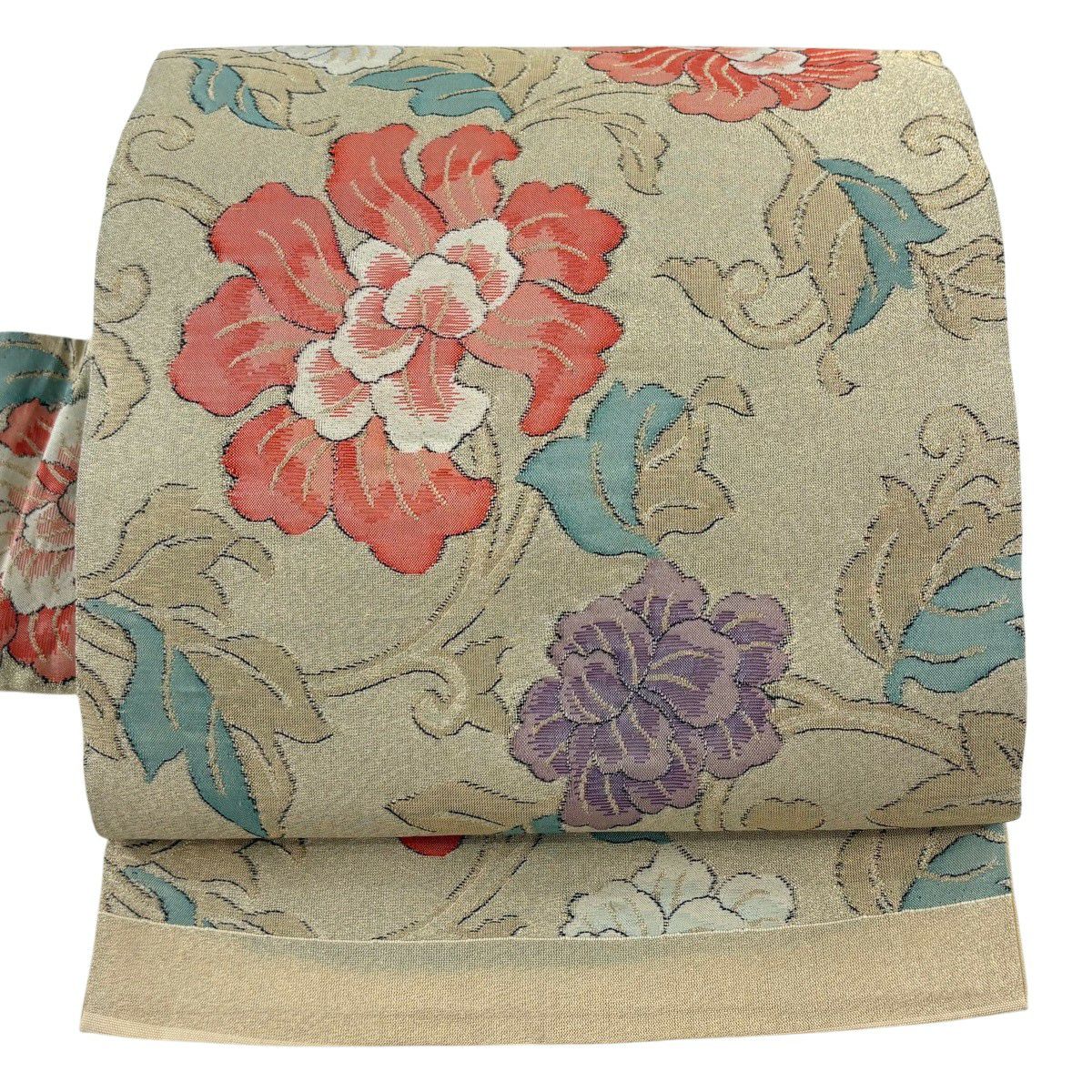 【美品】 名古屋帯 優品 花唐草 クリーム 正絹