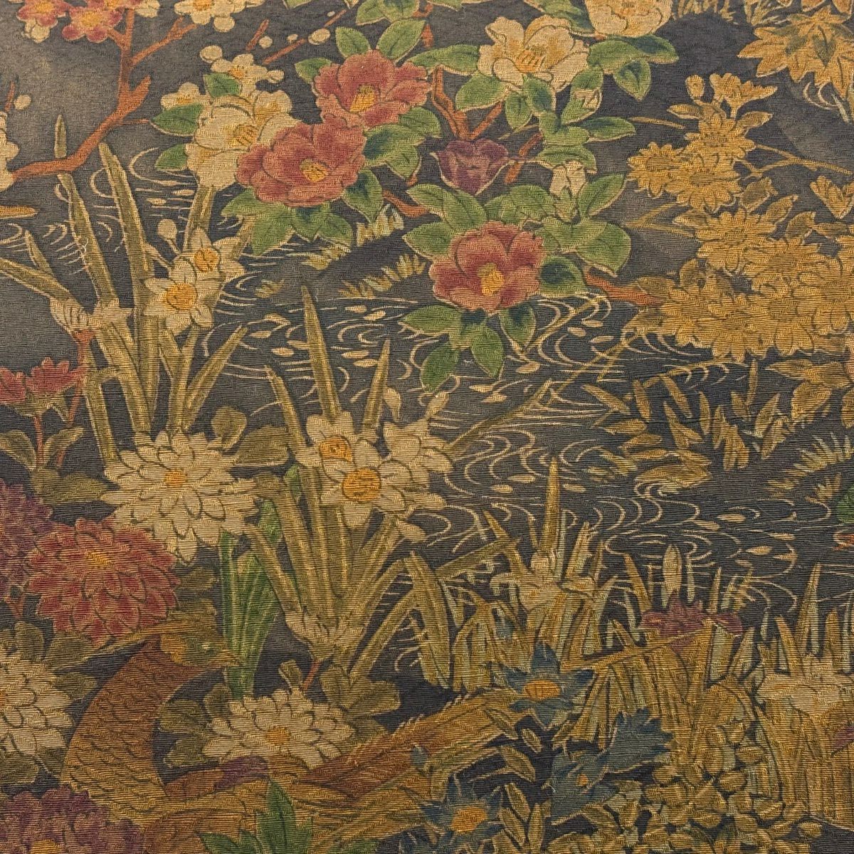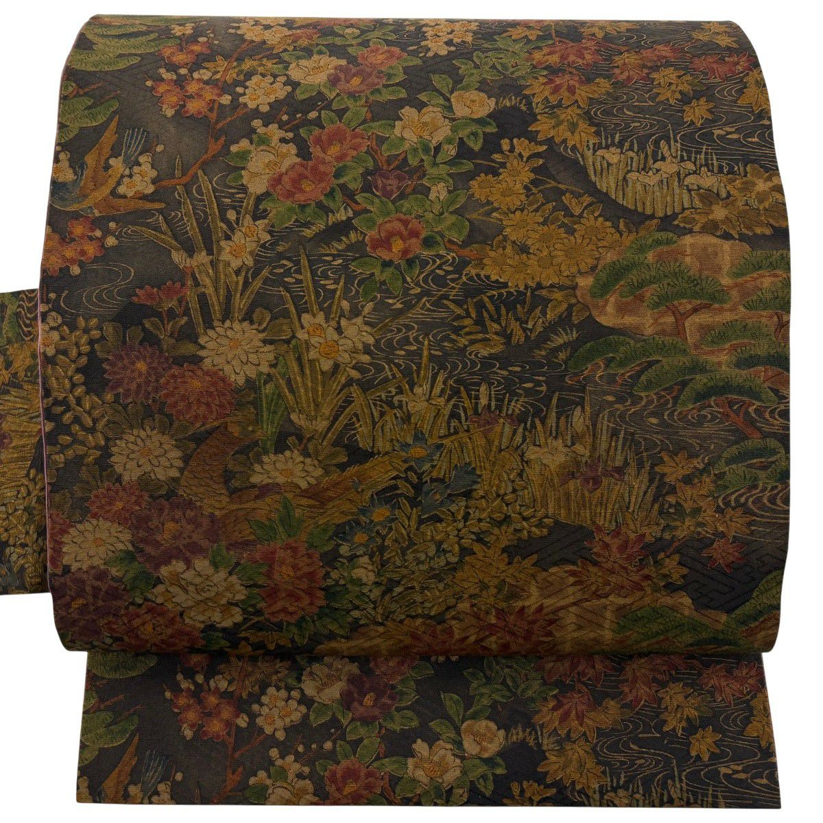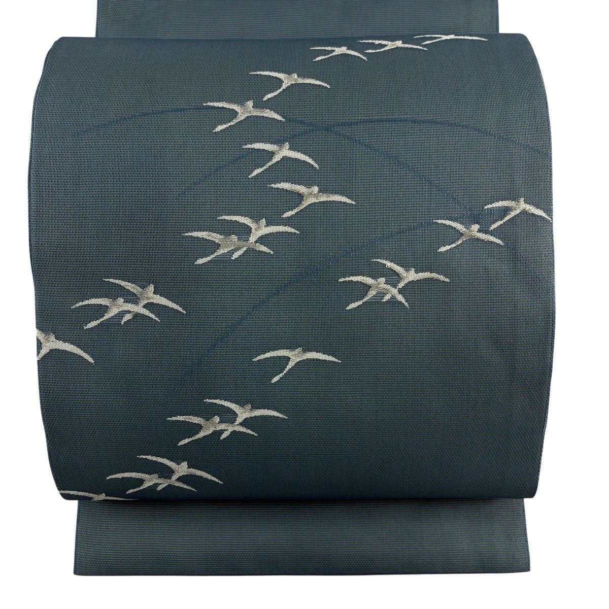 開き名古屋帯 優品 八寸名古屋帯 鳥 金糸 濃紺 正絹