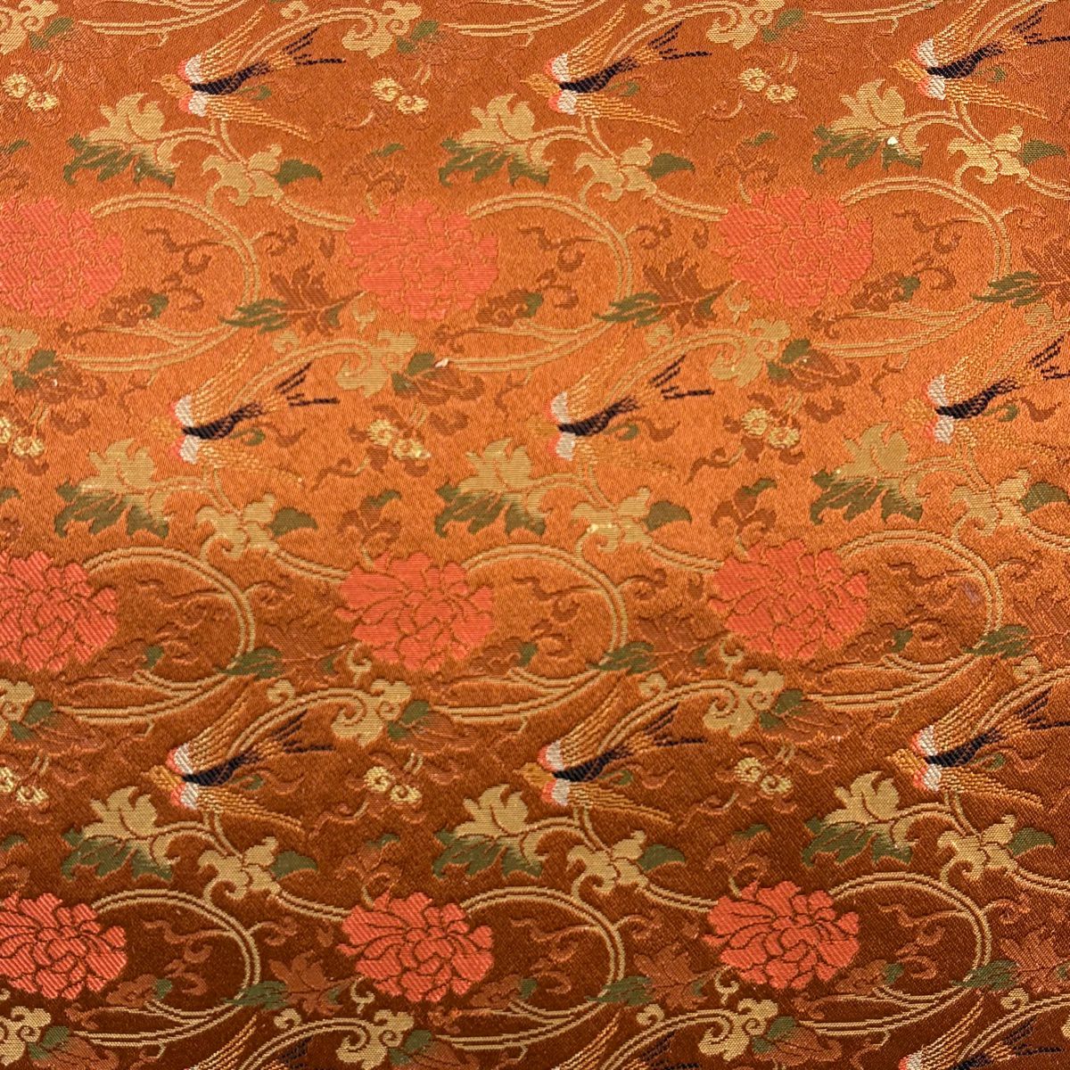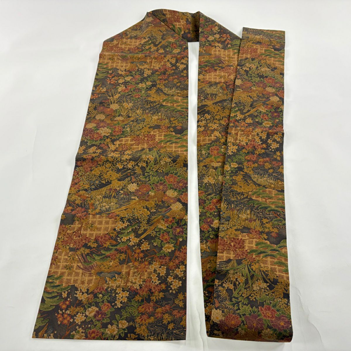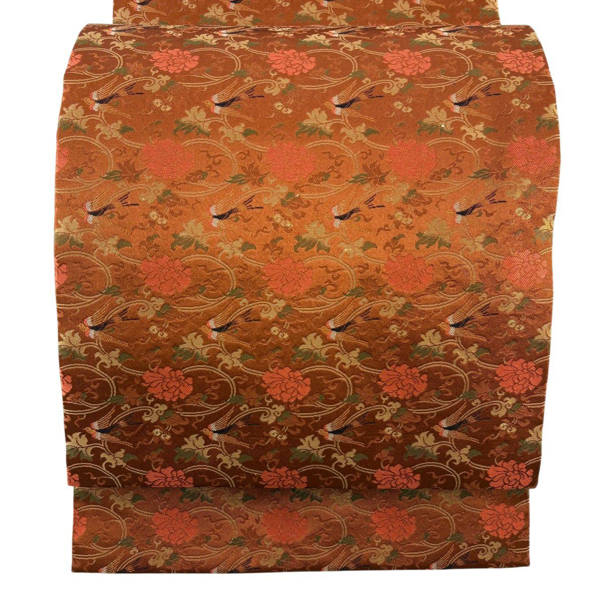 【美品】 袋帯 優品 鳥 花唐草 赤茶 全通 正絹
