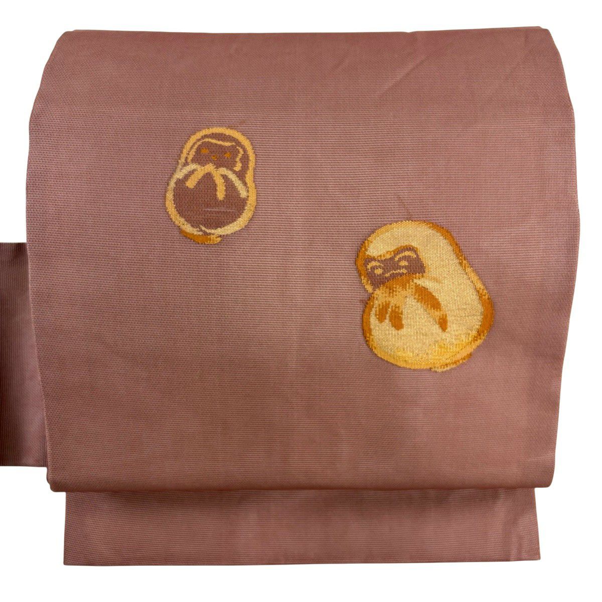 【美品】 名古屋帯 優品 幾何学 箔 茶紫 正絹