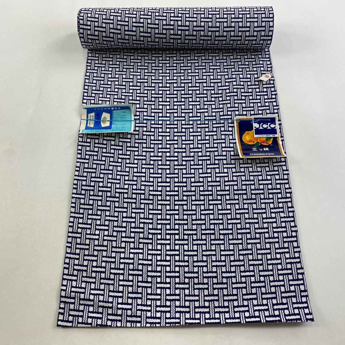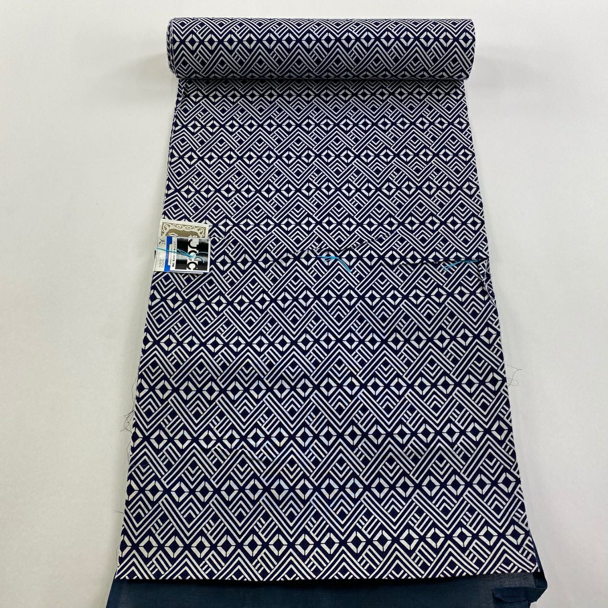 反物 優品 浴衣 夏すがた 幾何学模様 濃紺 綿