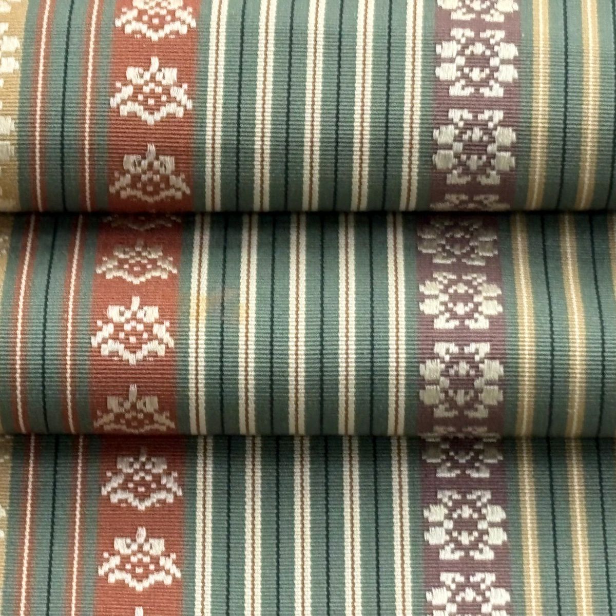 【美品】 名古屋帯 優品 紬地 段縞 茶緑色 正絹