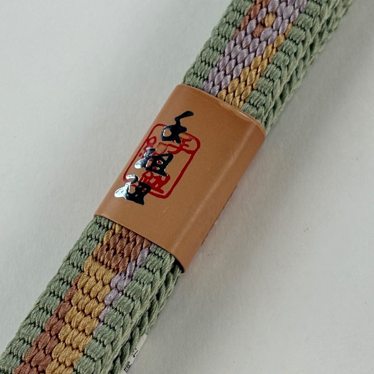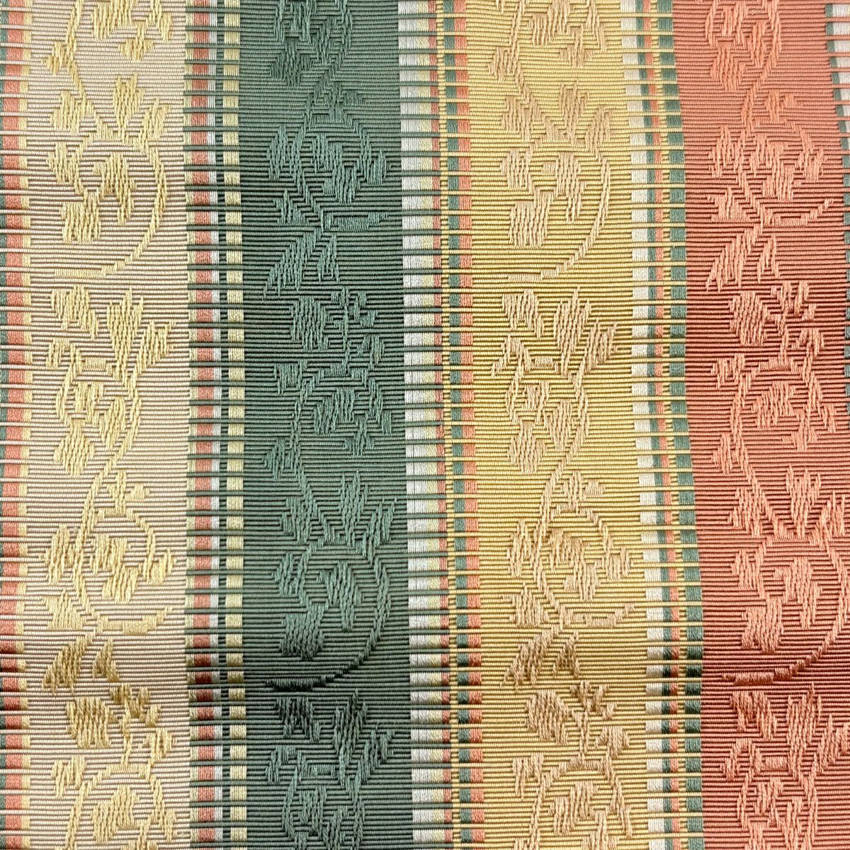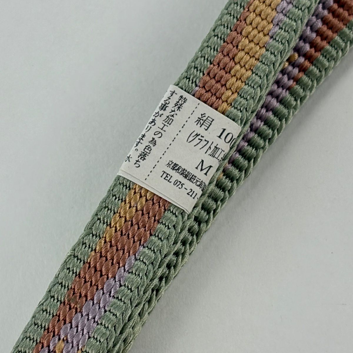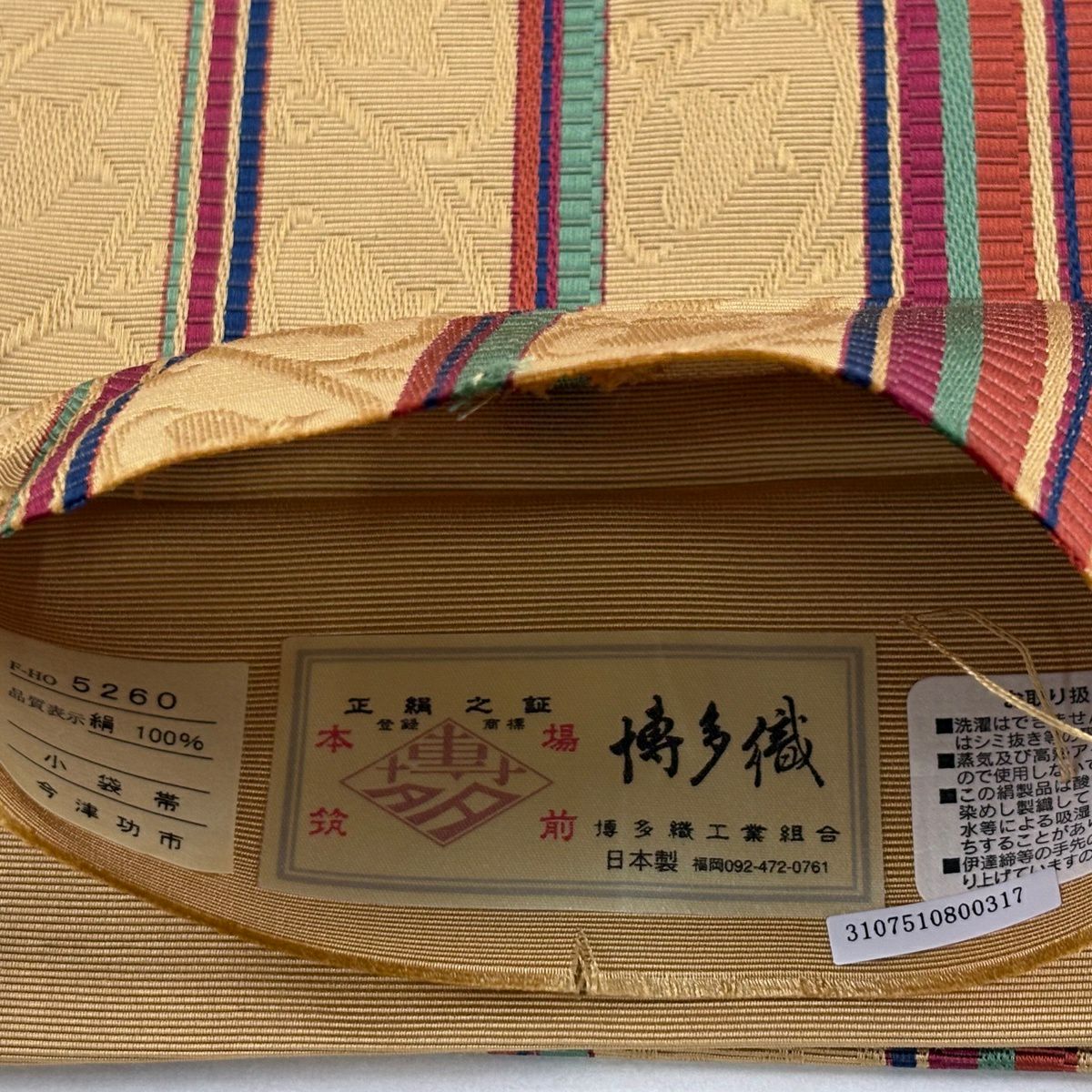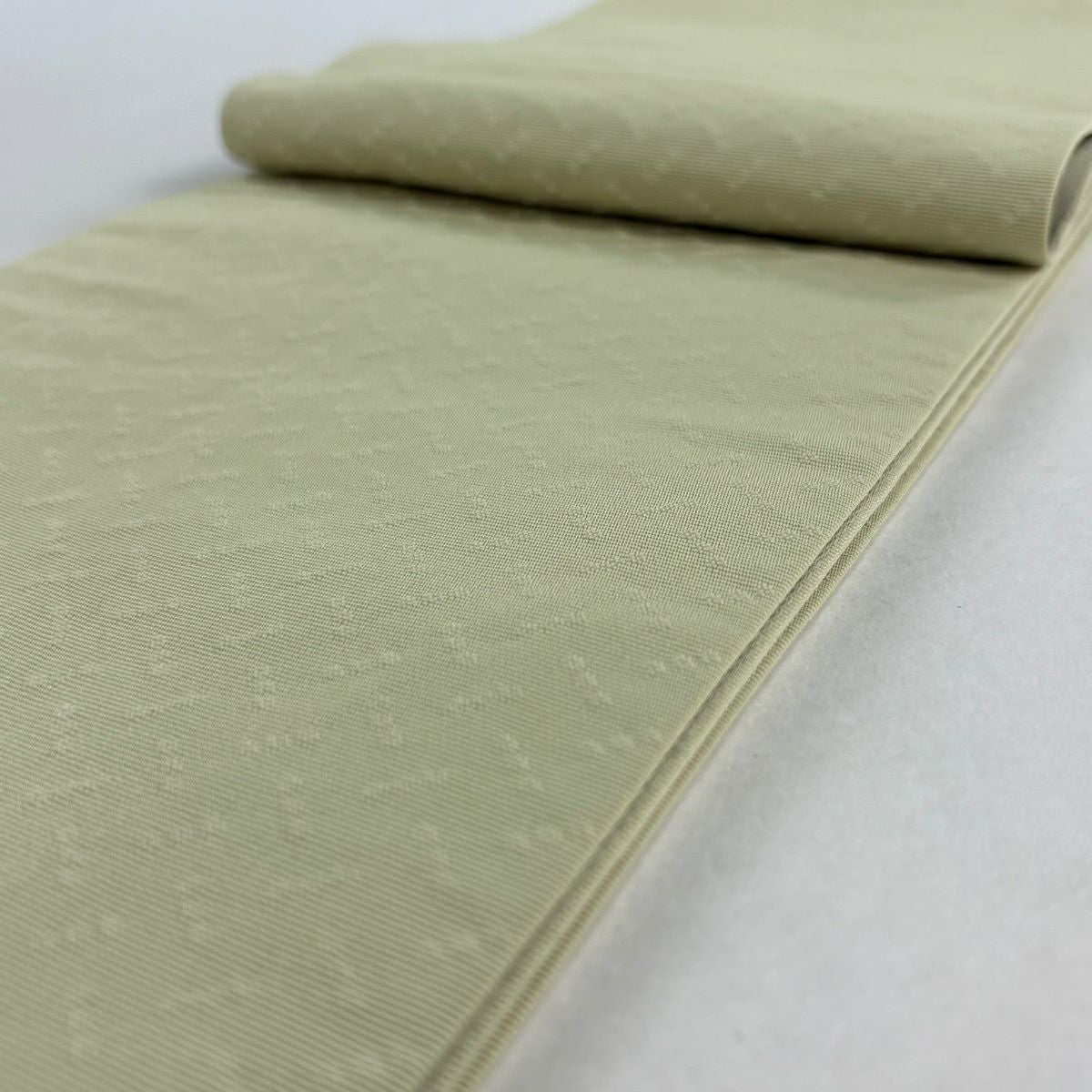 半幅帯 優品 博多織 証紙 縞 花 よもぎ色 正絹