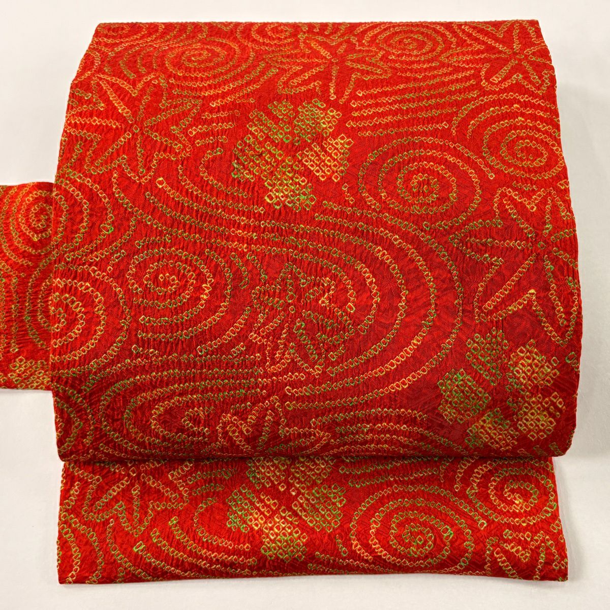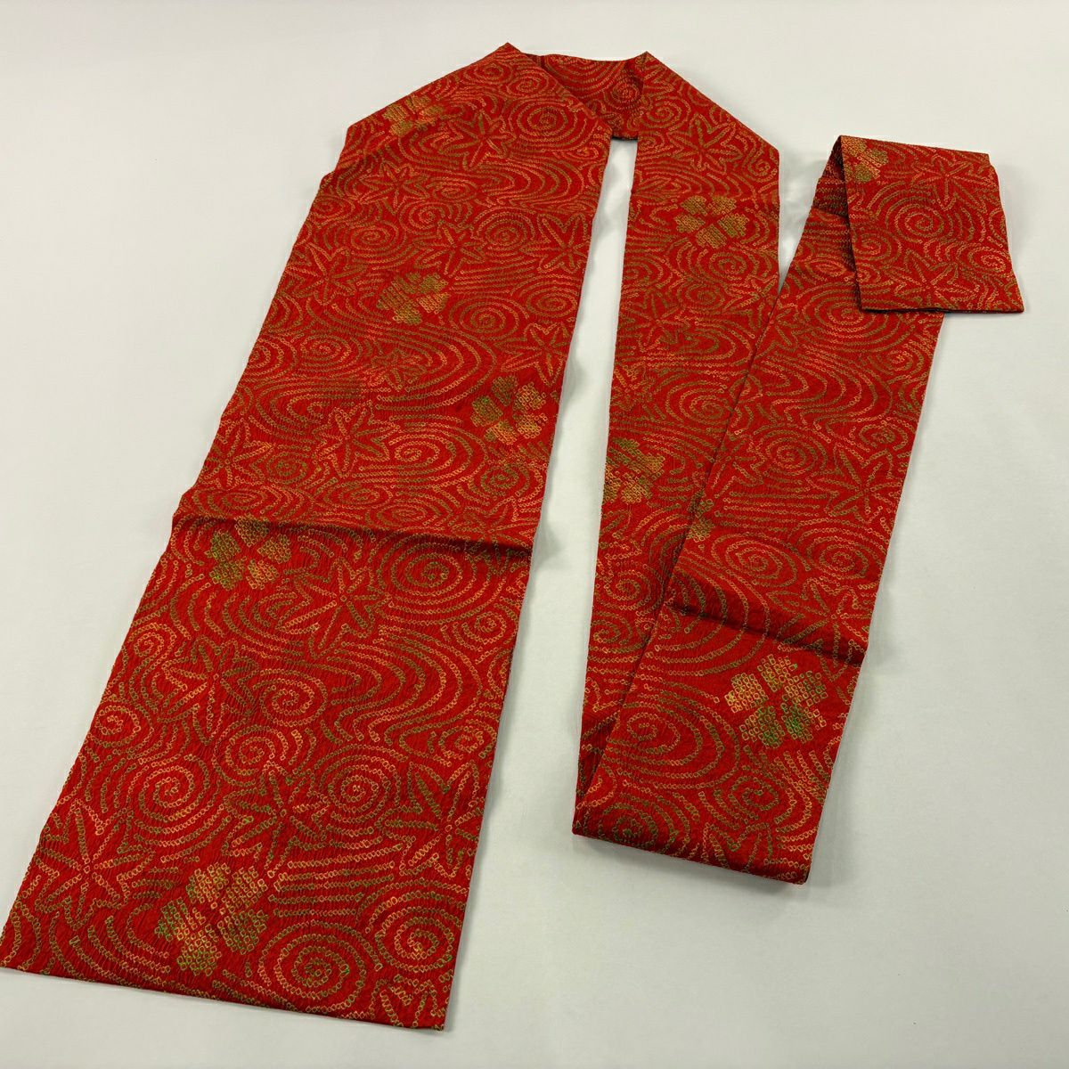 【美品】 名古屋帯 優品 花 流水 絞り 赤 正絹