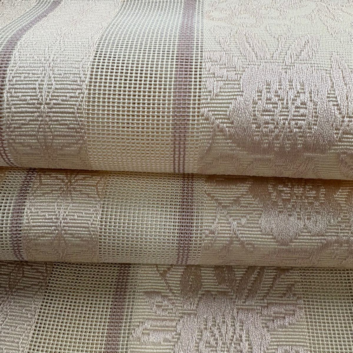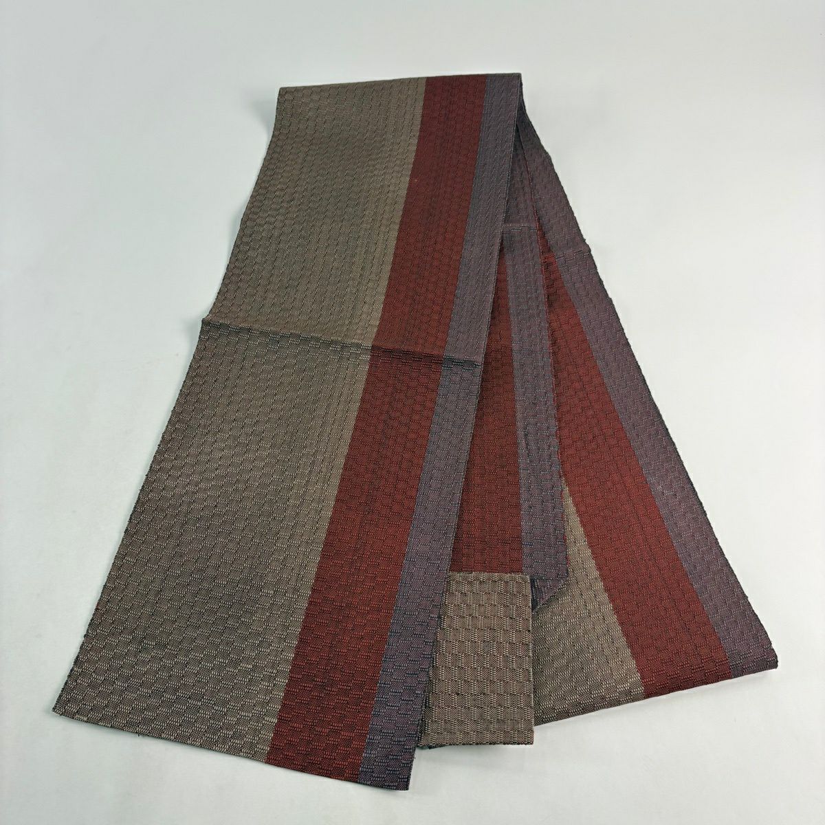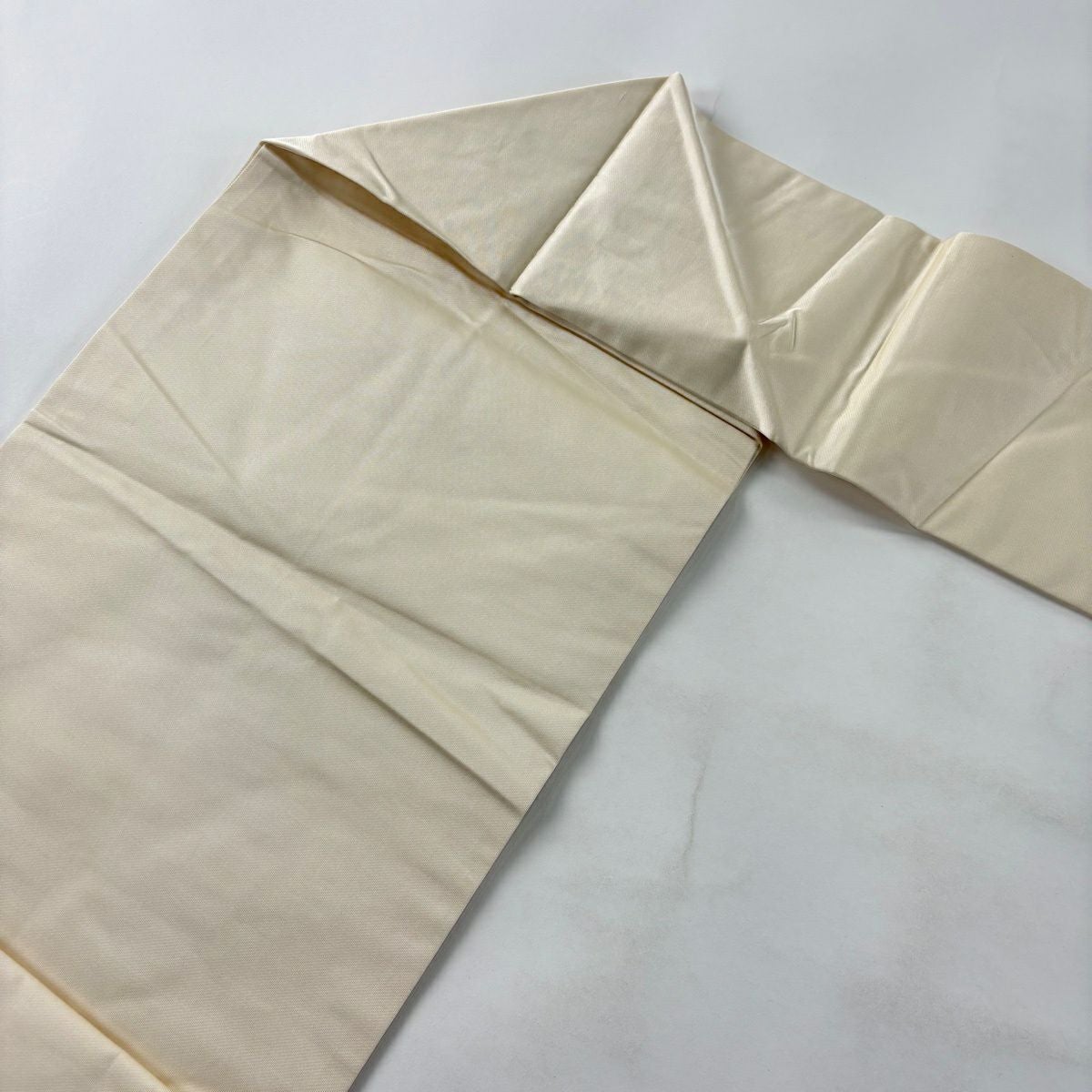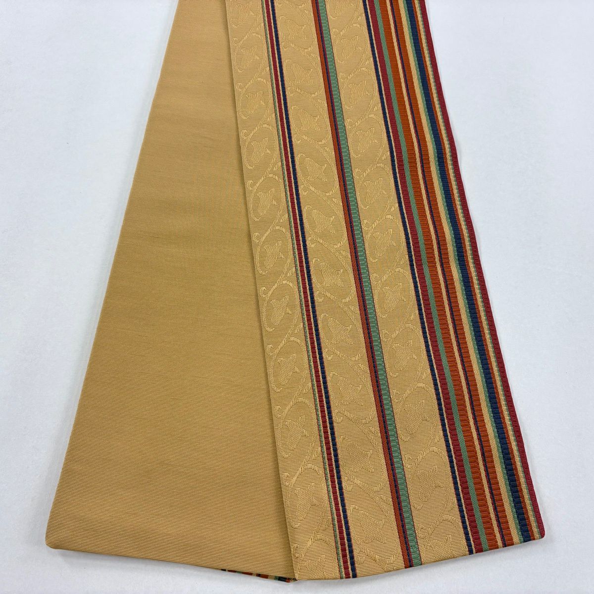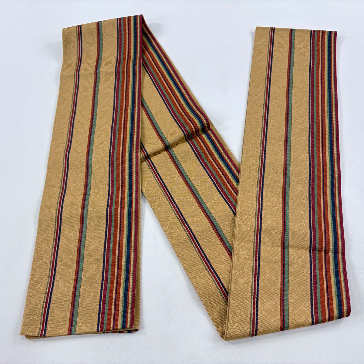 【美品】半幅帯 優品 縞 地紋 ベージュ 正絹