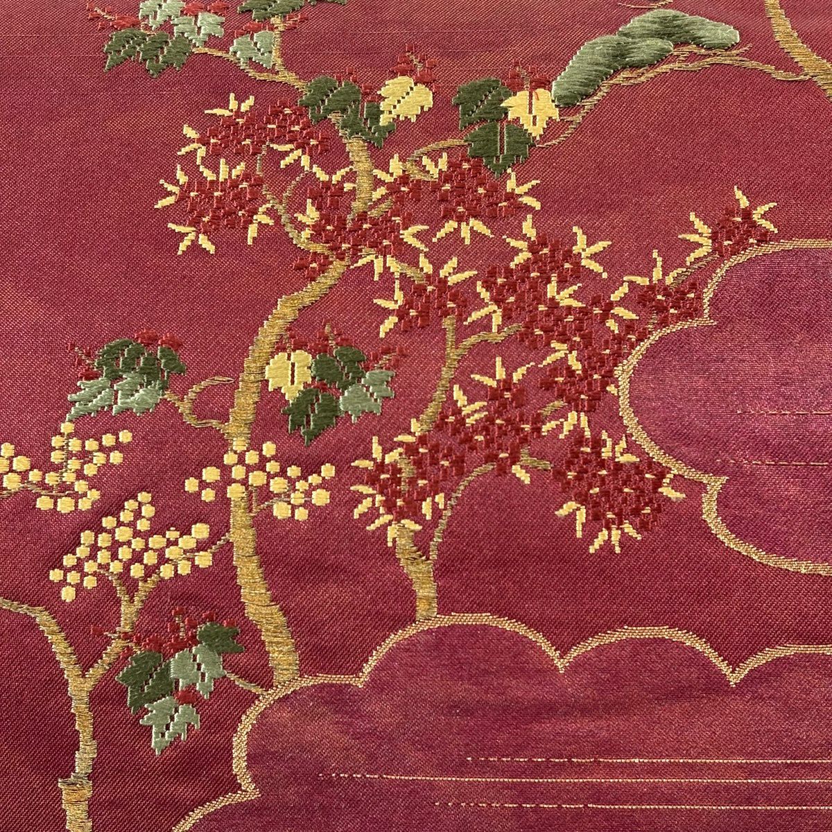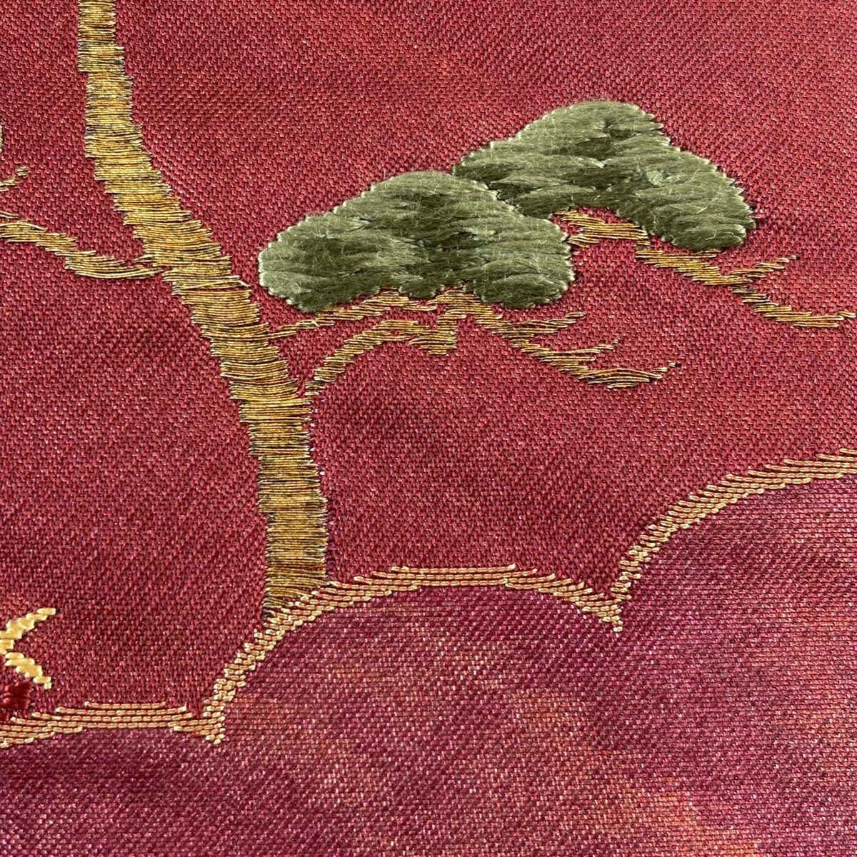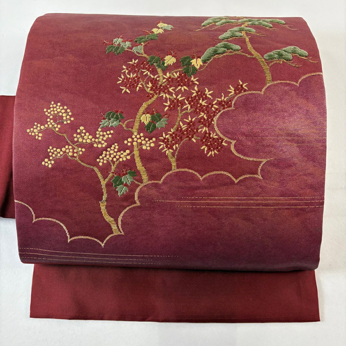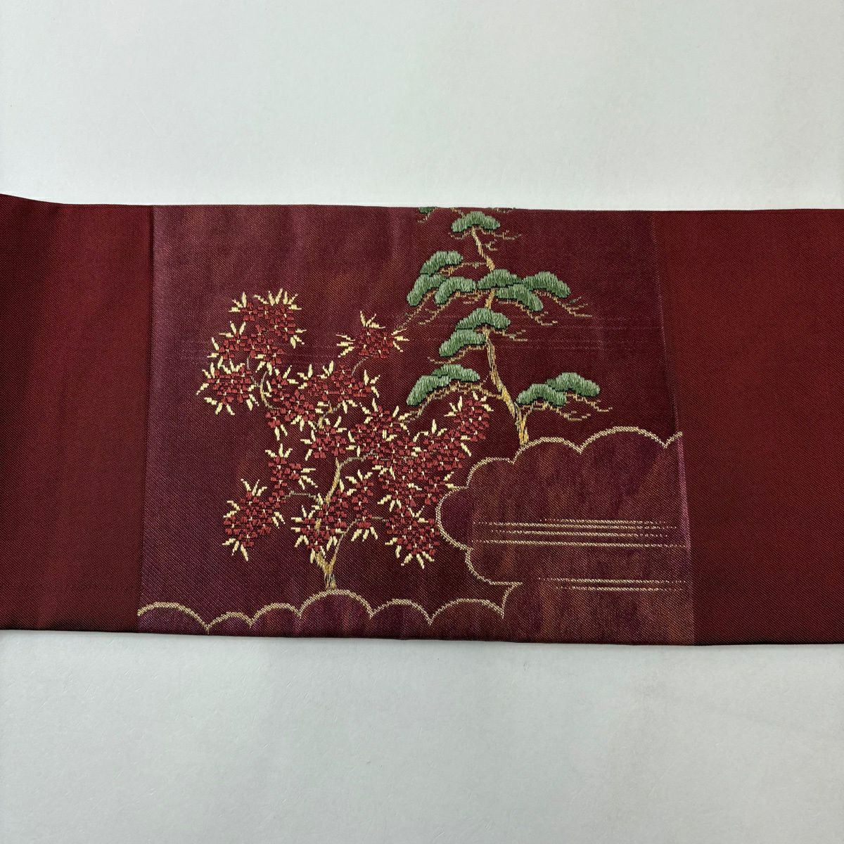 名古屋帯 優品 松 雲文 金糸 箔 えんじ色 正絹