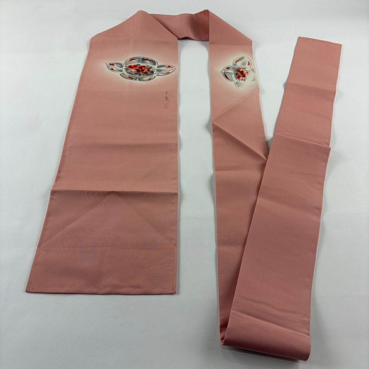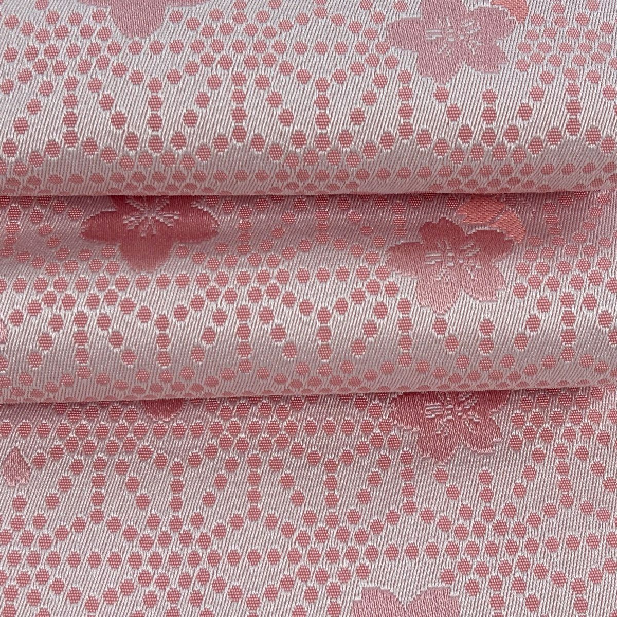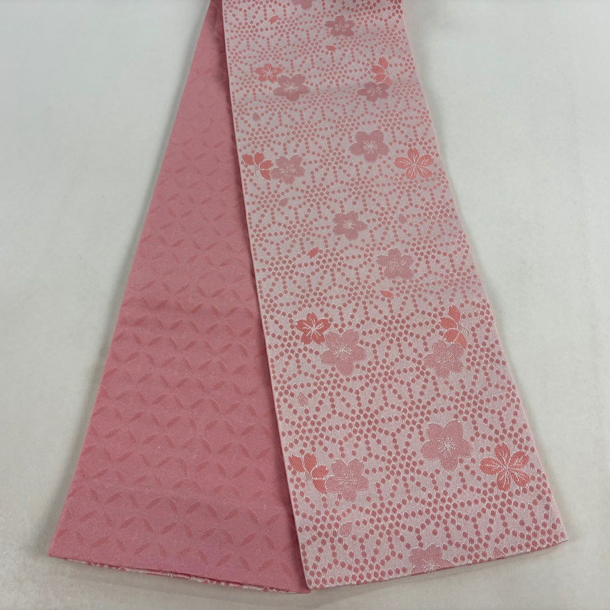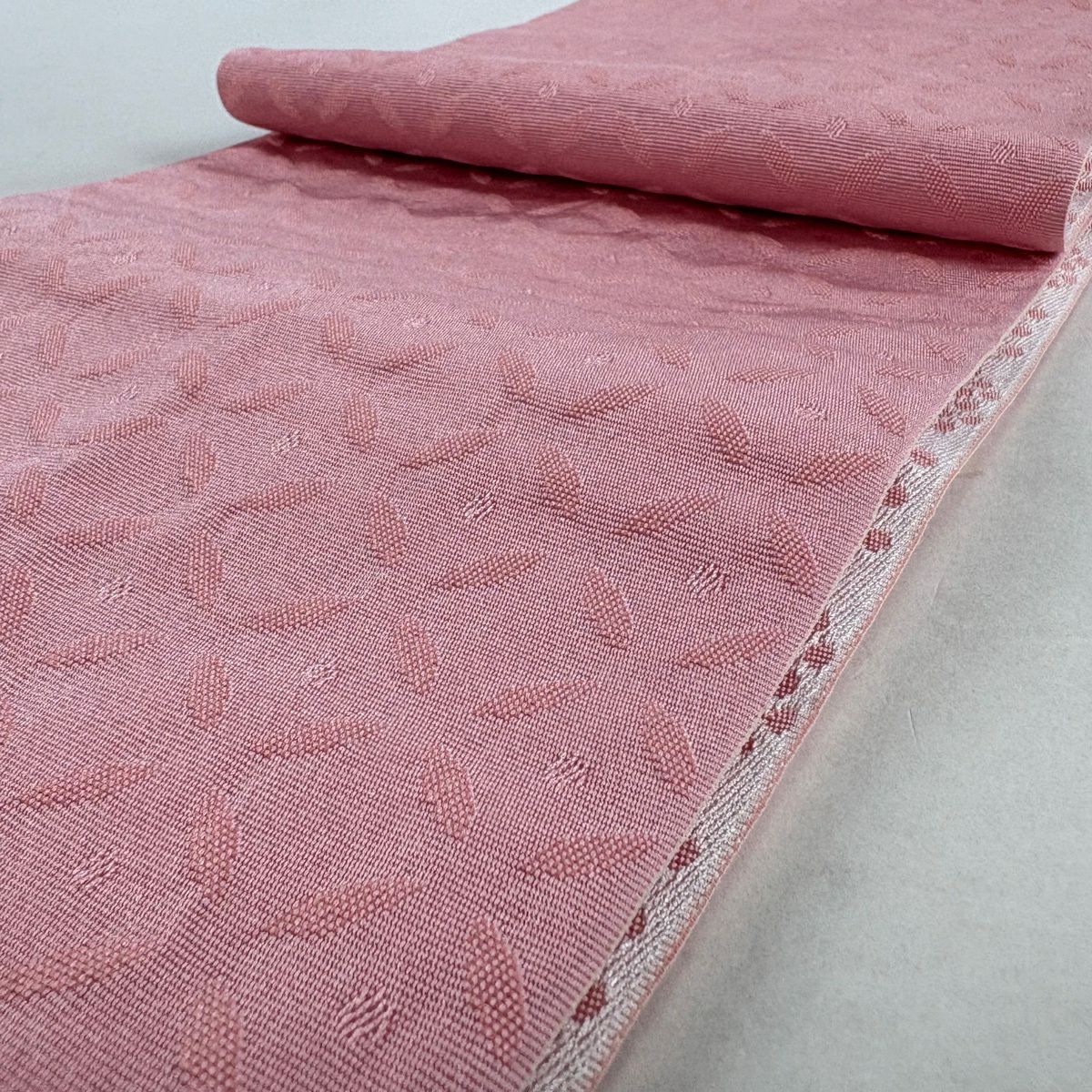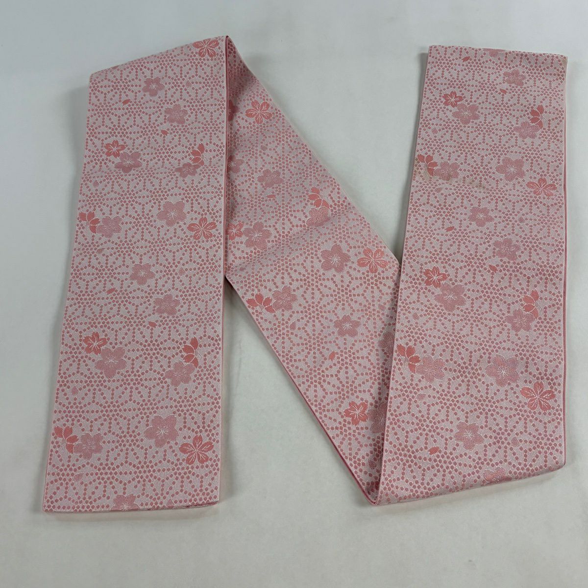 【美品】半幅帯 優品 桜 麻の葉 薄ピンク 化繊