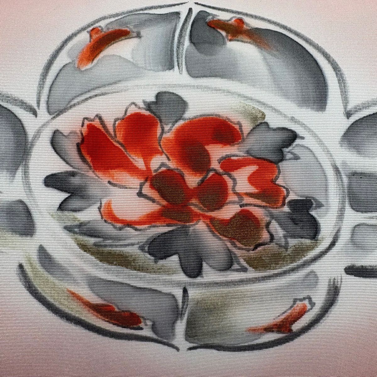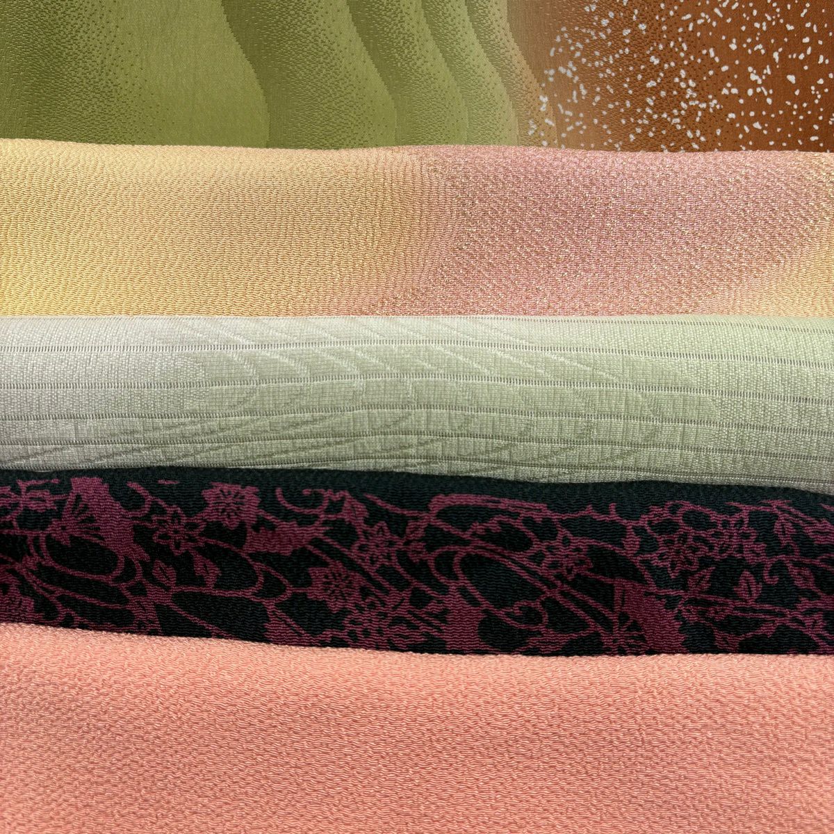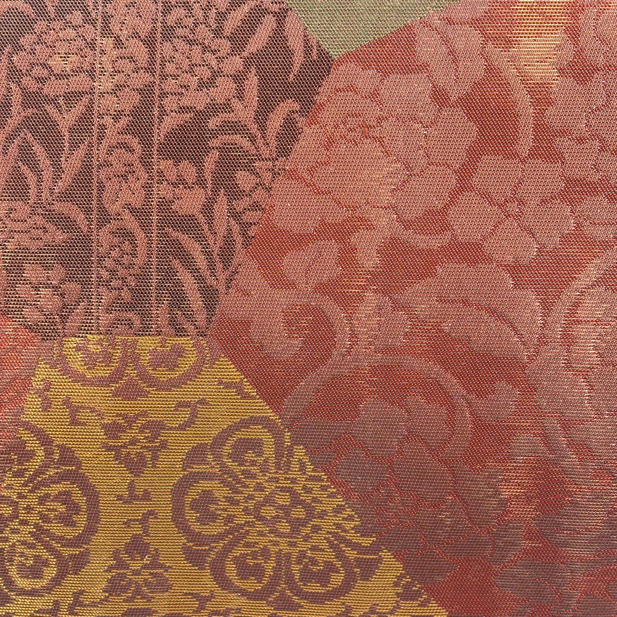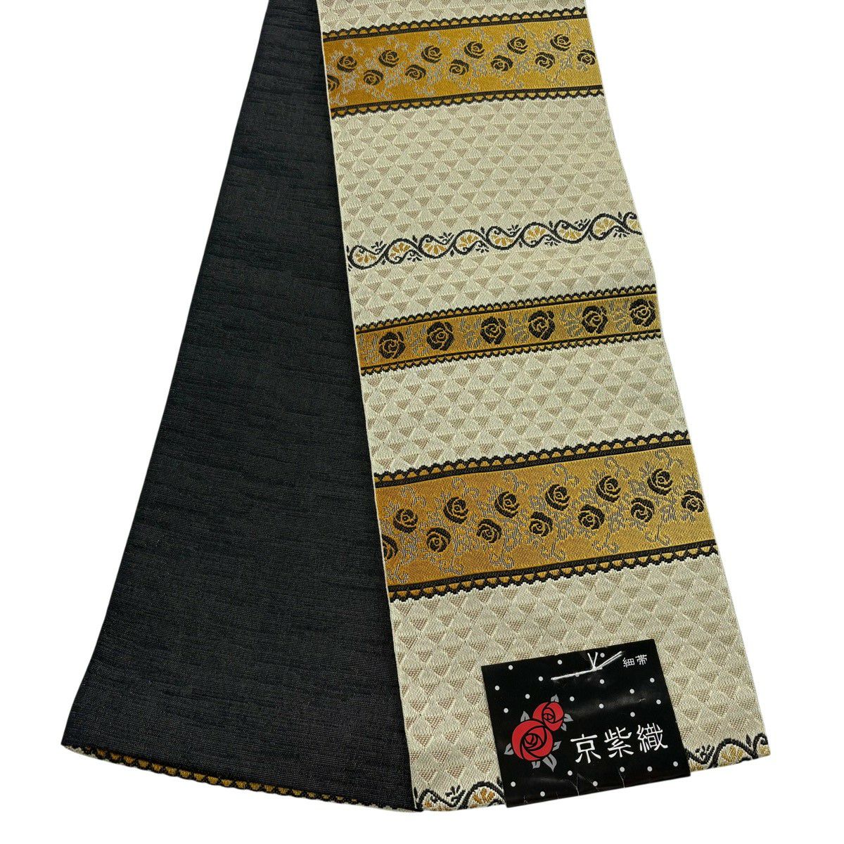 【美品】半幅帯 優品 京紫織 薔薇 鱗 薄黄 化繊