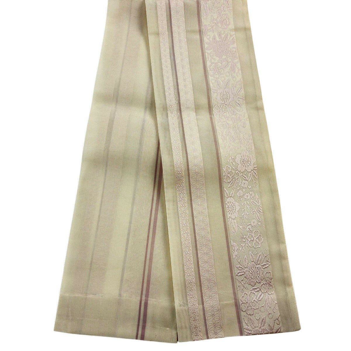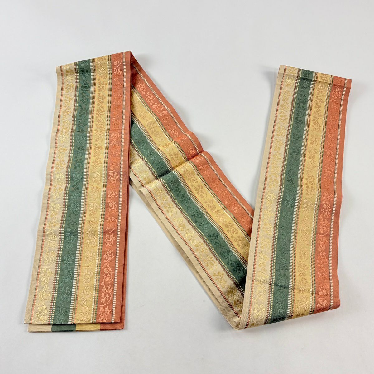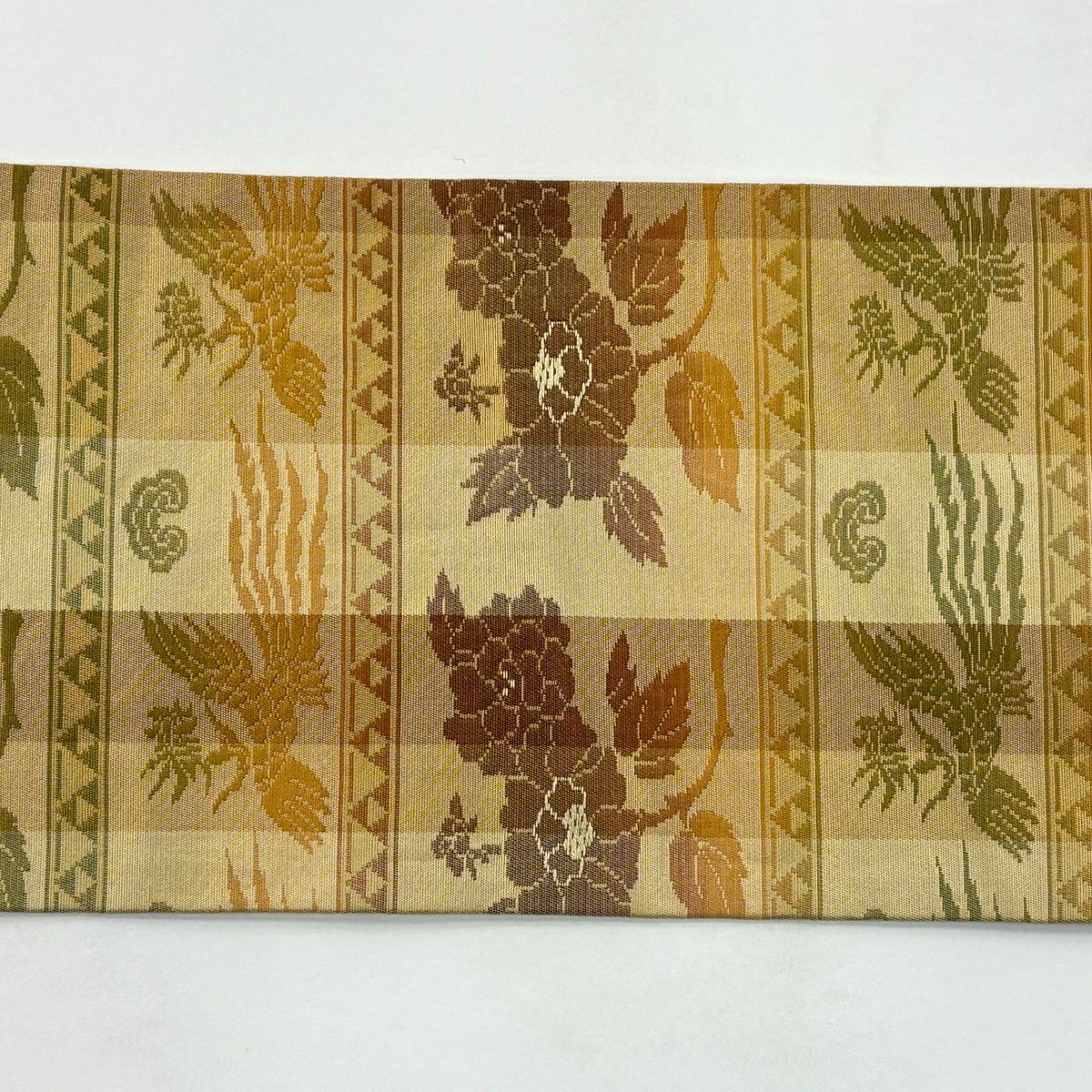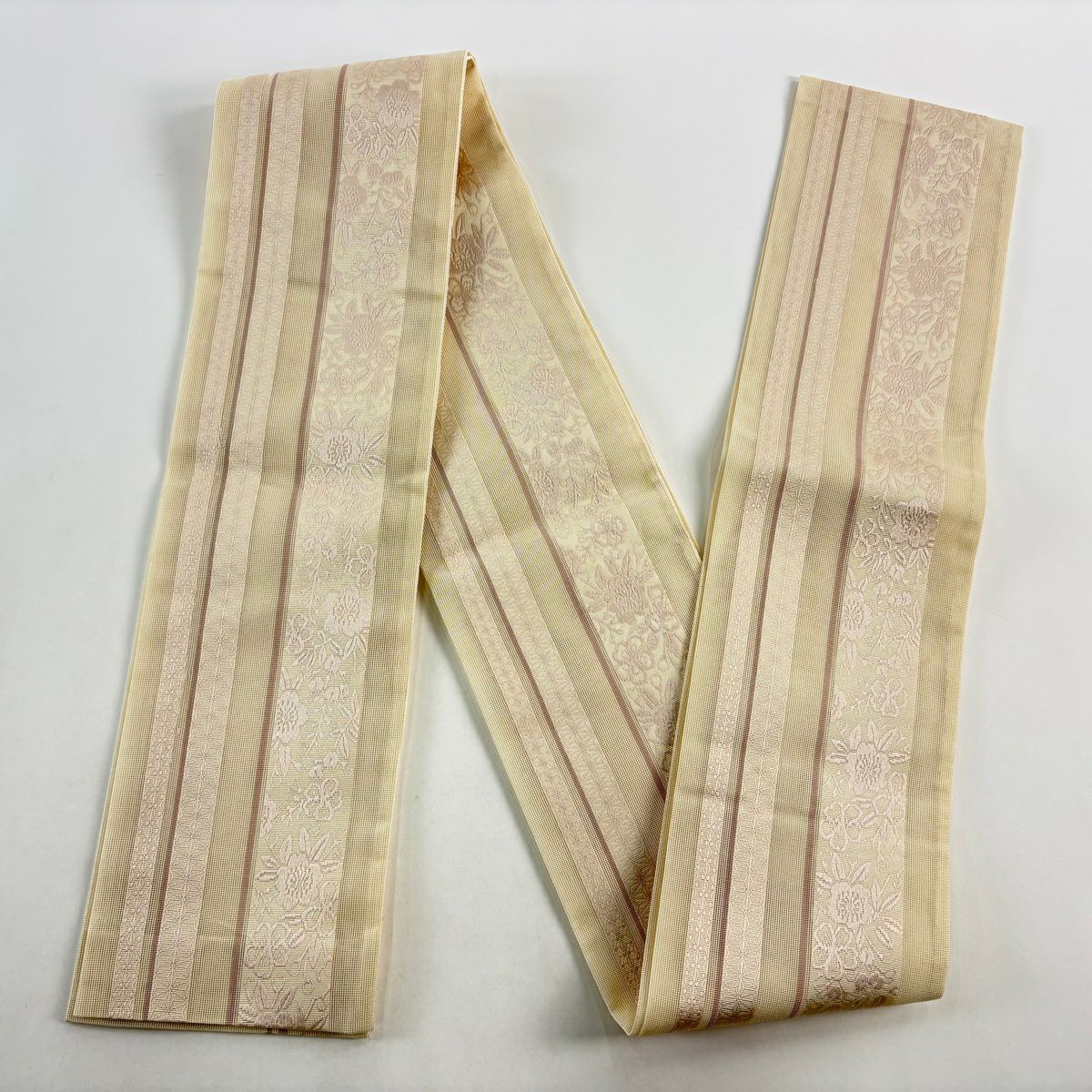 【美品】半幅帯 優品 縞 草花 ベージュ 正絹