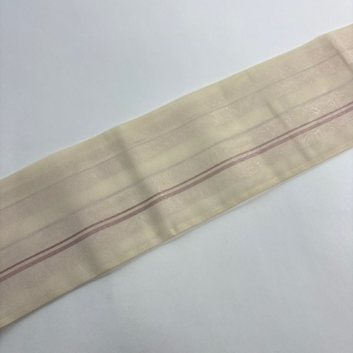 【美品】半幅帯 優品 夏帯 桜 縞 クリーム 化繊