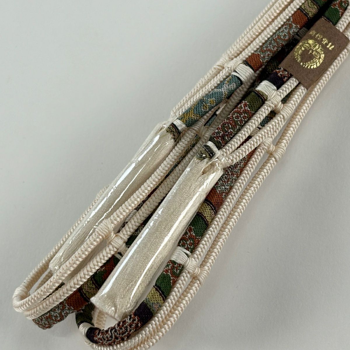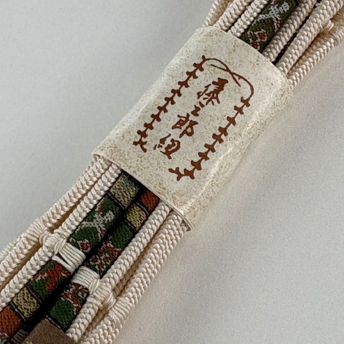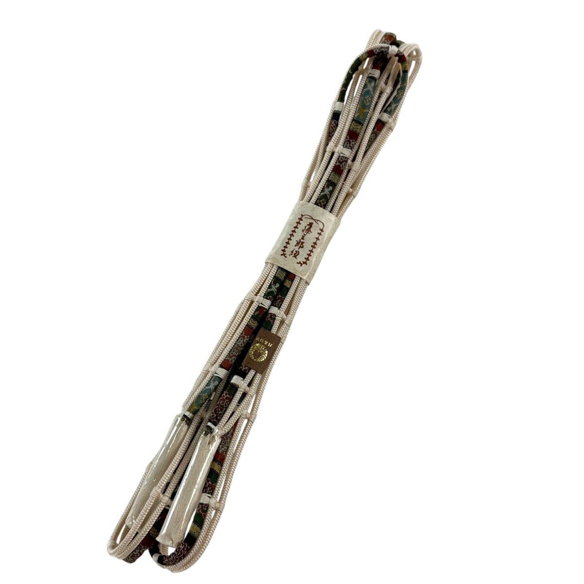 帯締め 優品 鳥 幾何学 クリーム 正絹 和装小物