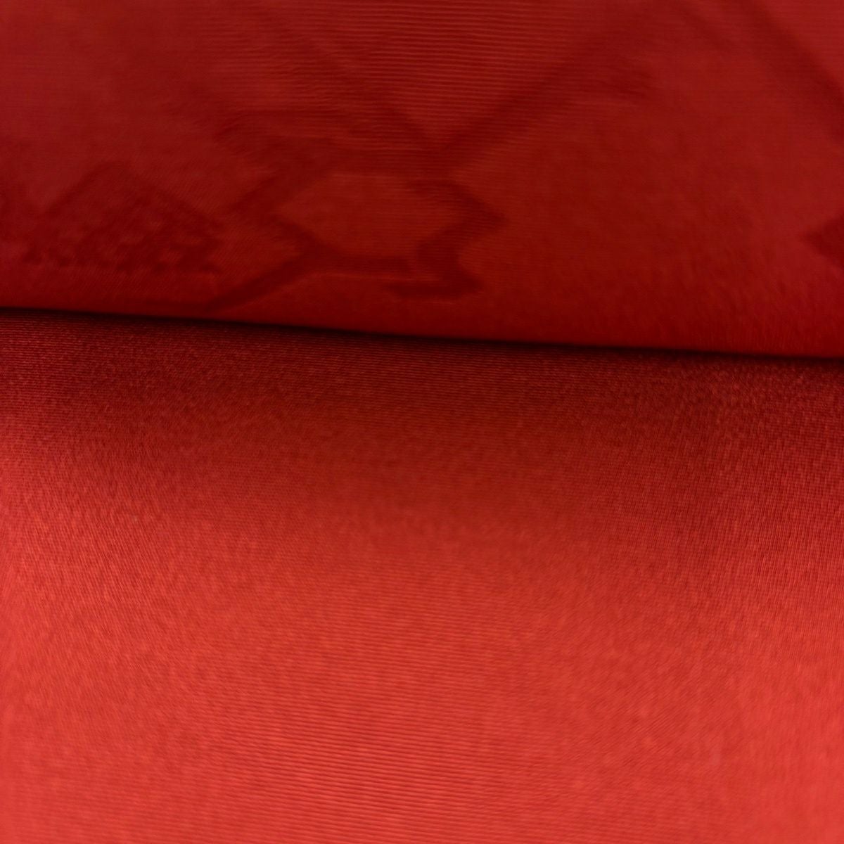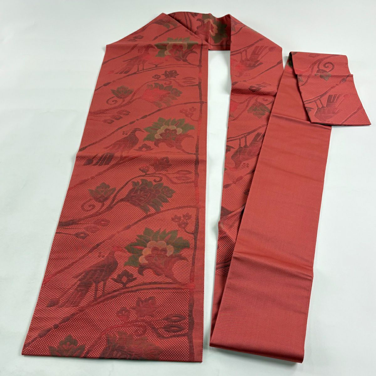 【美品】 名古屋帯 優品 花鳥 疋田柄 茜色 正絹
