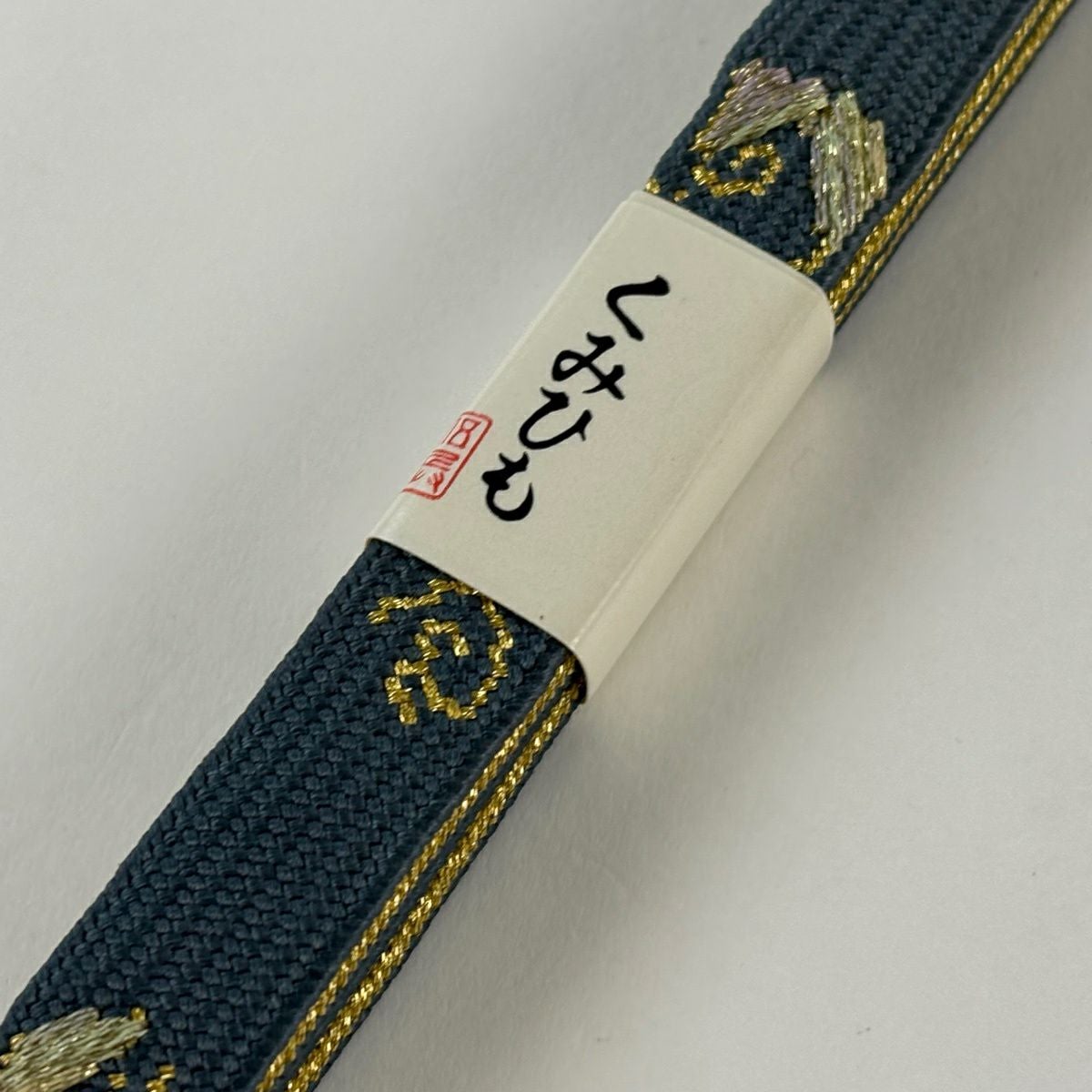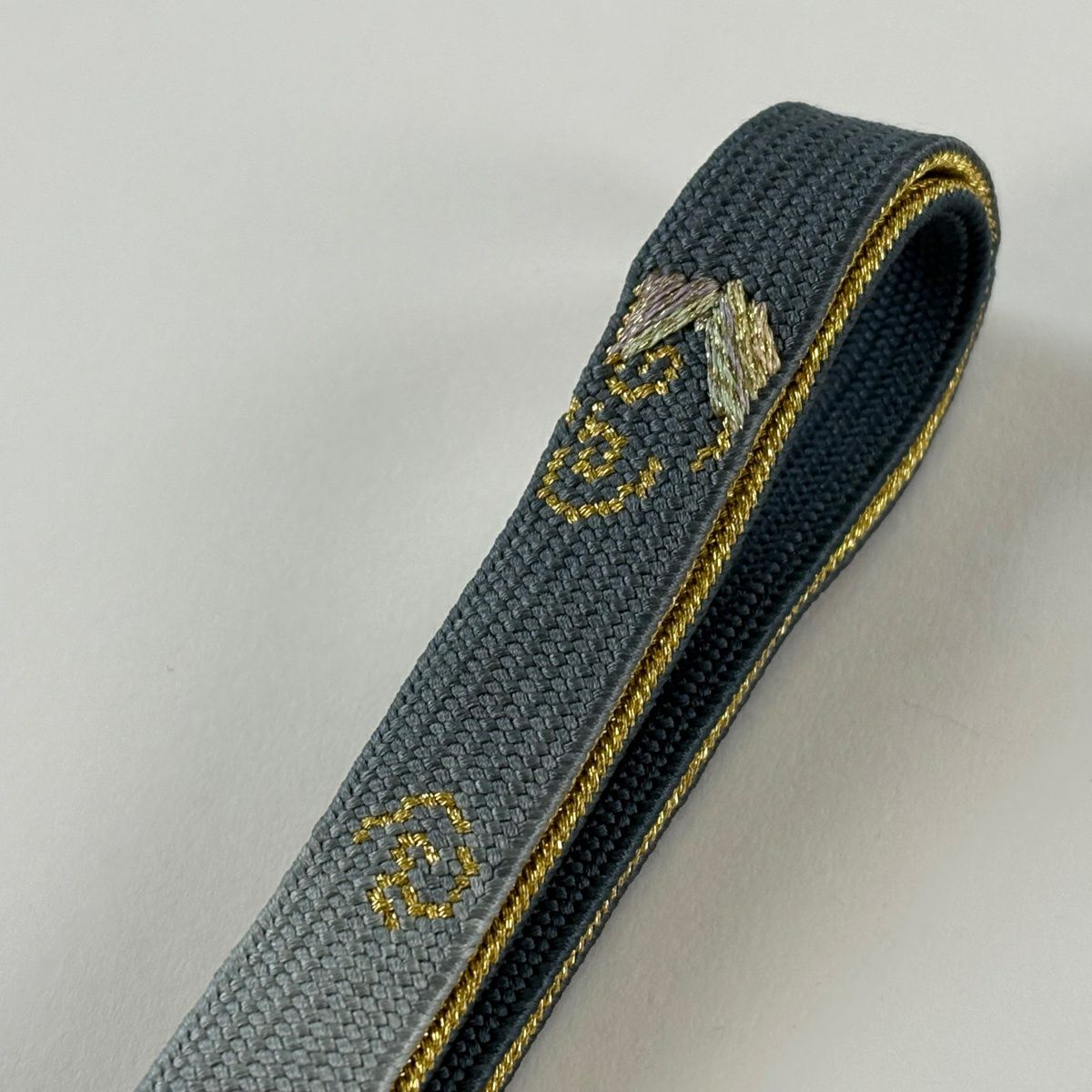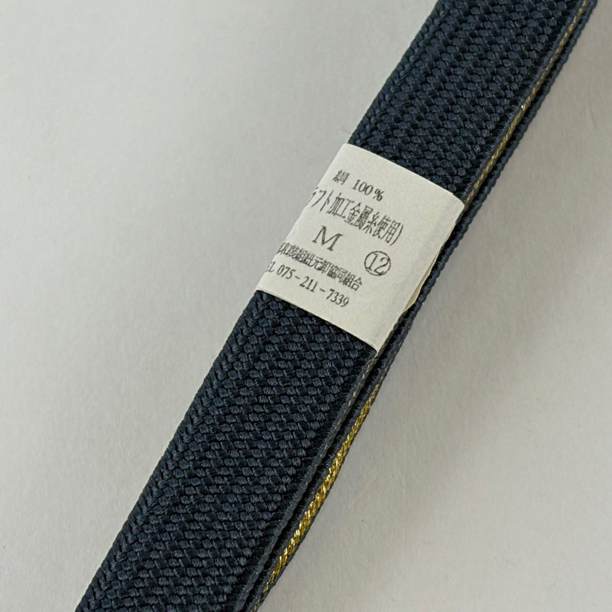 帯締め 優品 幾何学 金糸 青灰色 正絹 和装小物
