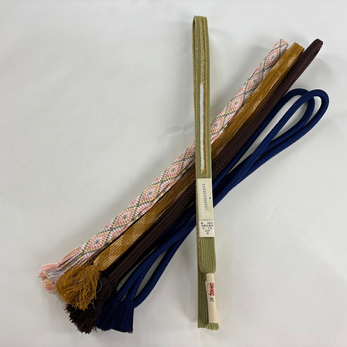 帯締め 優品 帯締め5本セット よもぎ色 正絹 和装小物