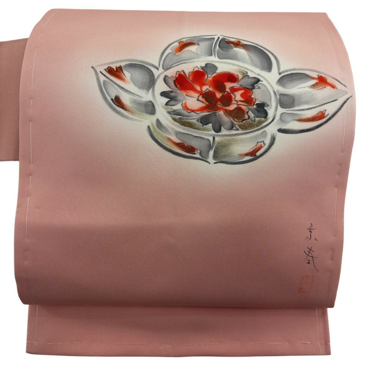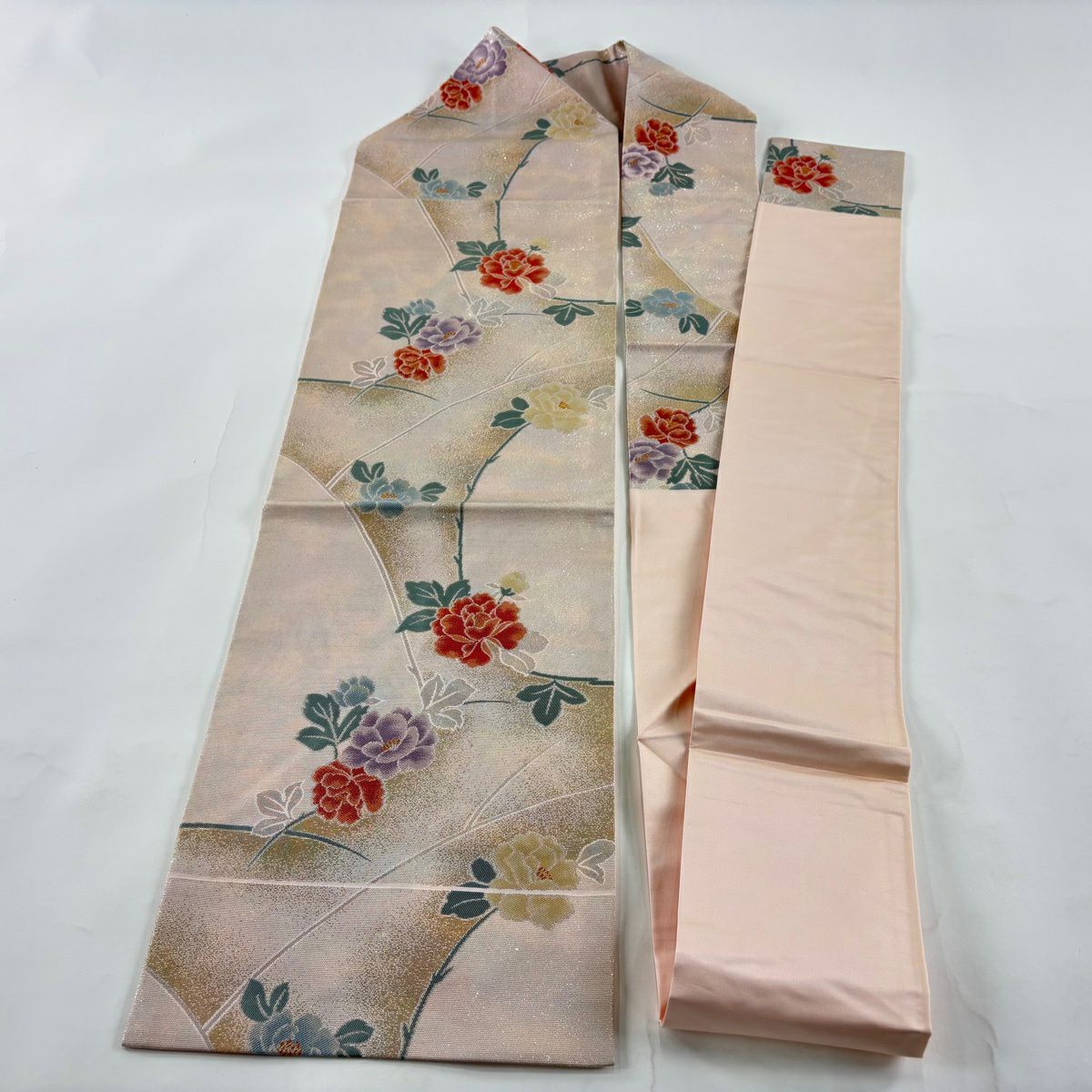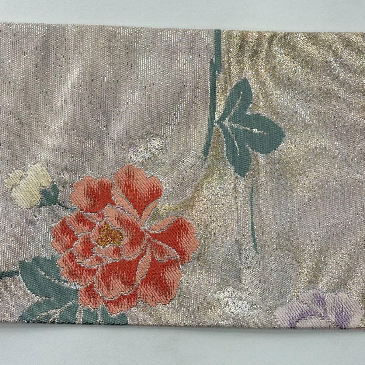 名古屋帯 優品 草花 金糸 銀糸 薄ピンク 正絹