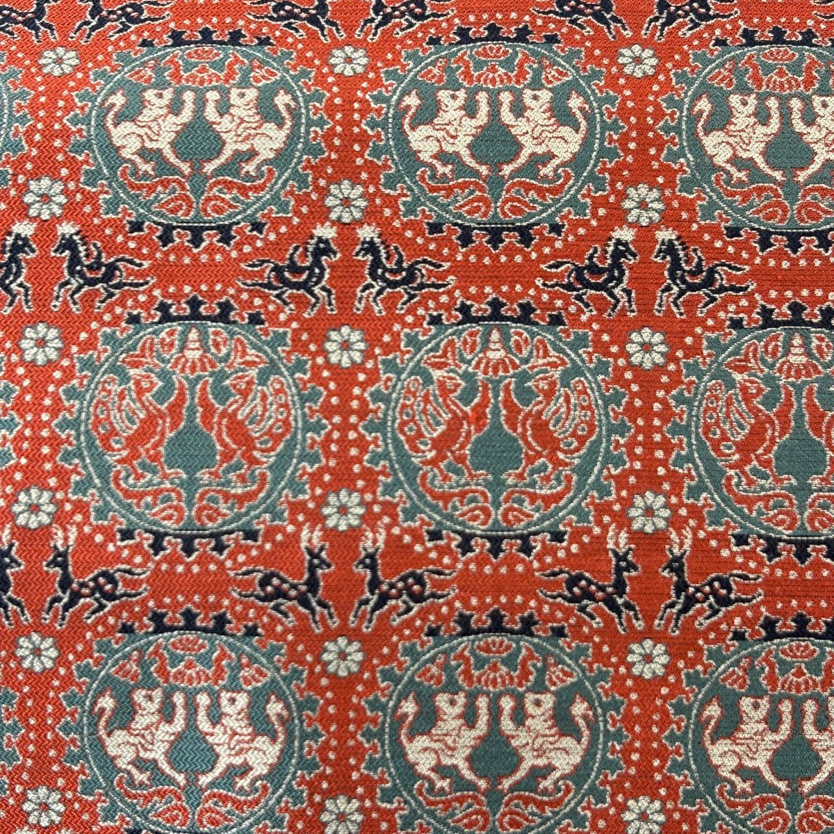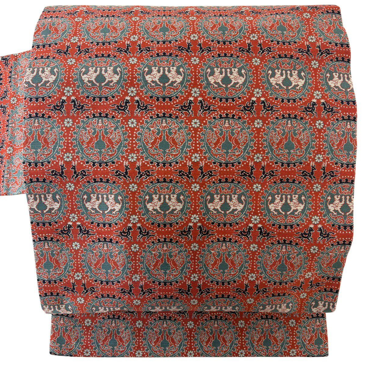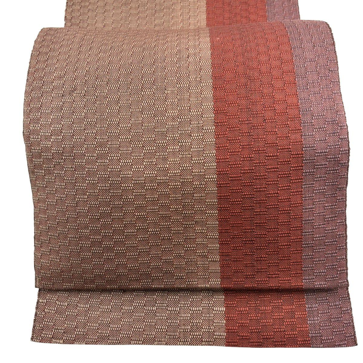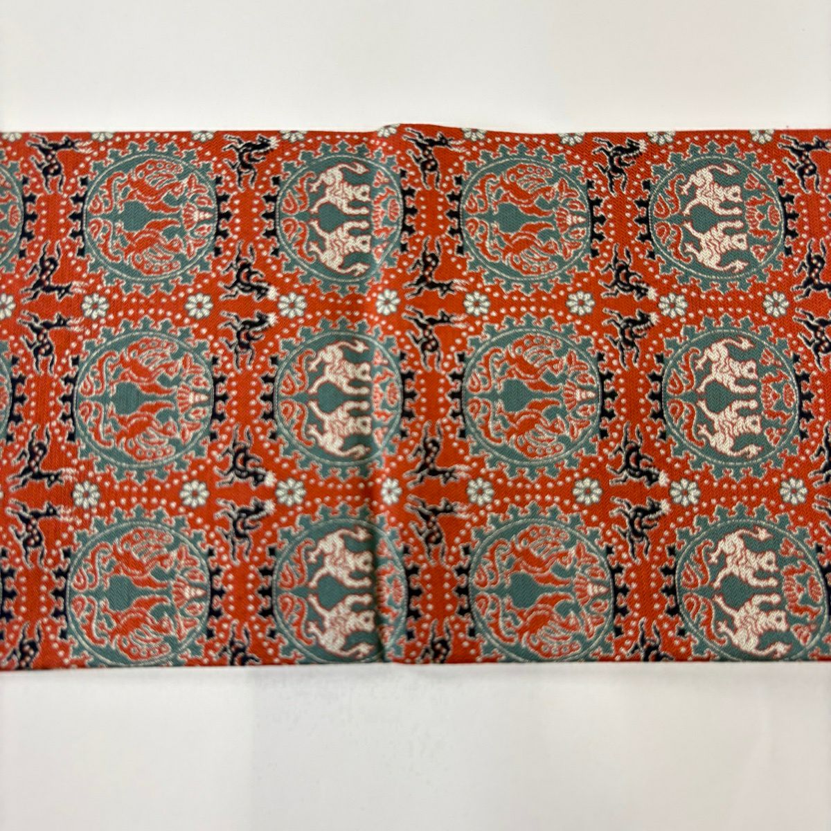 【美品】 名古屋帯 優品 向かい鳥 向かい虎 赤茶 正絹