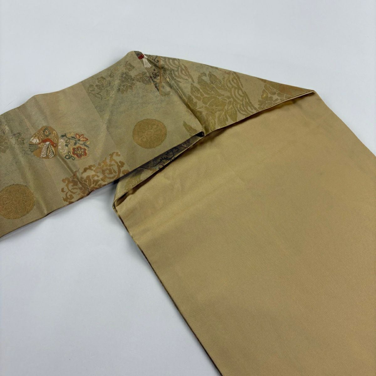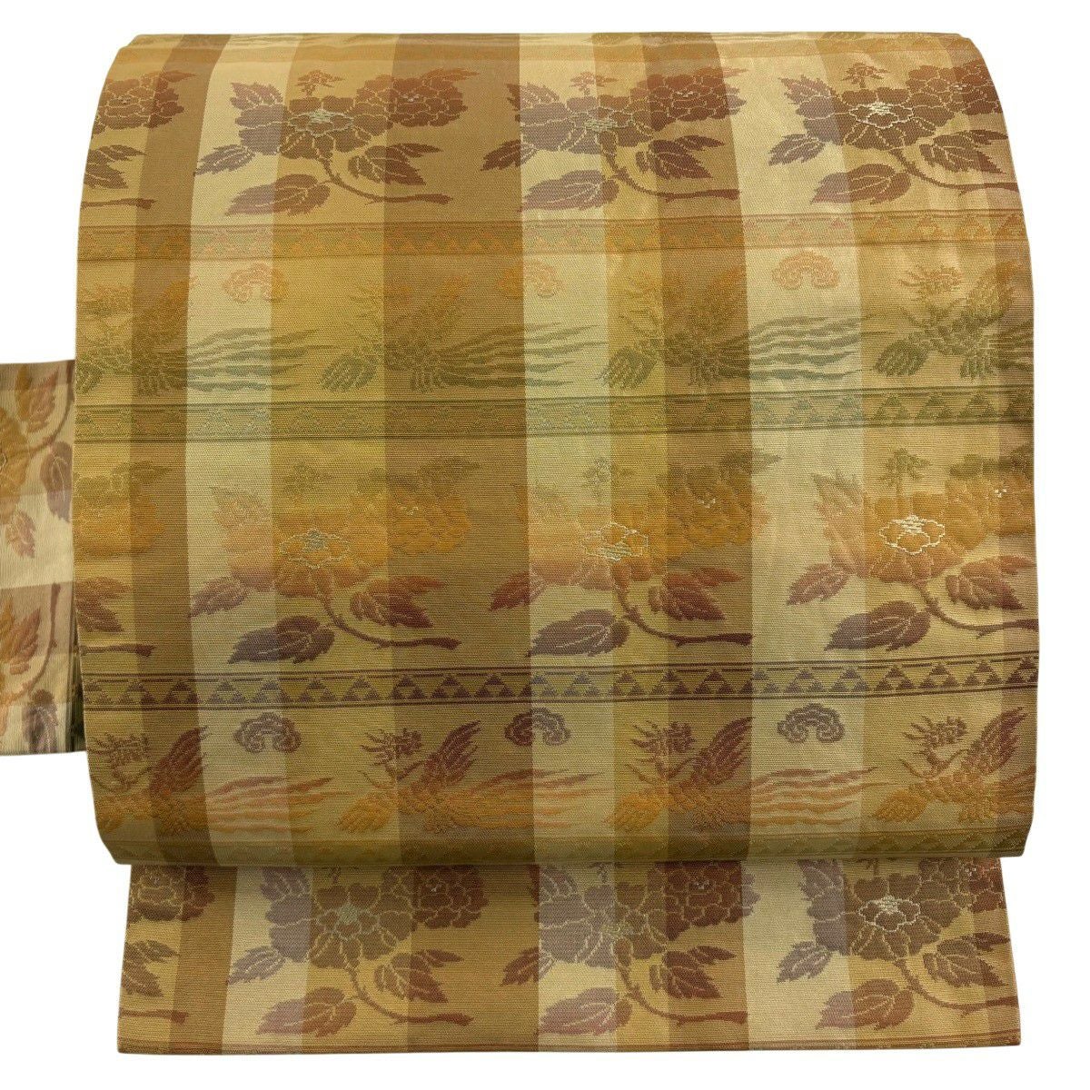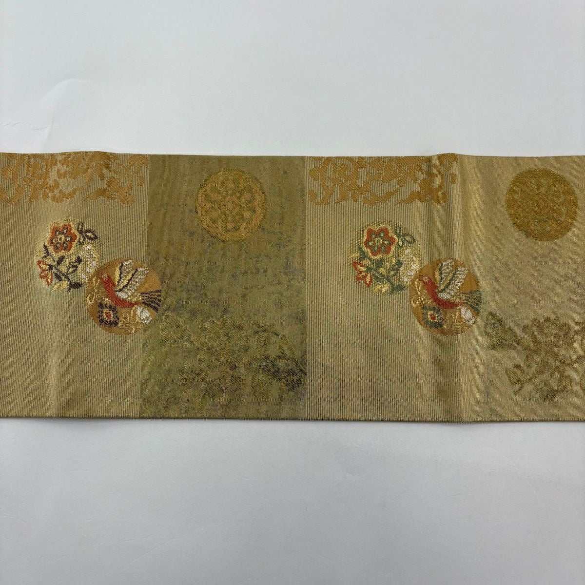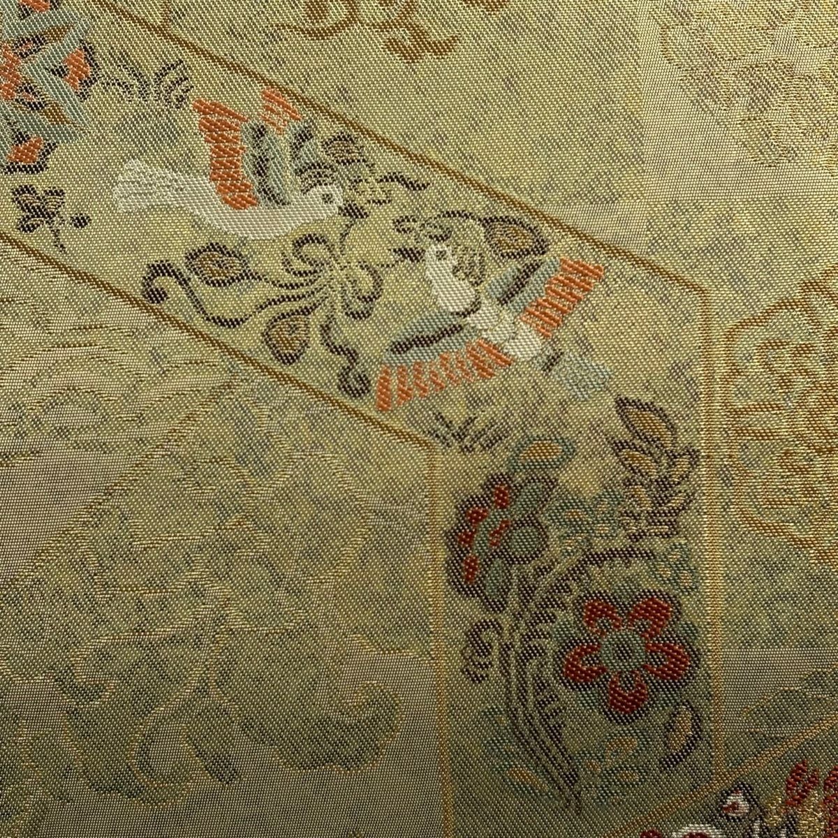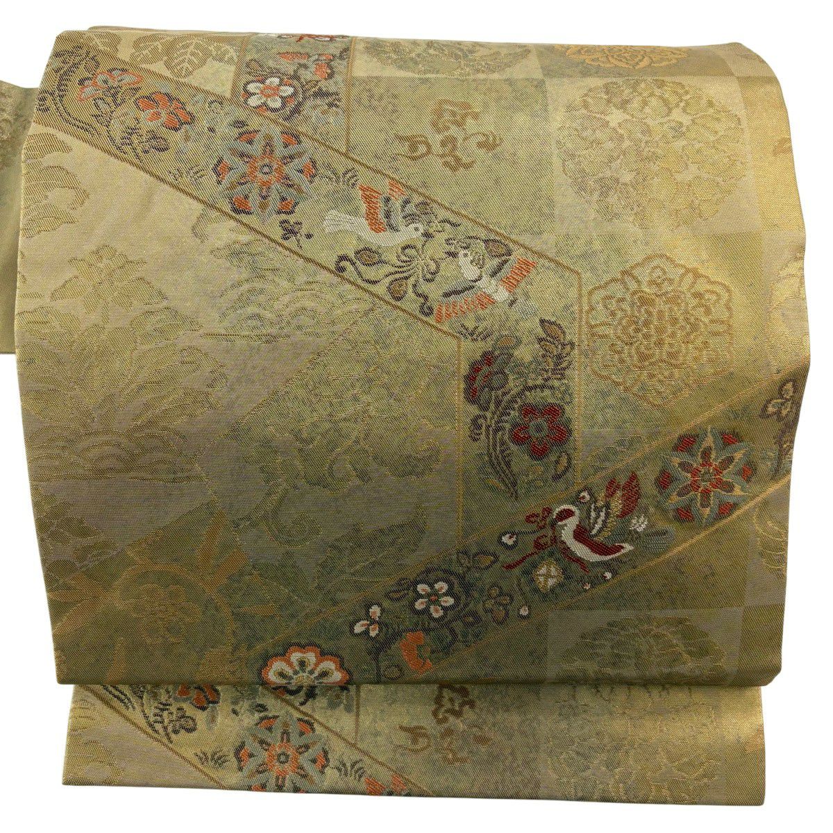 名古屋帯 優品 草花 格天井 金糸 刺繍 金色 正絹