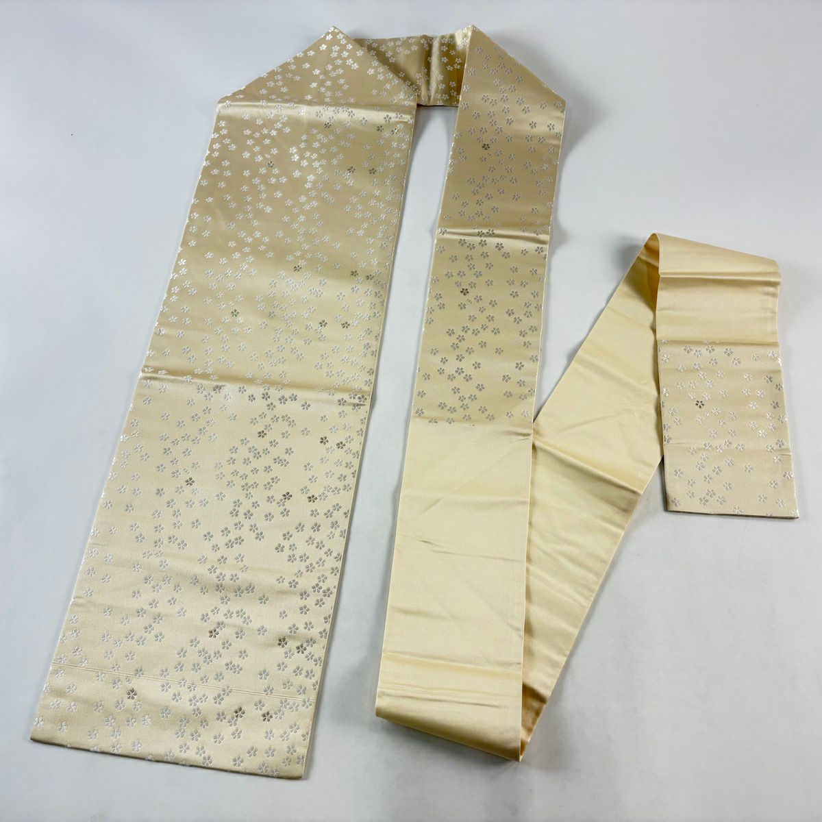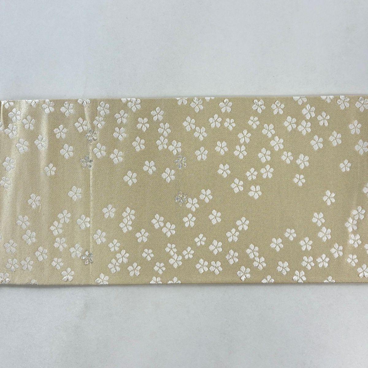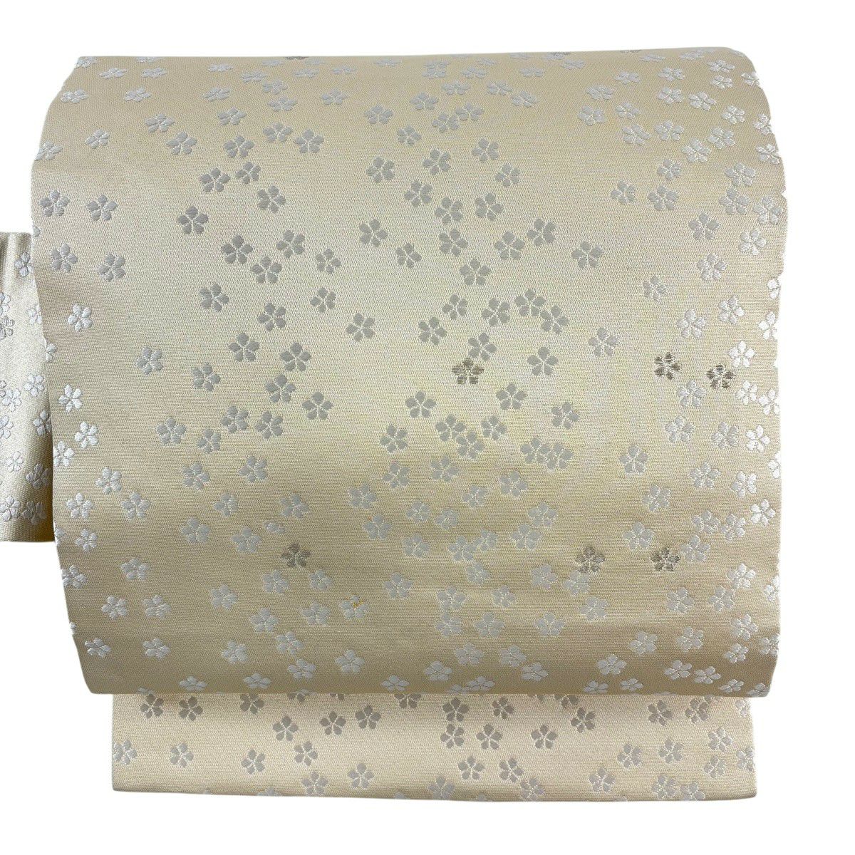 名古屋帯 優品 小花 銀糸 箔 ベージュ 化繊