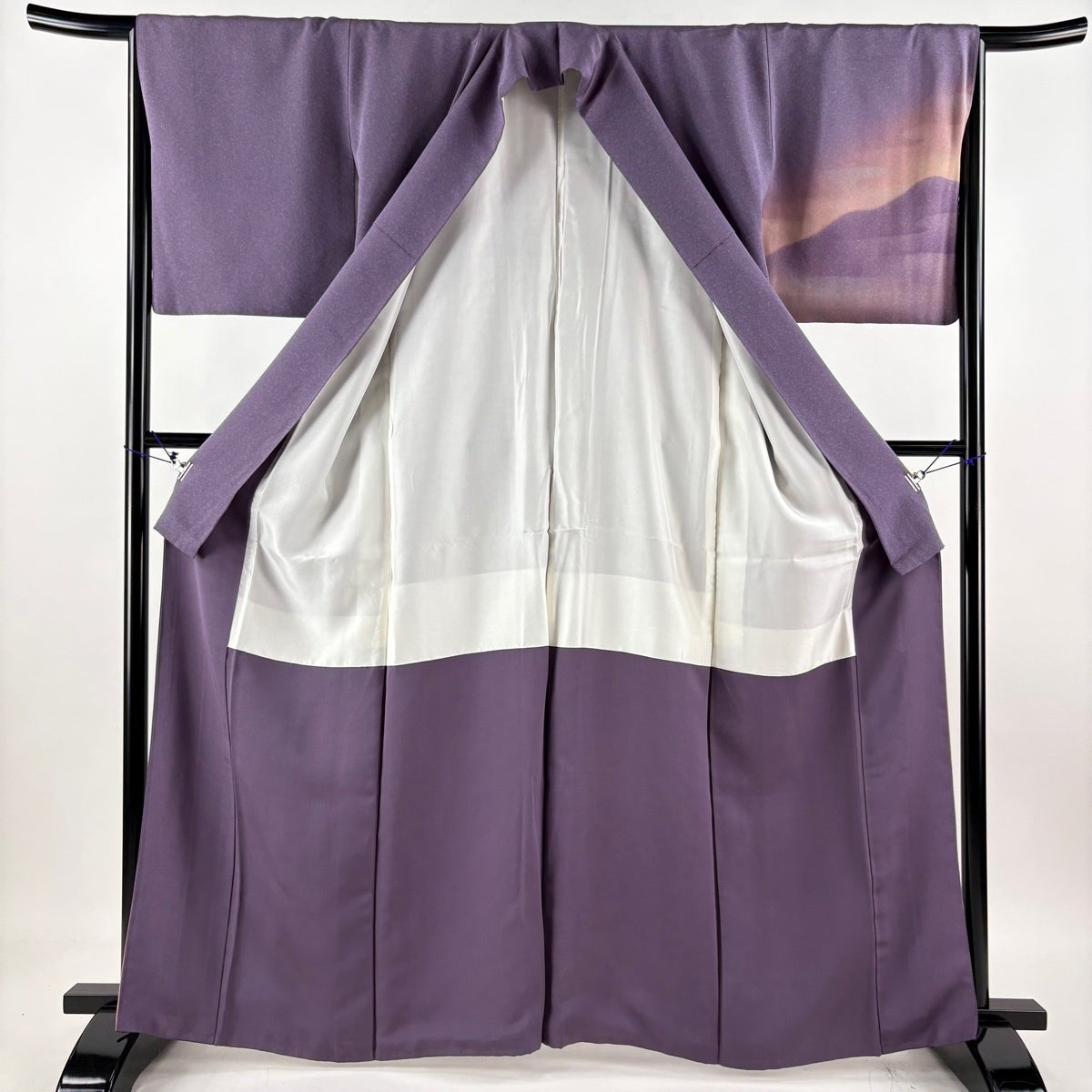 付下げ 身丈164.5cm 裄丈66cm M 袷 前田華清 落款あり 霞 ぼかし 灰紫 正絹 秀品