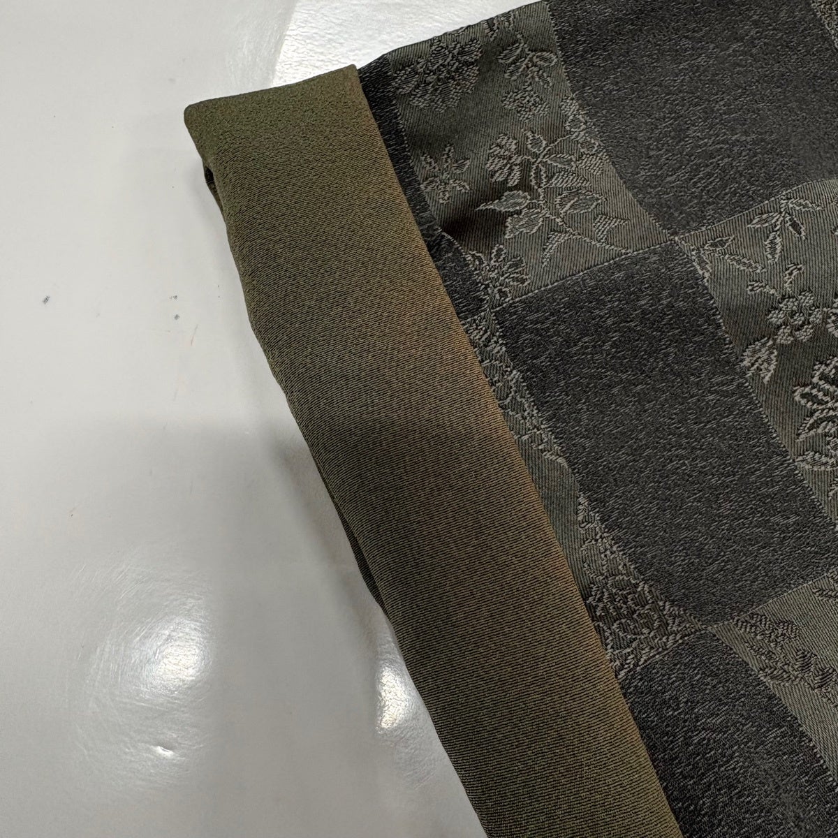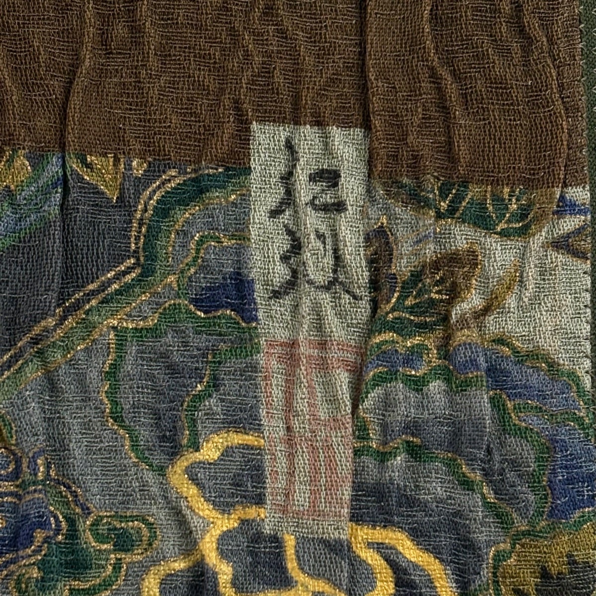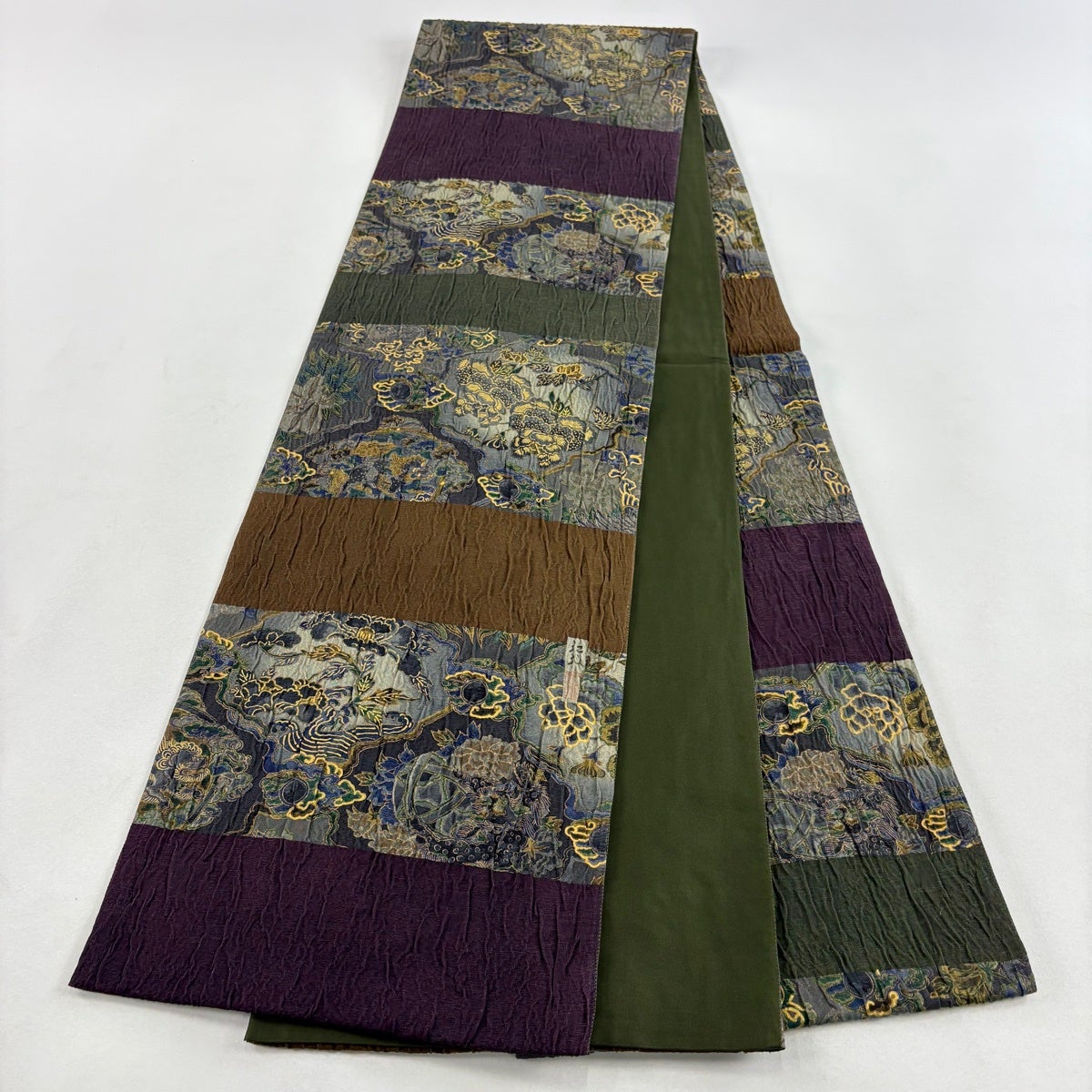 【美品】 袋帯 逸品 前田仁仙 落款あり 草花 唐獅子 金彩 染め分け 茶緑色 全通 正絹