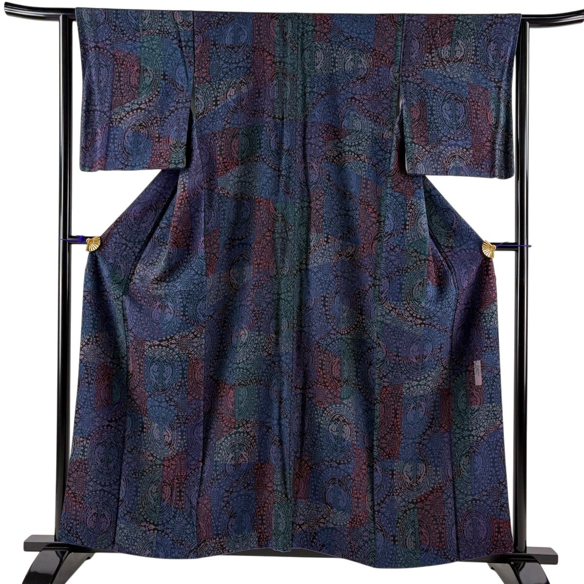 【美品】 小紋 身丈158.5cm 裄丈63cm S 袷 前田仁仙 落款あり 連珠文 花唐草 青紫 正絹 逸品